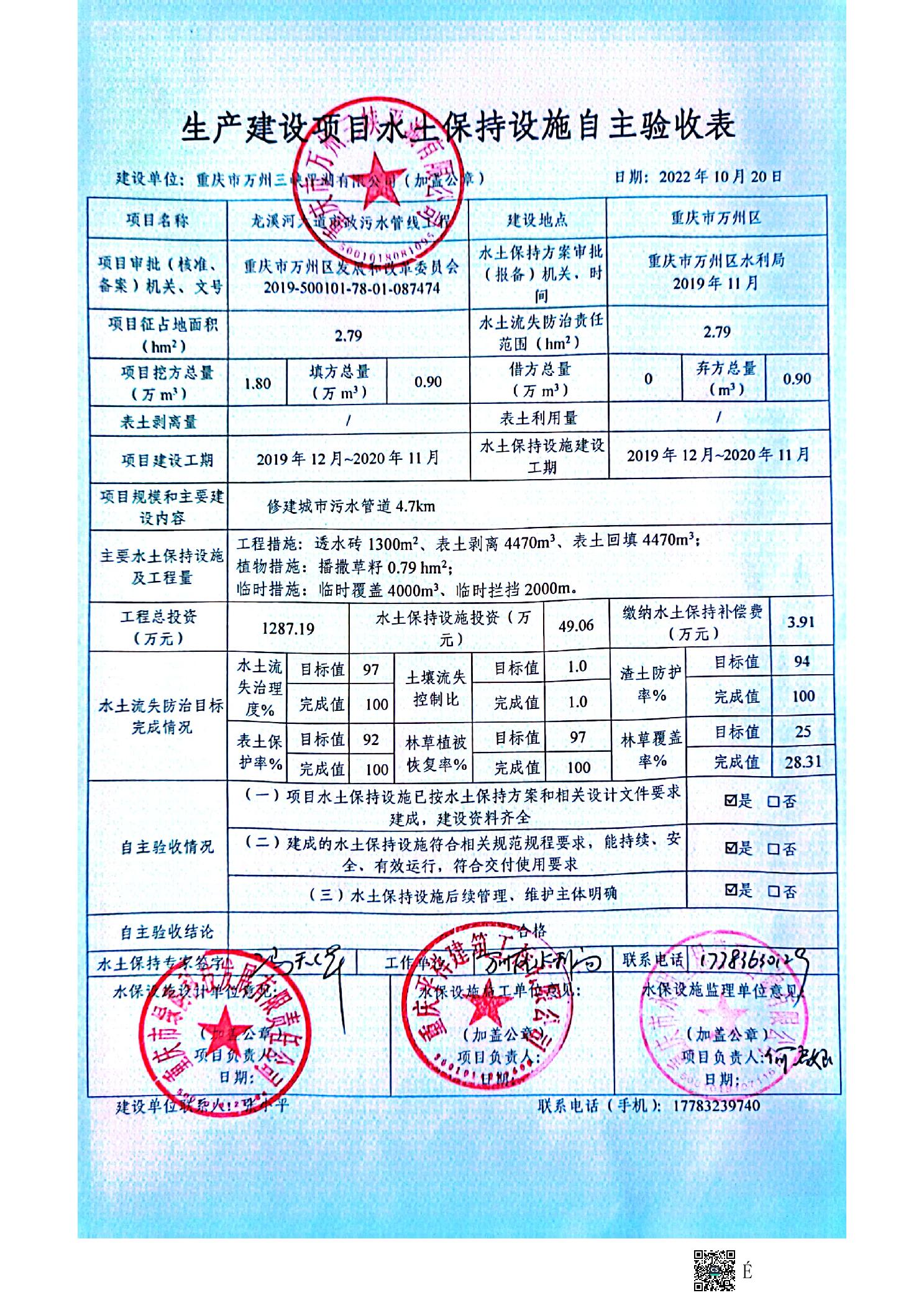 万州区生产建设项目水土保持设施自主验收公示(龙溪河大道市政污水管线工程)