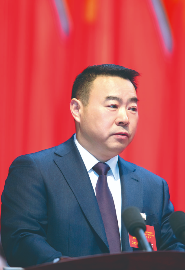 ▲区政协主席彭志辉作政协常委会工作报告。 记者 侯本艳 摄