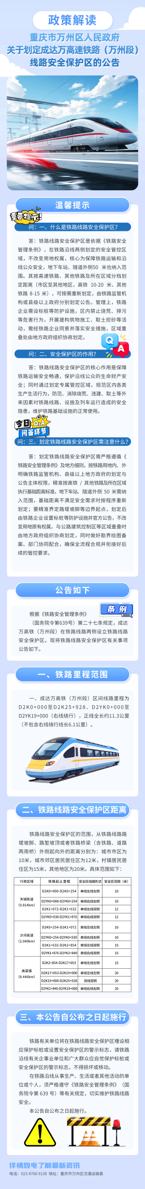 【部门解读】重庆市万州区人民政府关于划定渝万高速铁路(万州段)线路安全保护区的公告