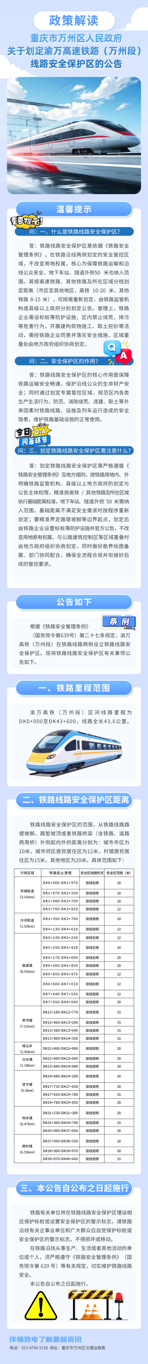 【一图读懂】重庆市万州区人民政府关于划定渝万高速铁路(万州段)线路安全保护区的公告