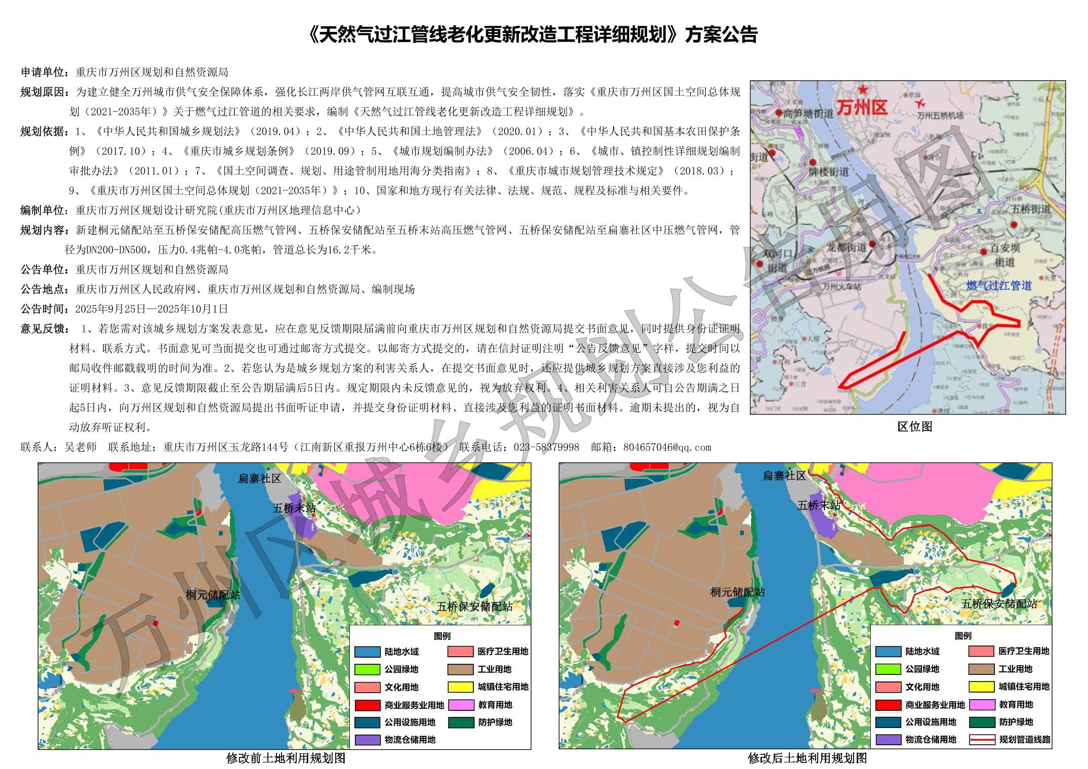 重庆市万州区规划和自然资源局《天然气过江管线老化更新改造工程详细规划》方案公告