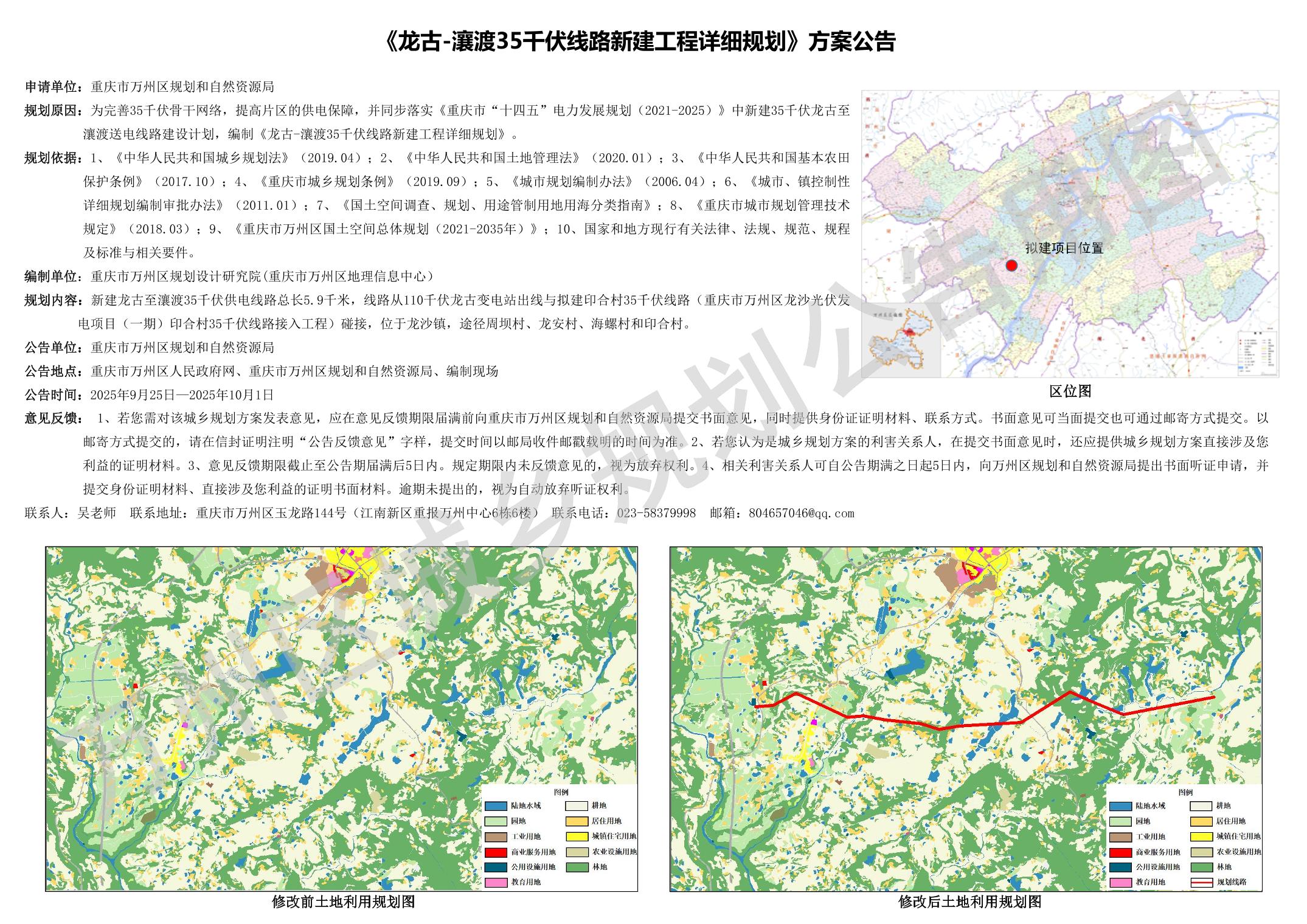 重庆市万州区规划和自然资源局《龙古-瀼渡35千伏线路新建工程详细规划》方案公告