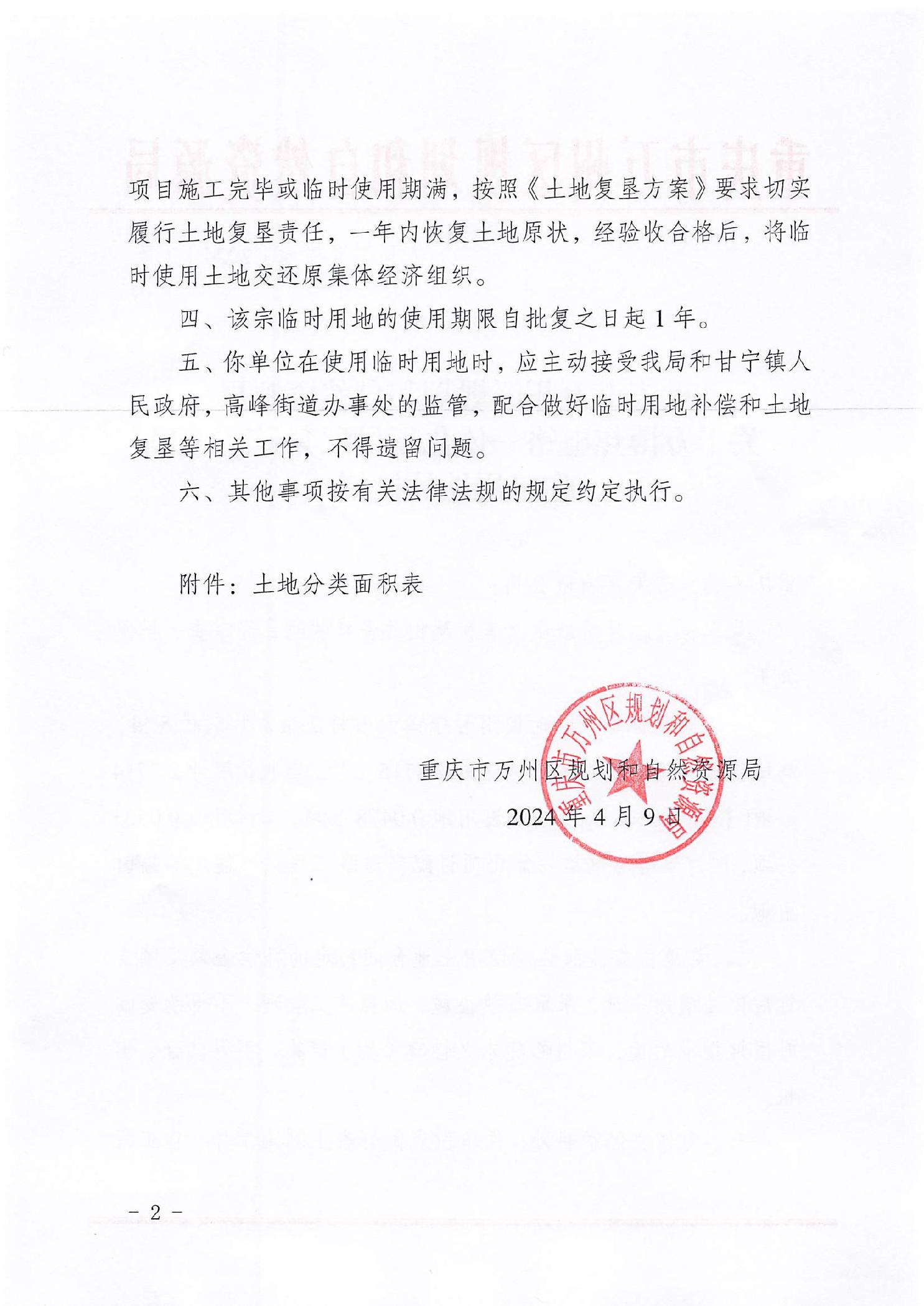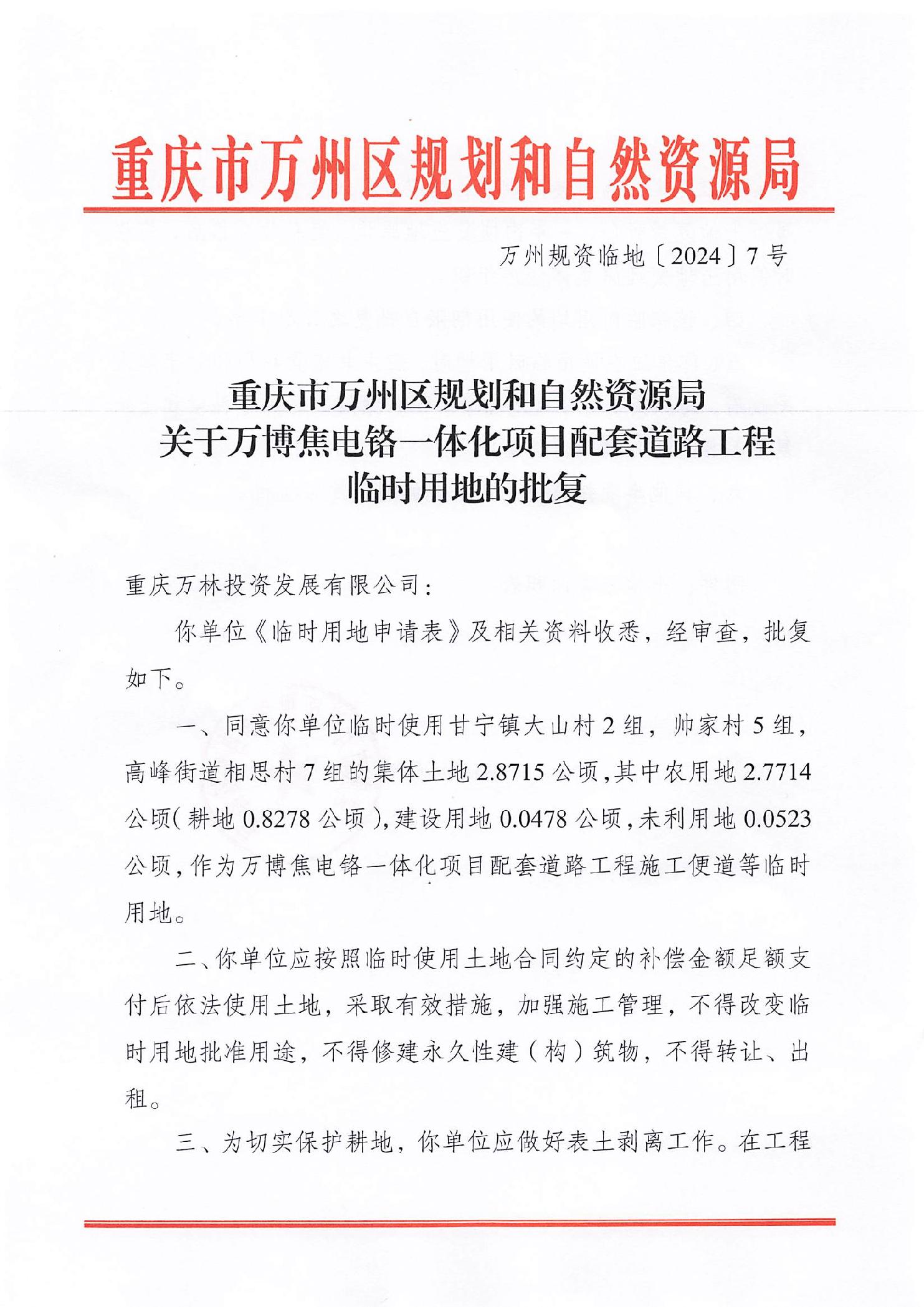 关于万博焦电铬一体化项目配套道路工程临时用地的批复