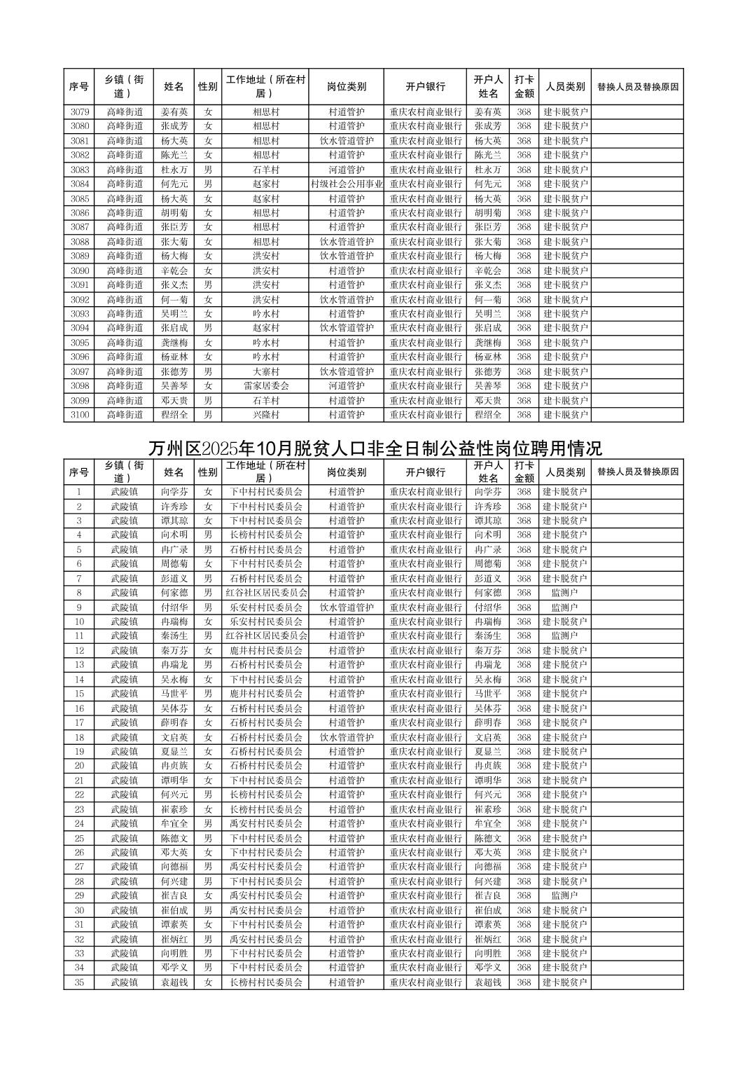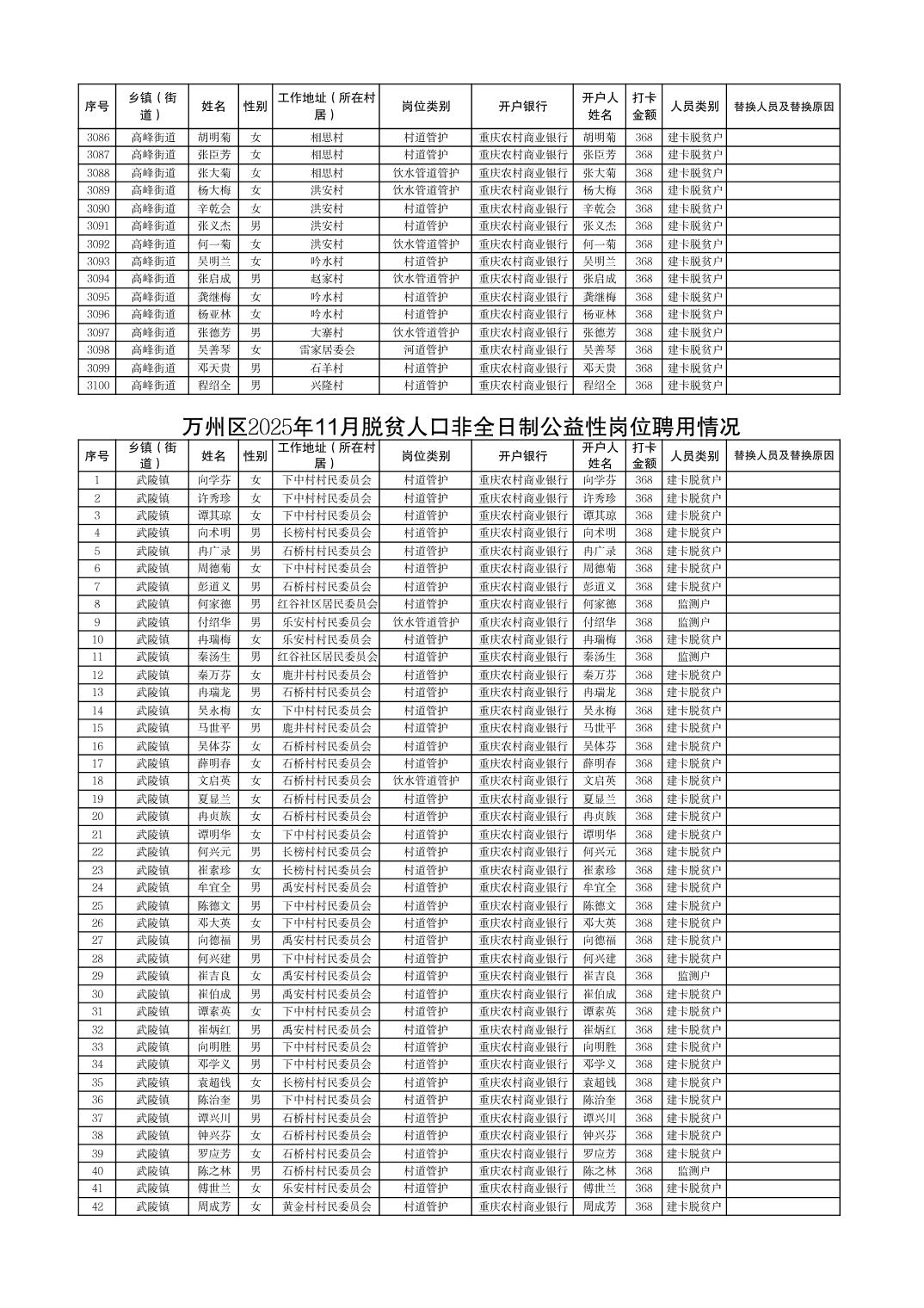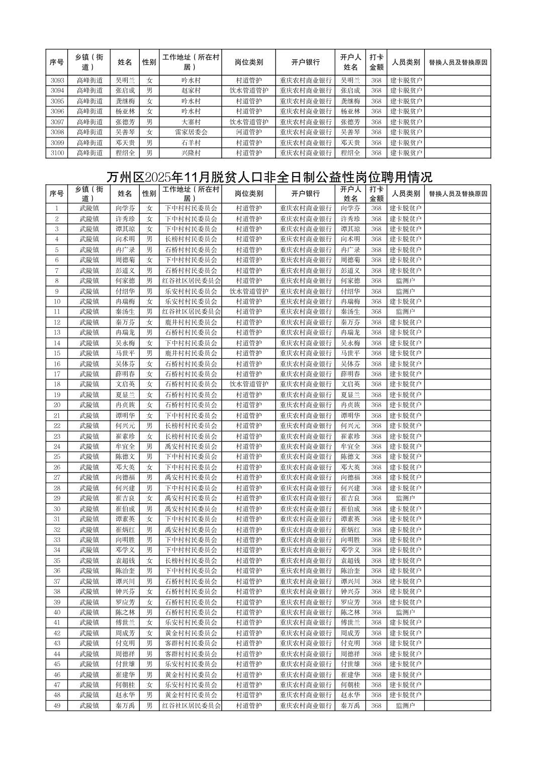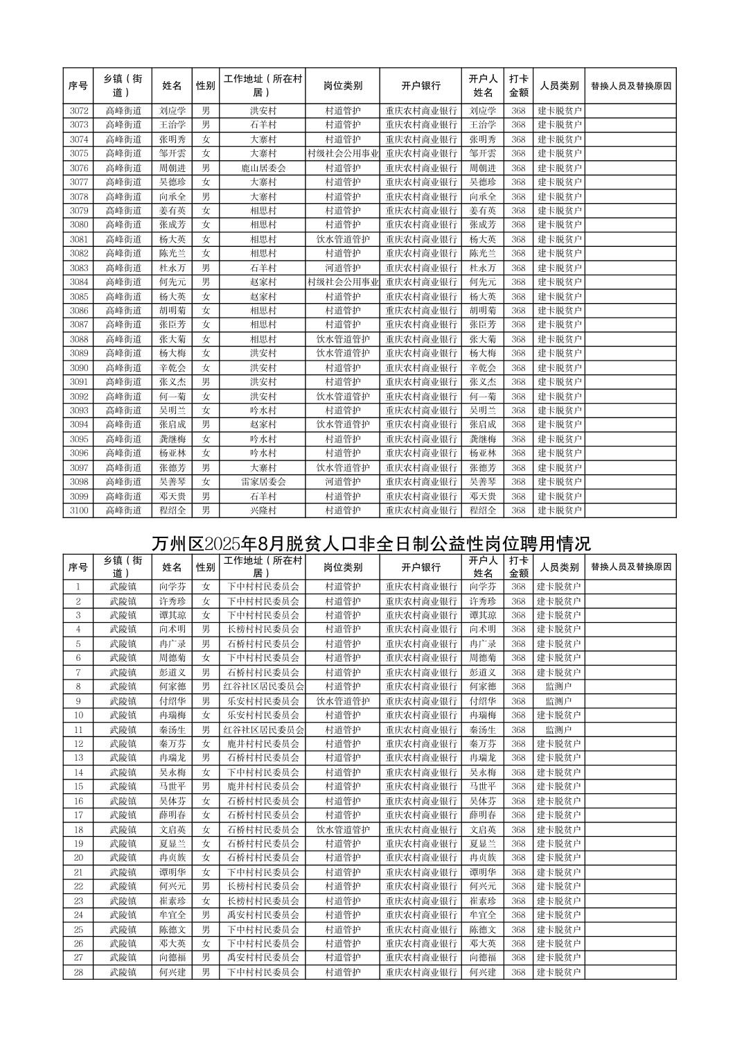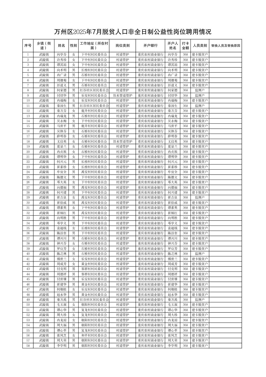 万州区脱贫人口非全日制公益性岗位聘用情况(7-12月)