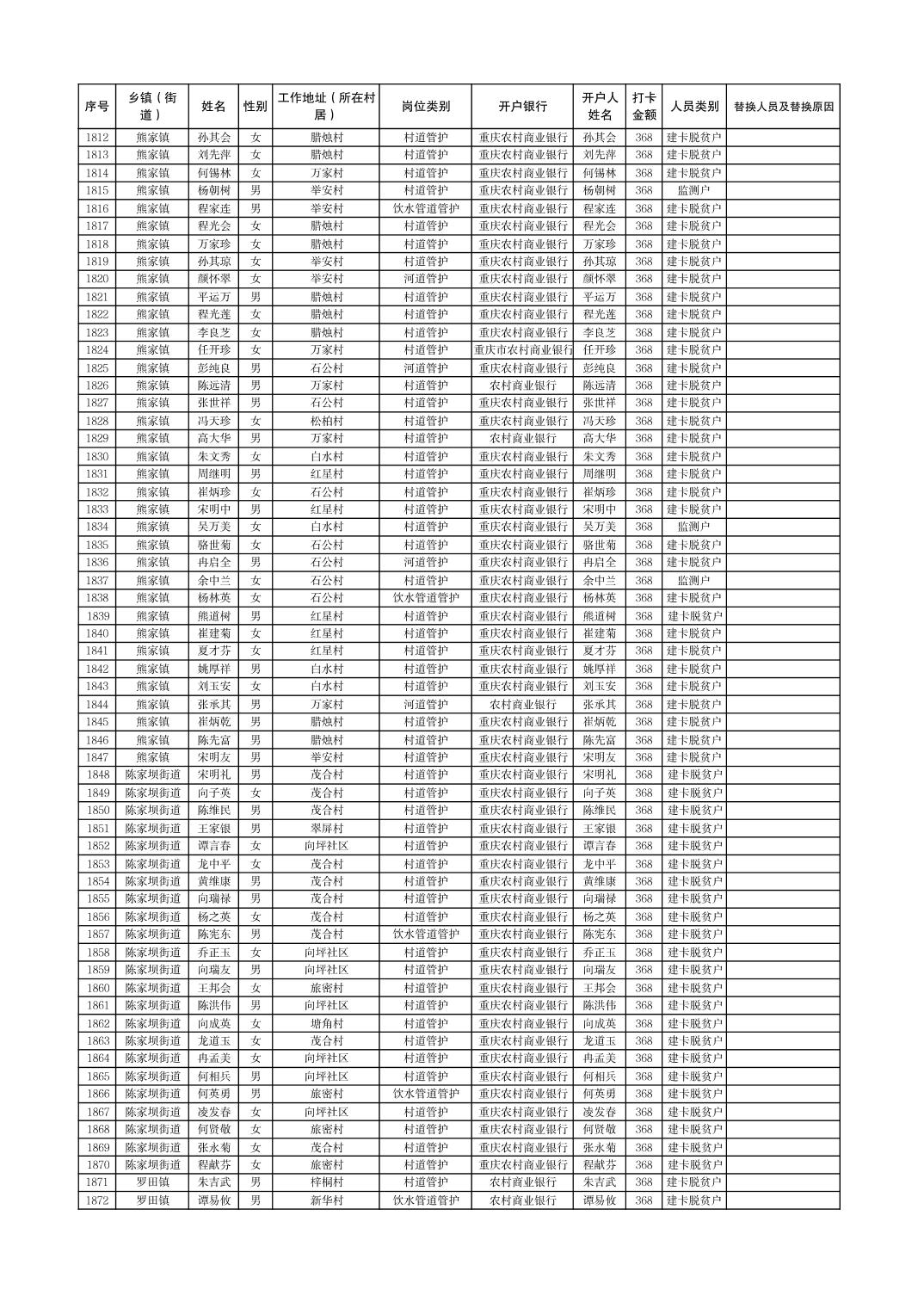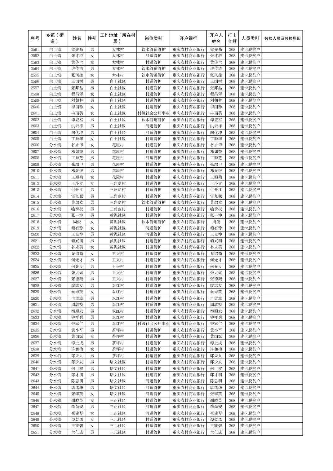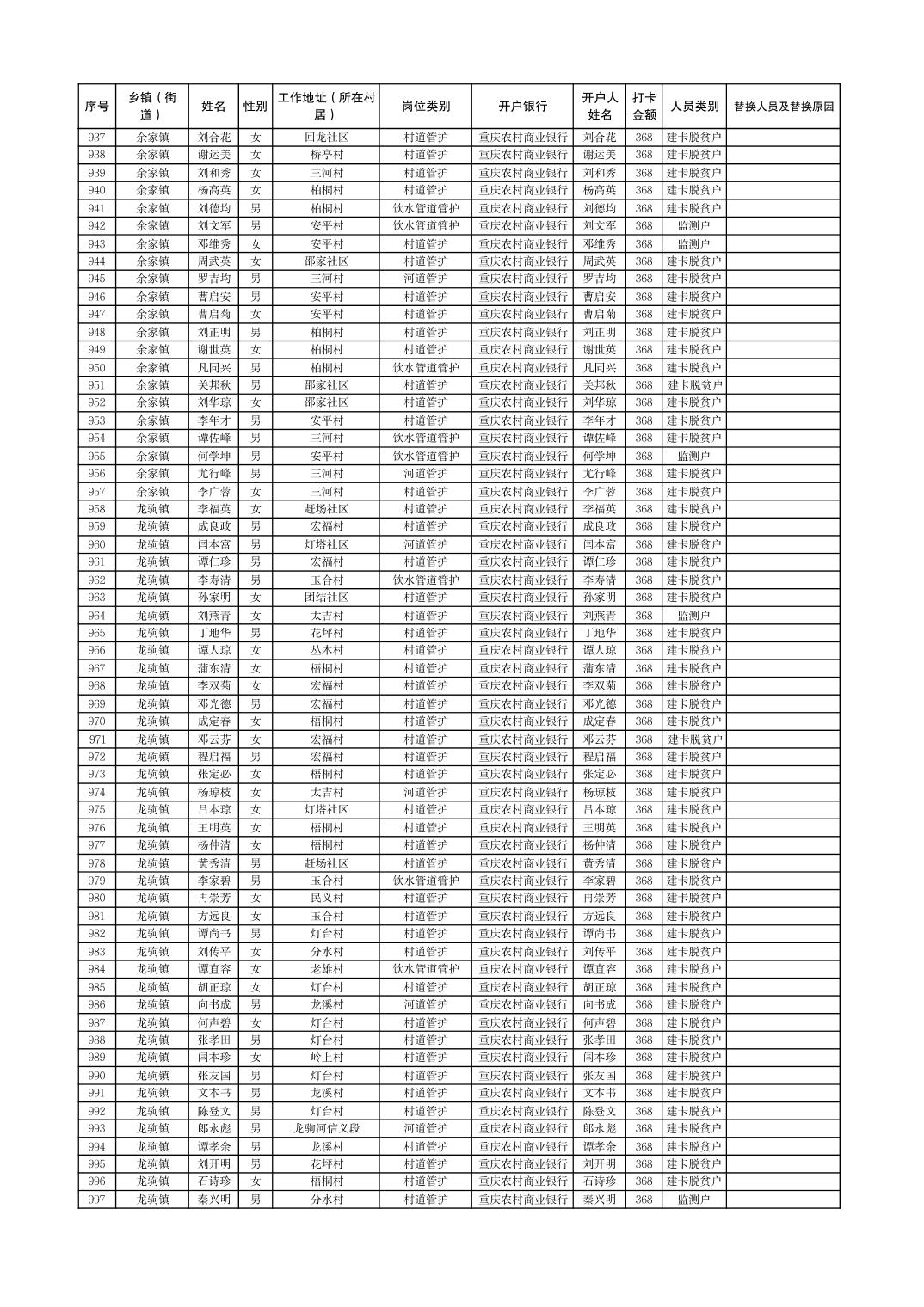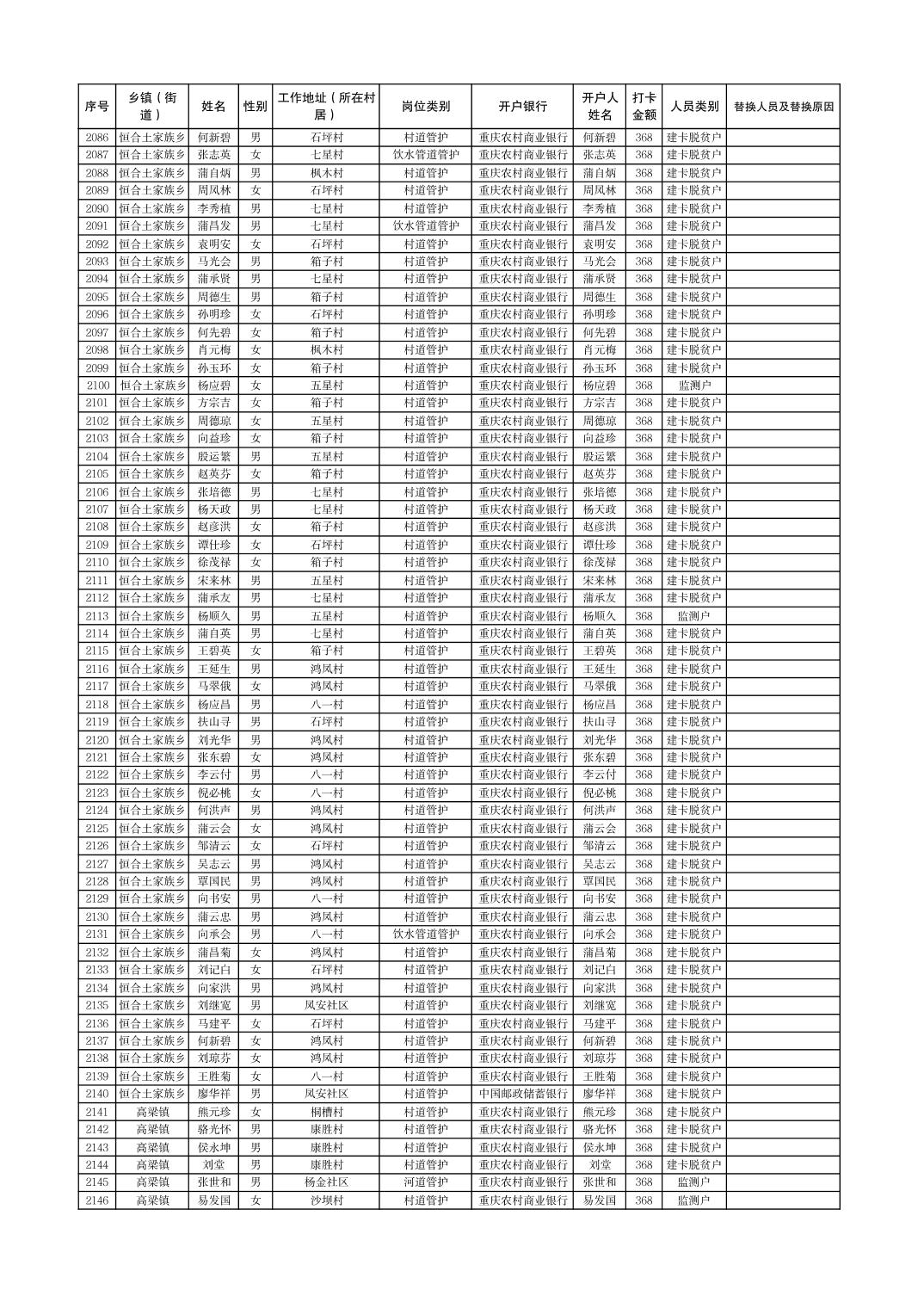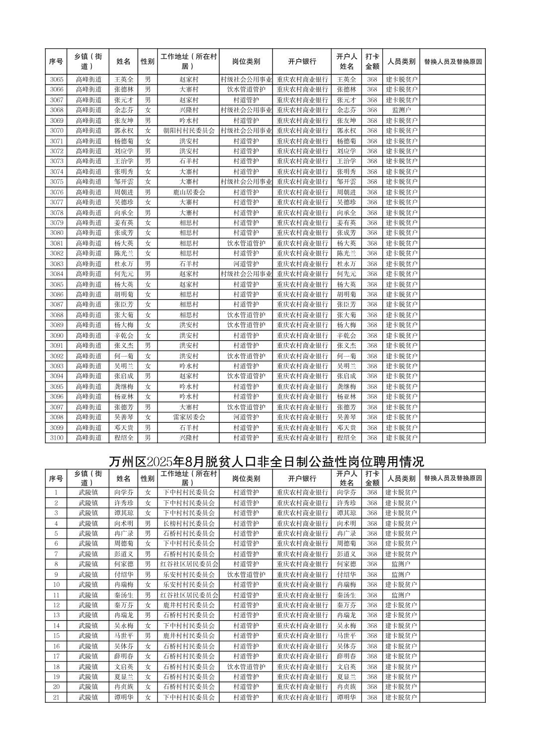万州区脱贫人口非全日制公益性岗位聘用情况(7-12月)