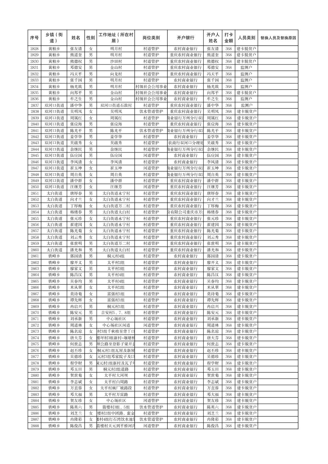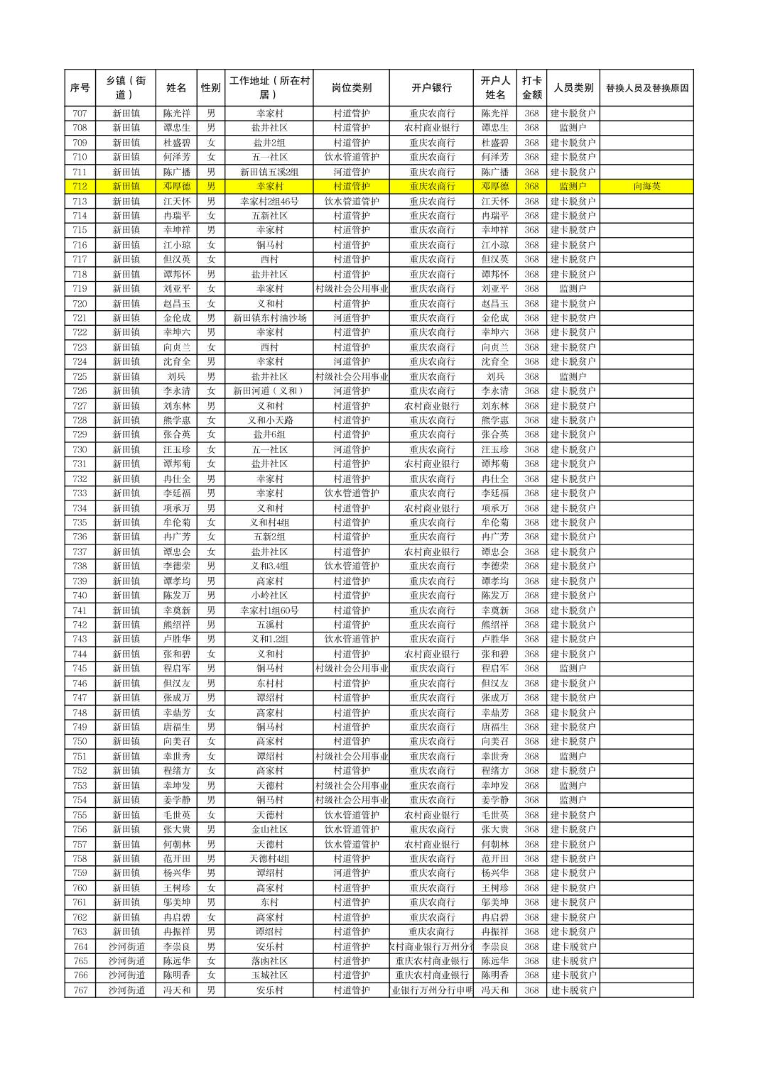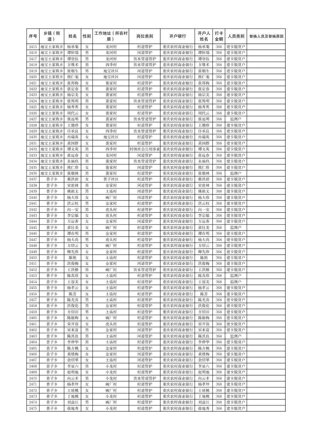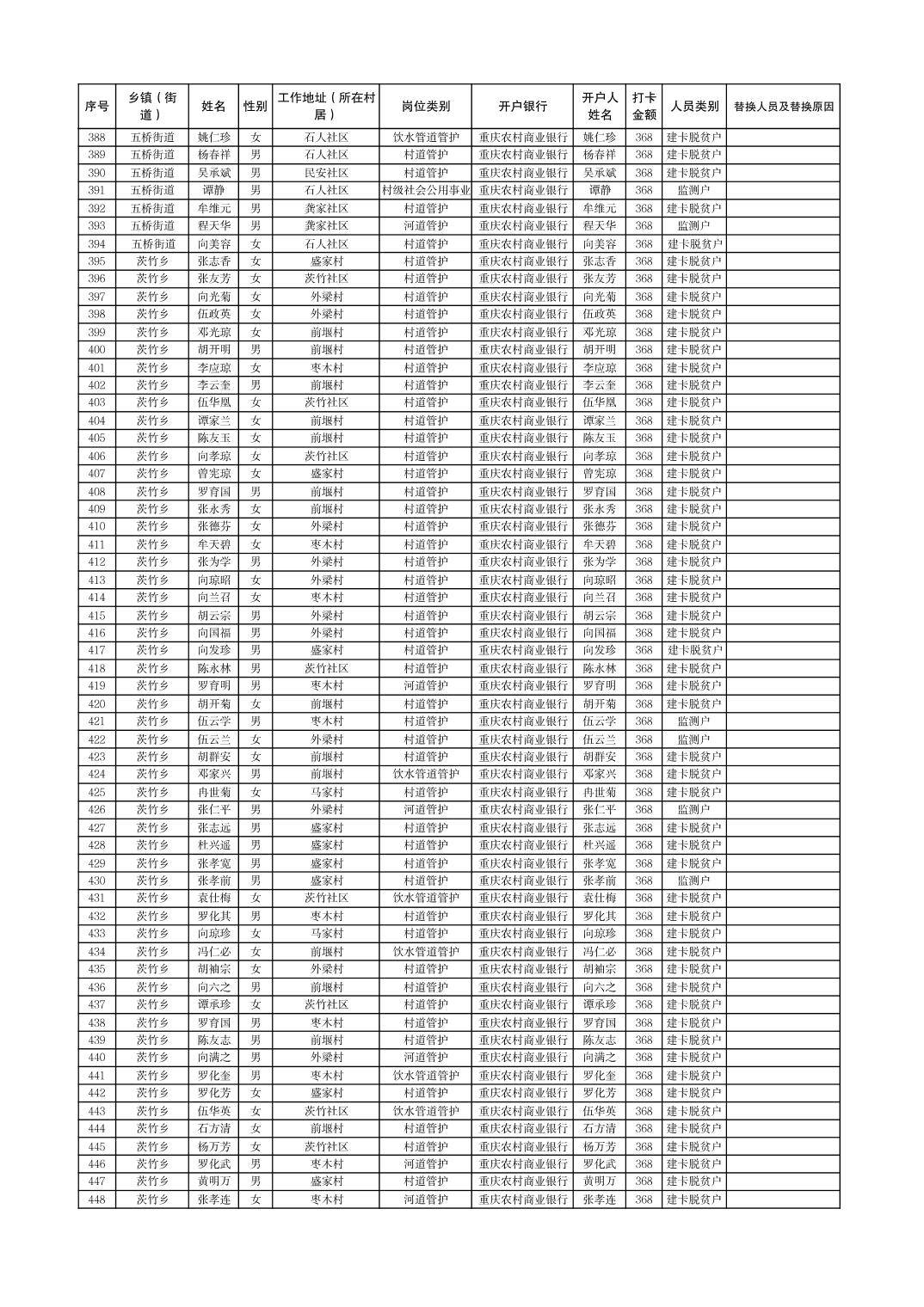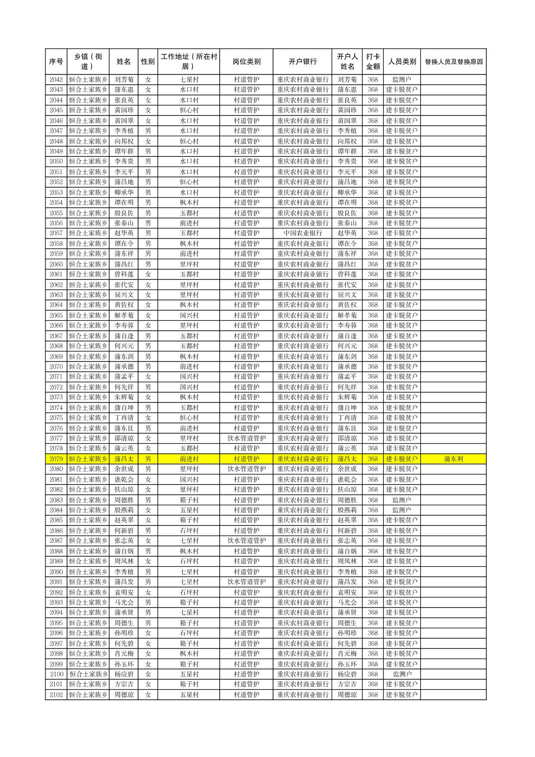 万州区脱贫人口非全日制公益性岗位聘用情况(7-12月)
