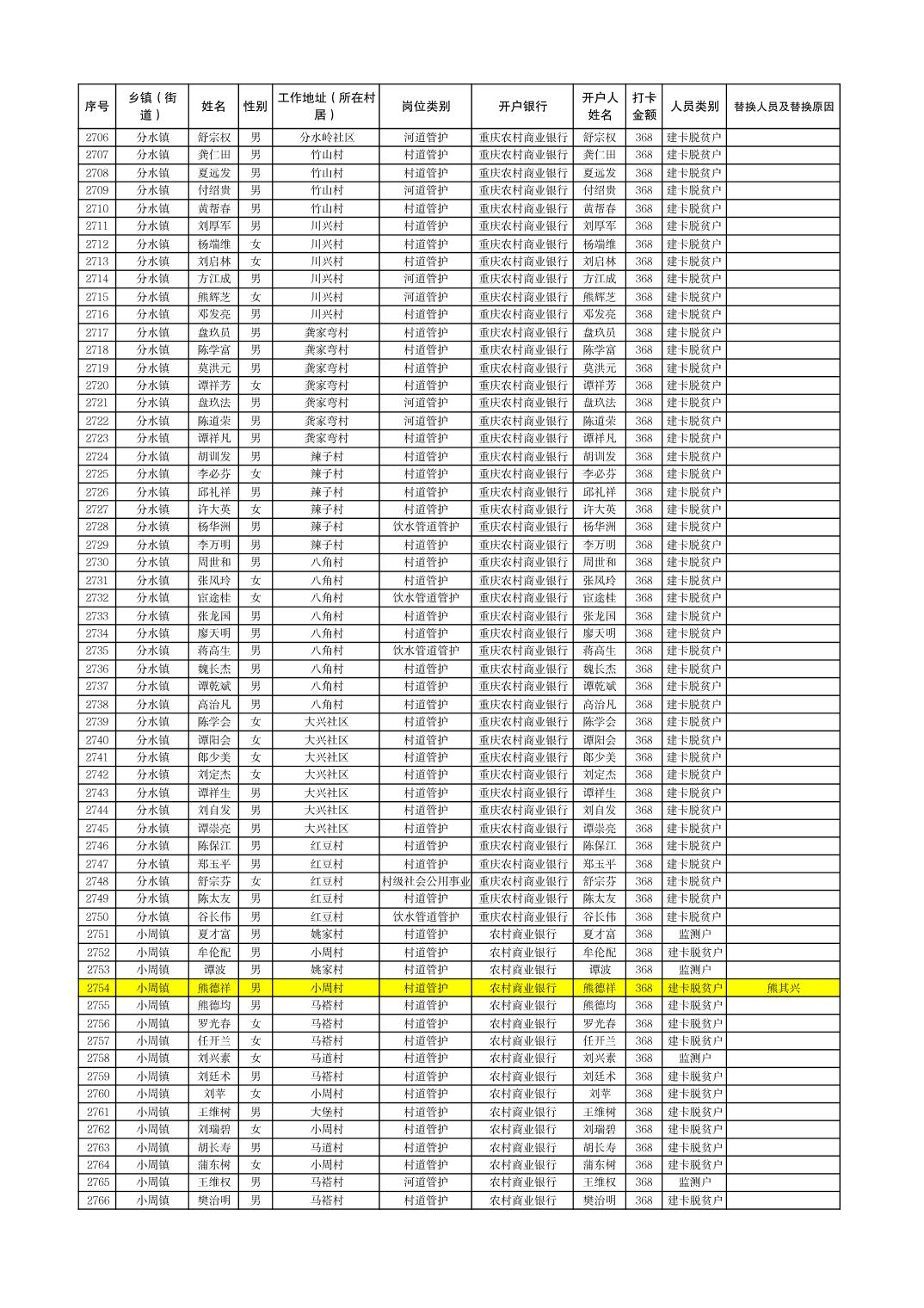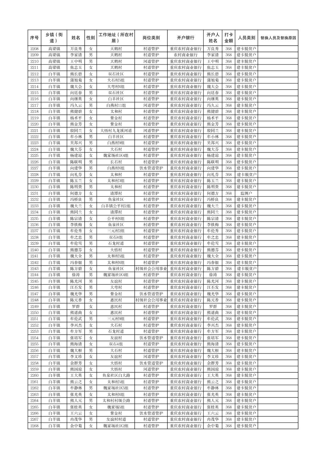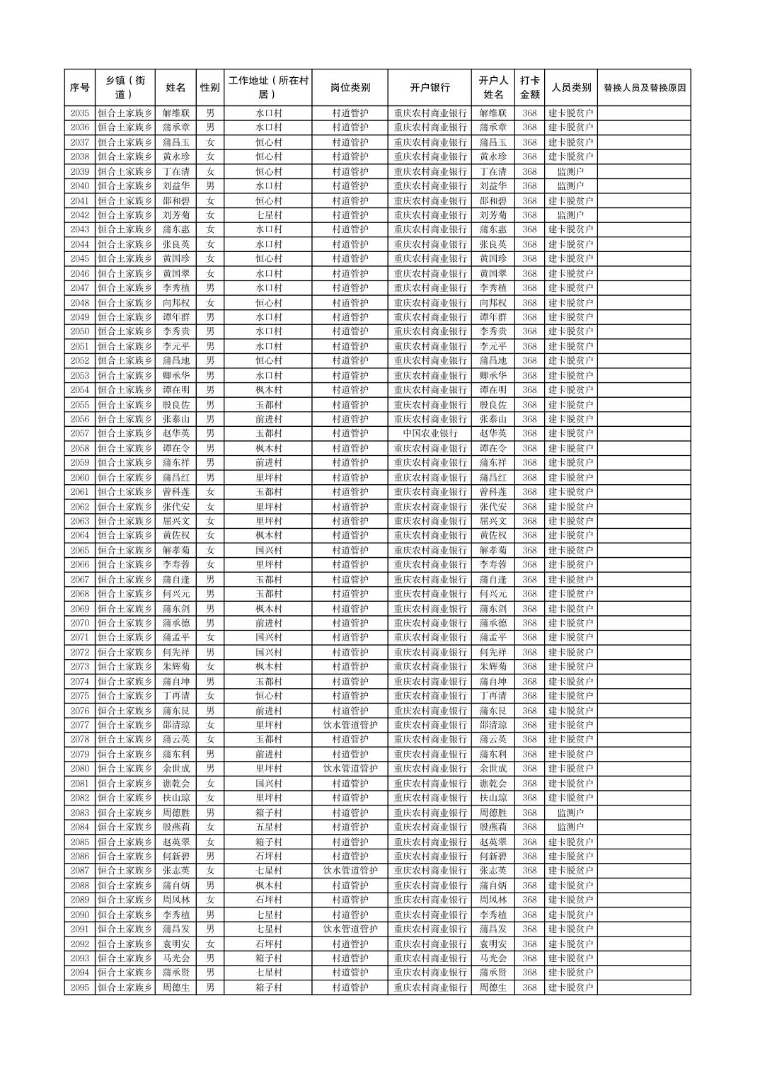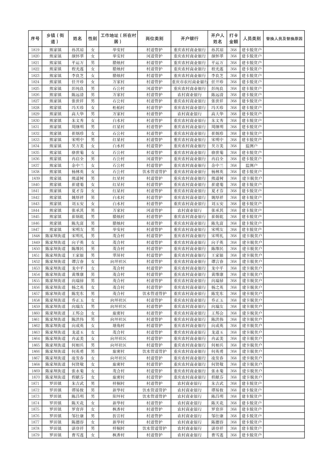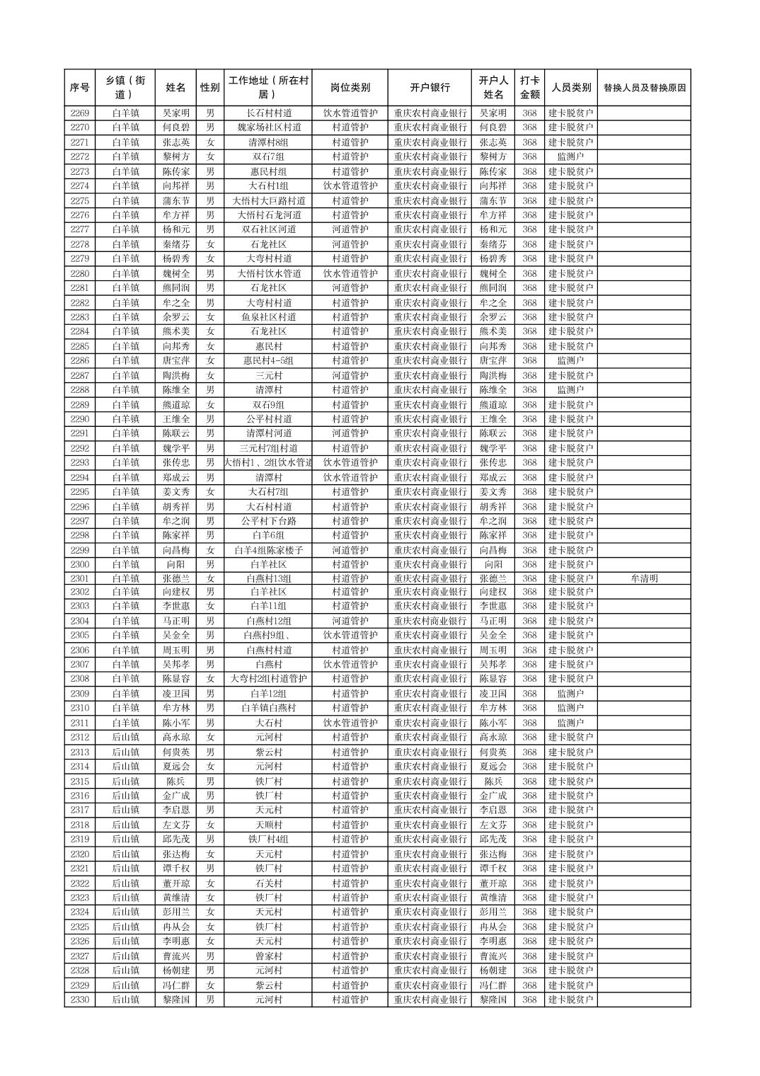万州区脱贫人口非全日制公益性岗位聘用情况(7-12月)
