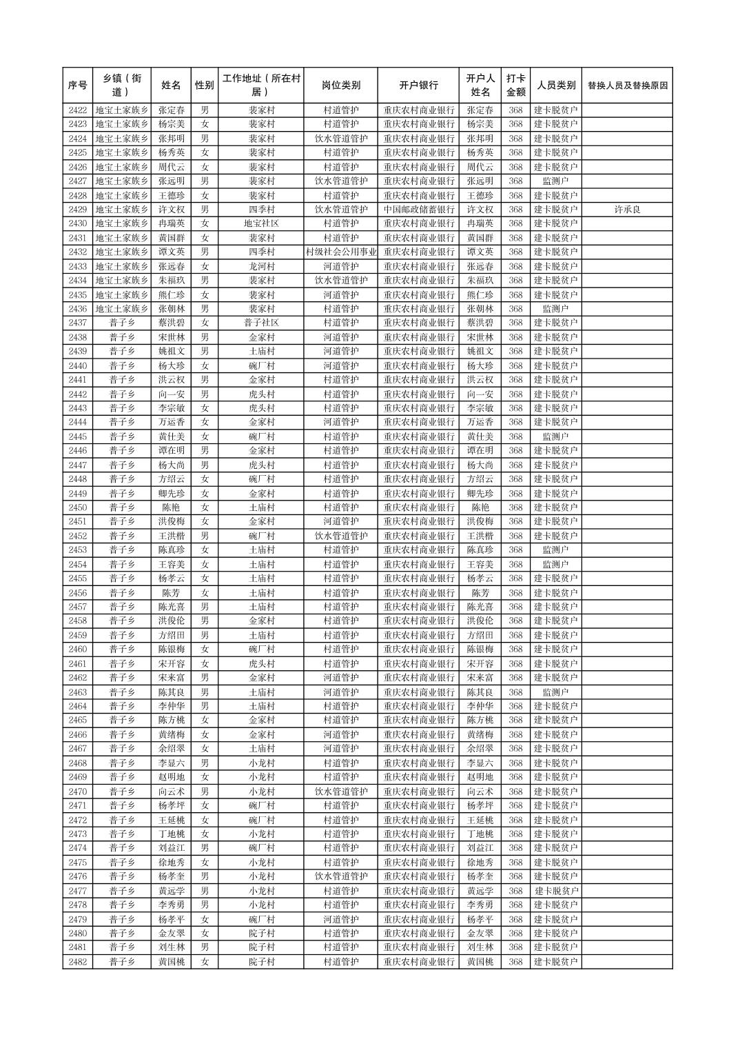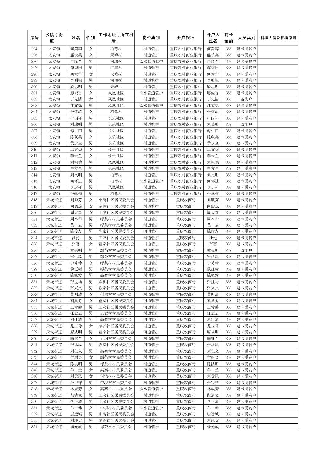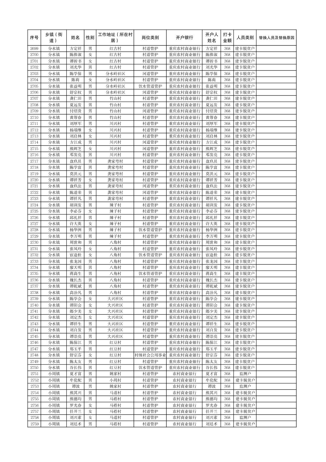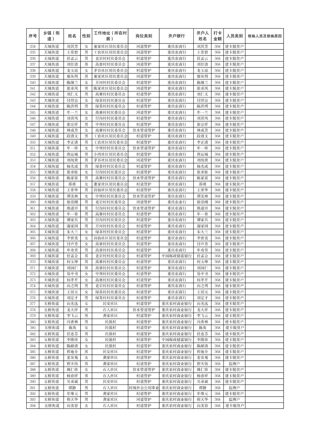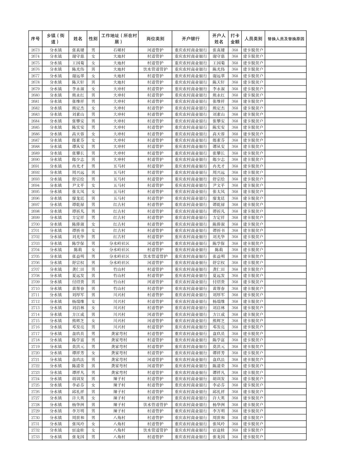万州区脱贫人口非全日制公益性岗位聘用情况(7-12月)
