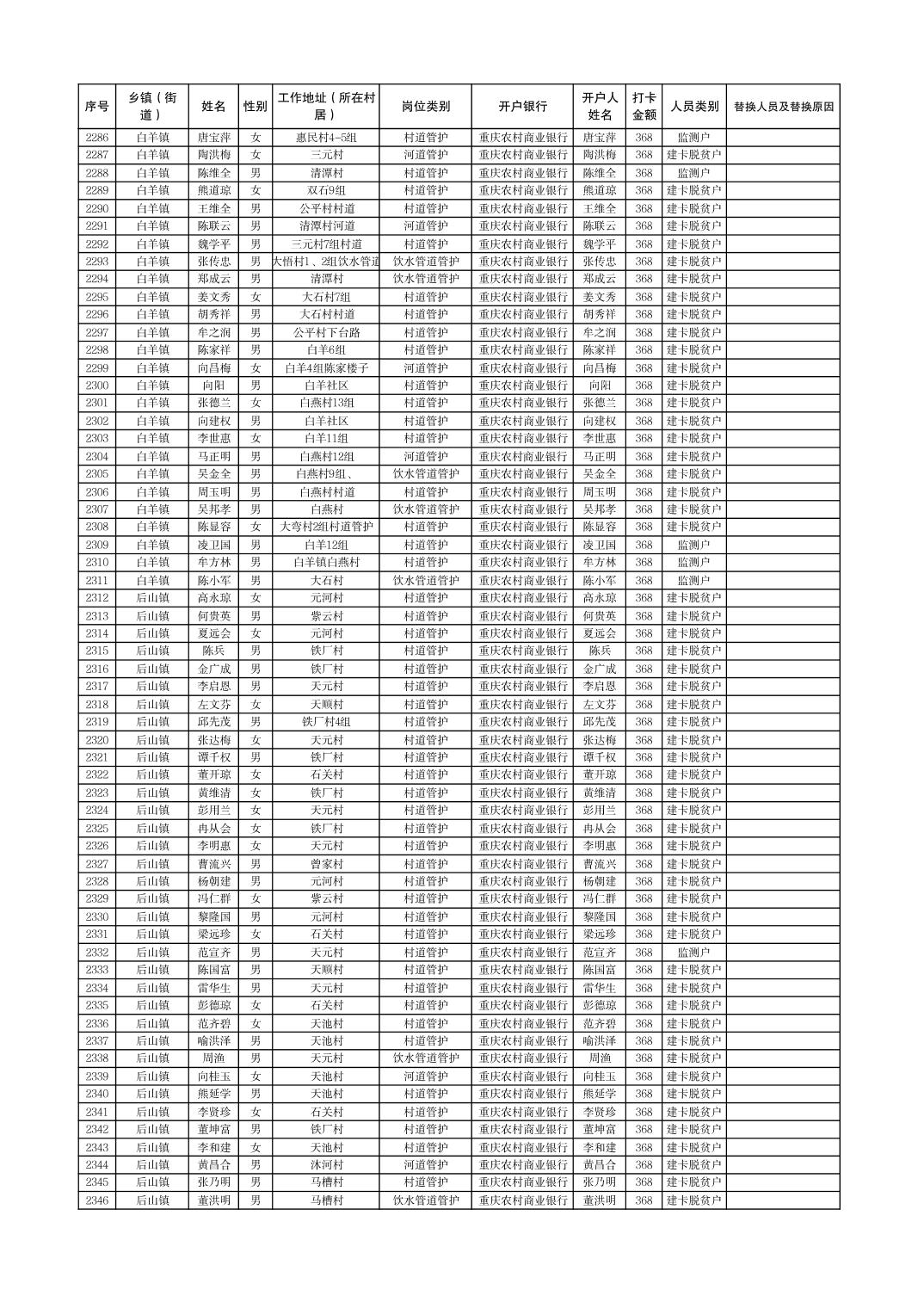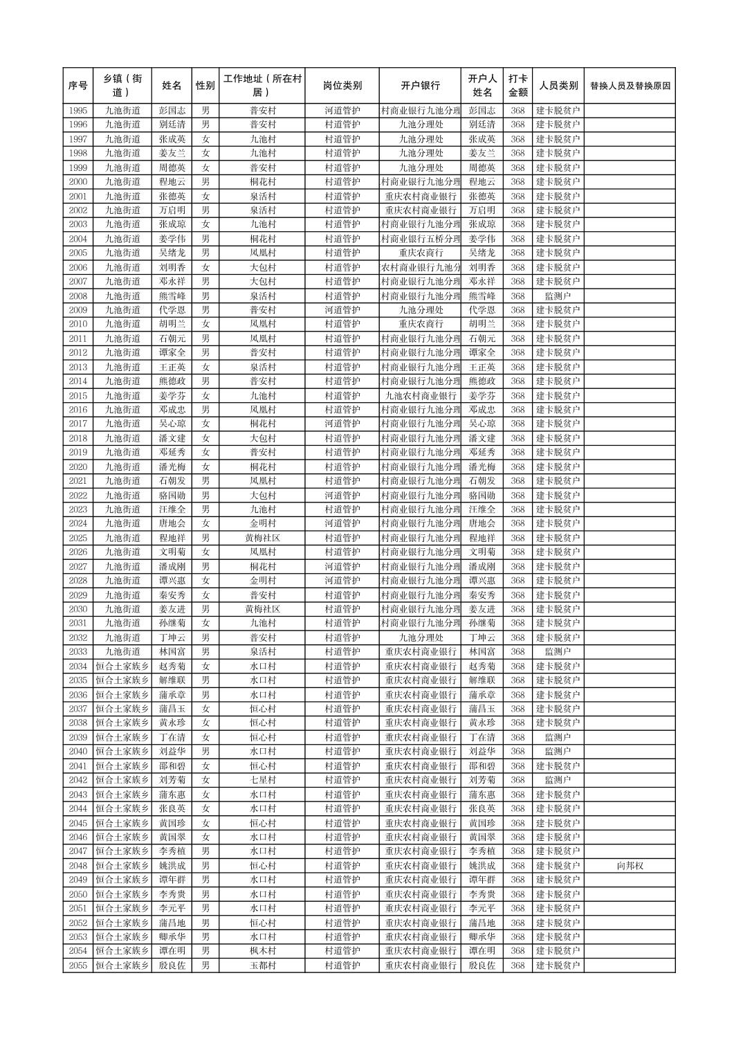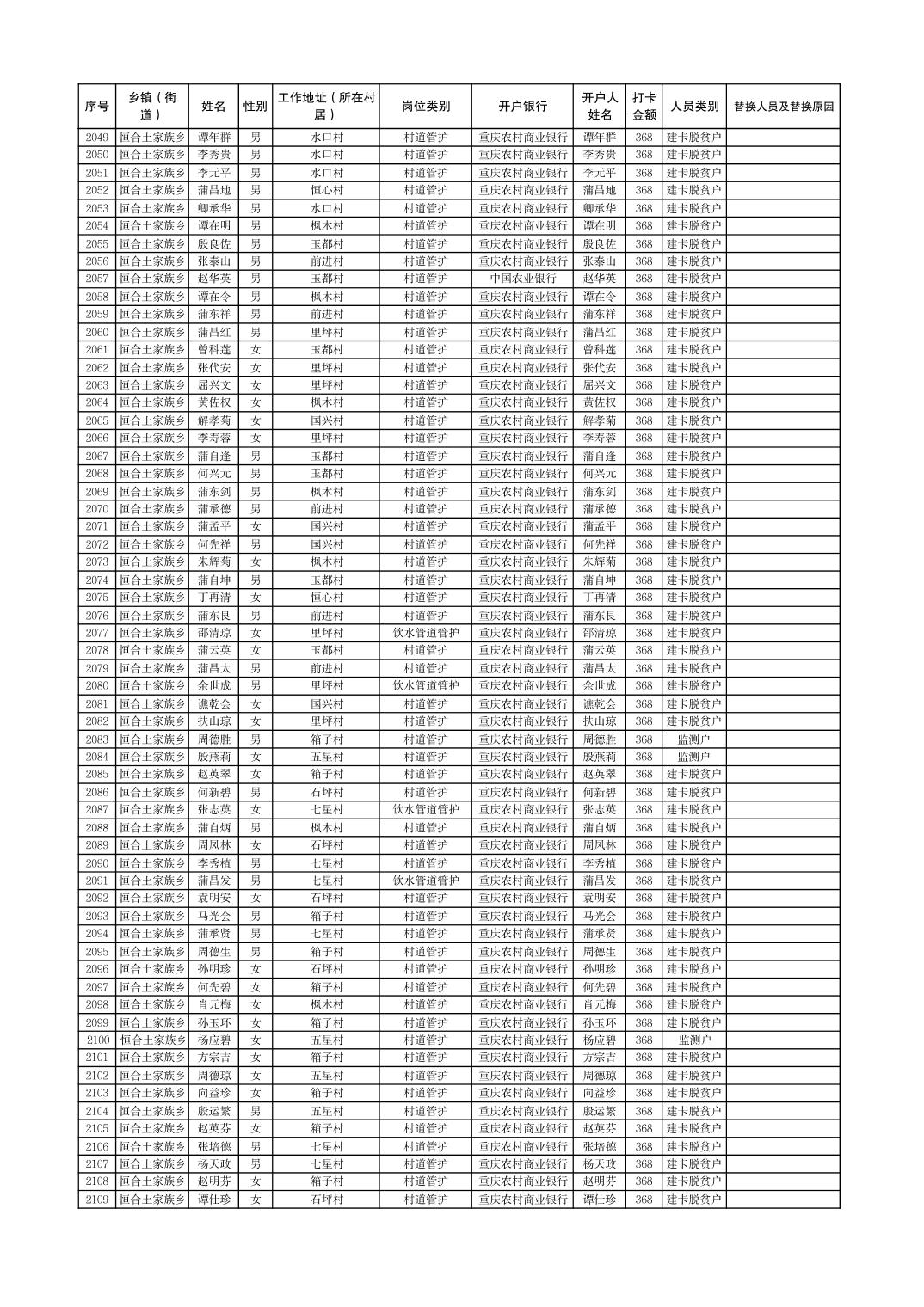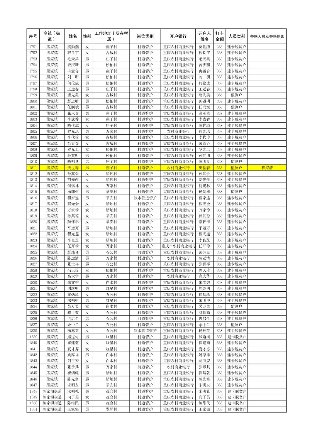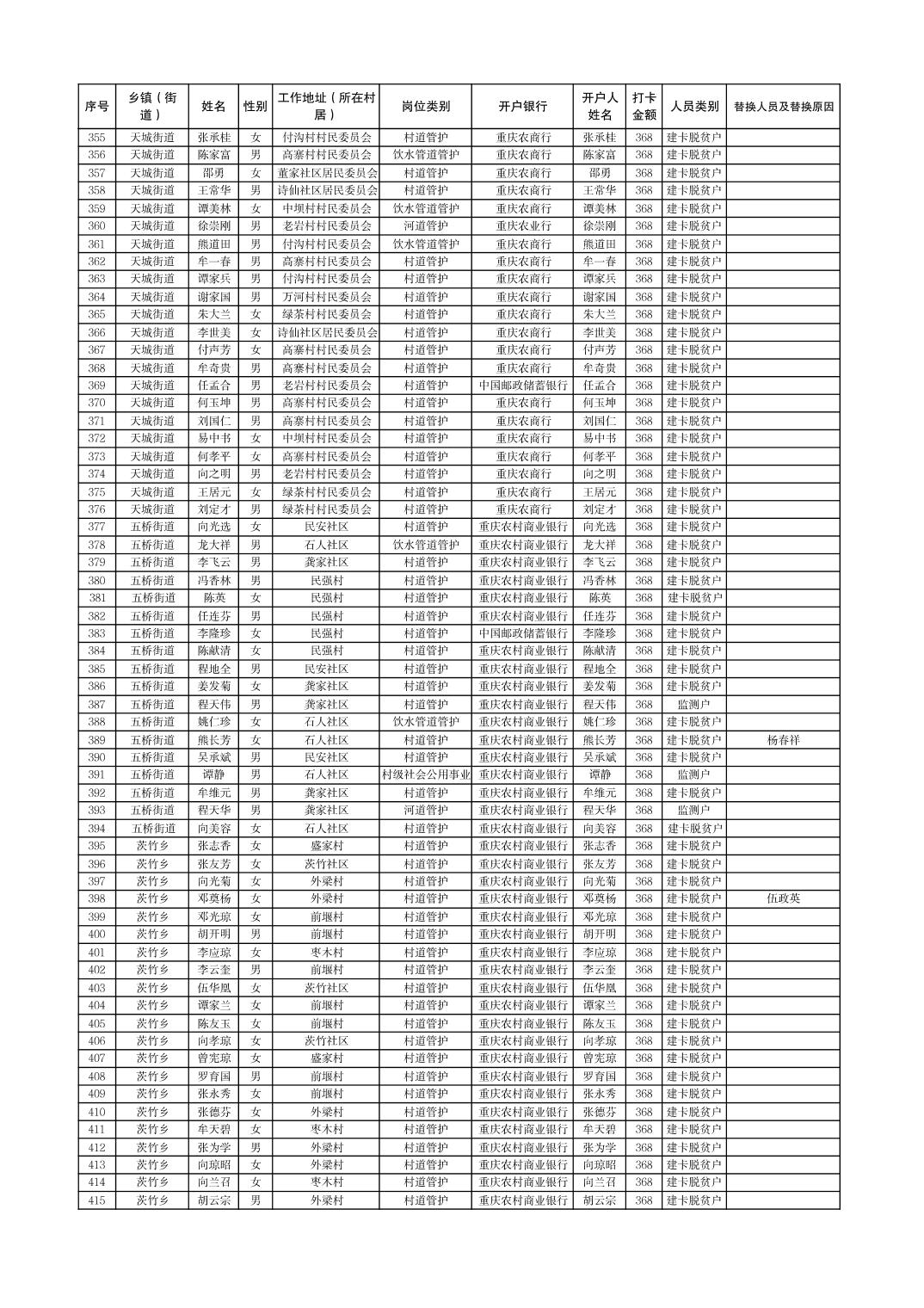 万州区脱贫人口非全日制公益性岗位聘用情况(7-12月)