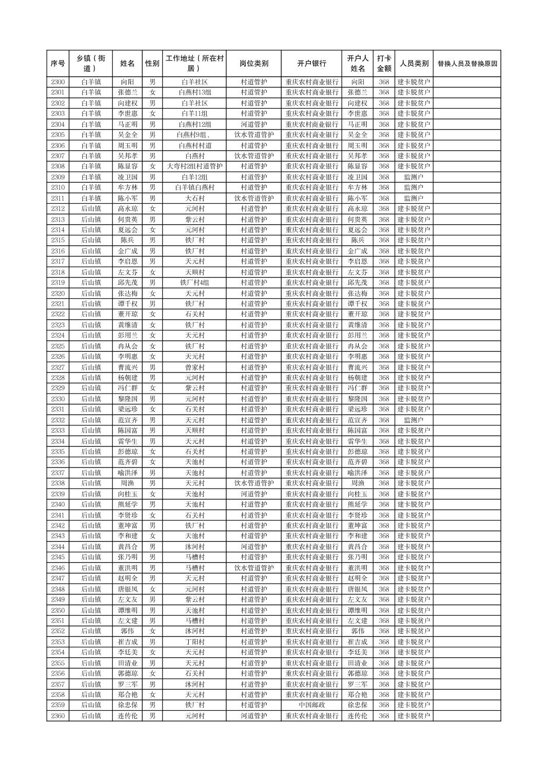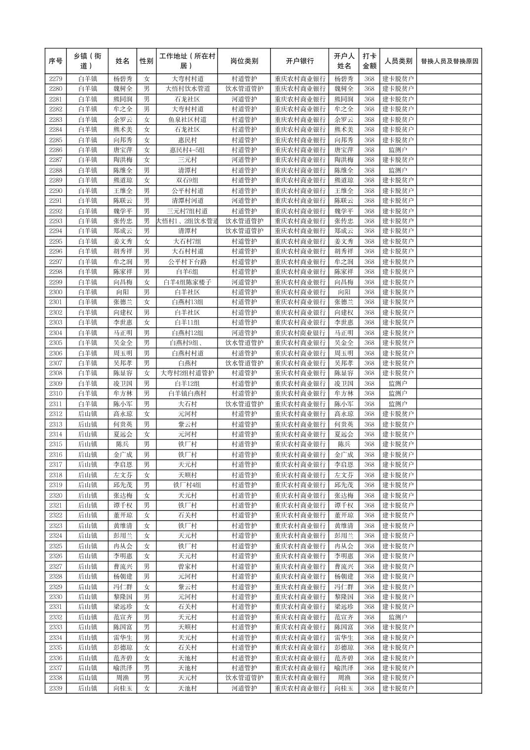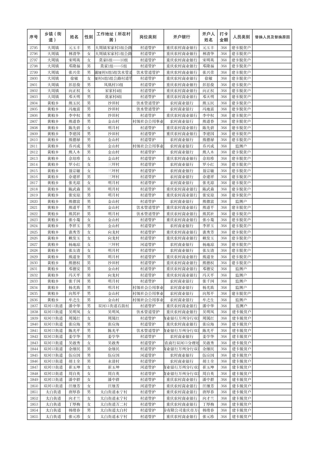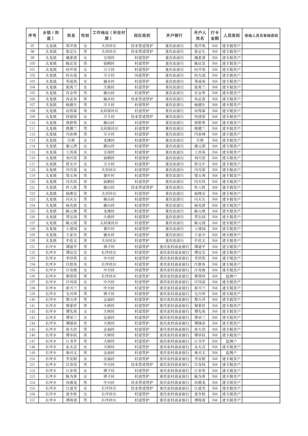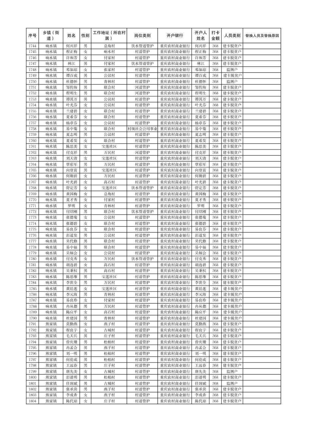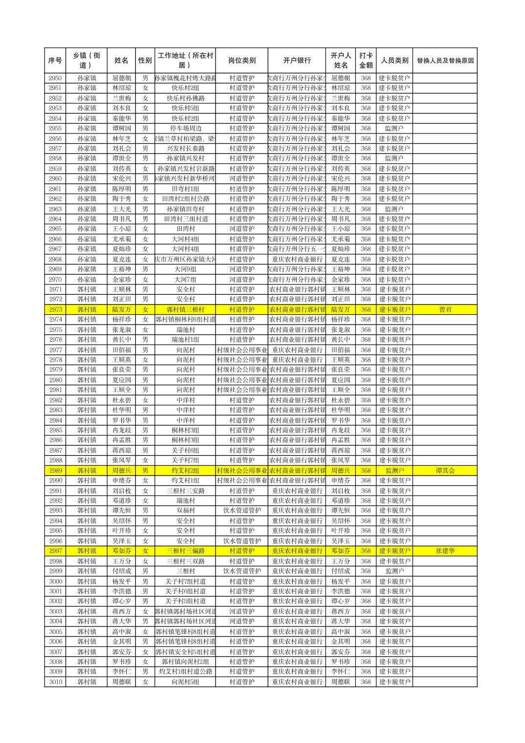 万州区脱贫人口非全日制公益性岗位聘用情况(7-12月)