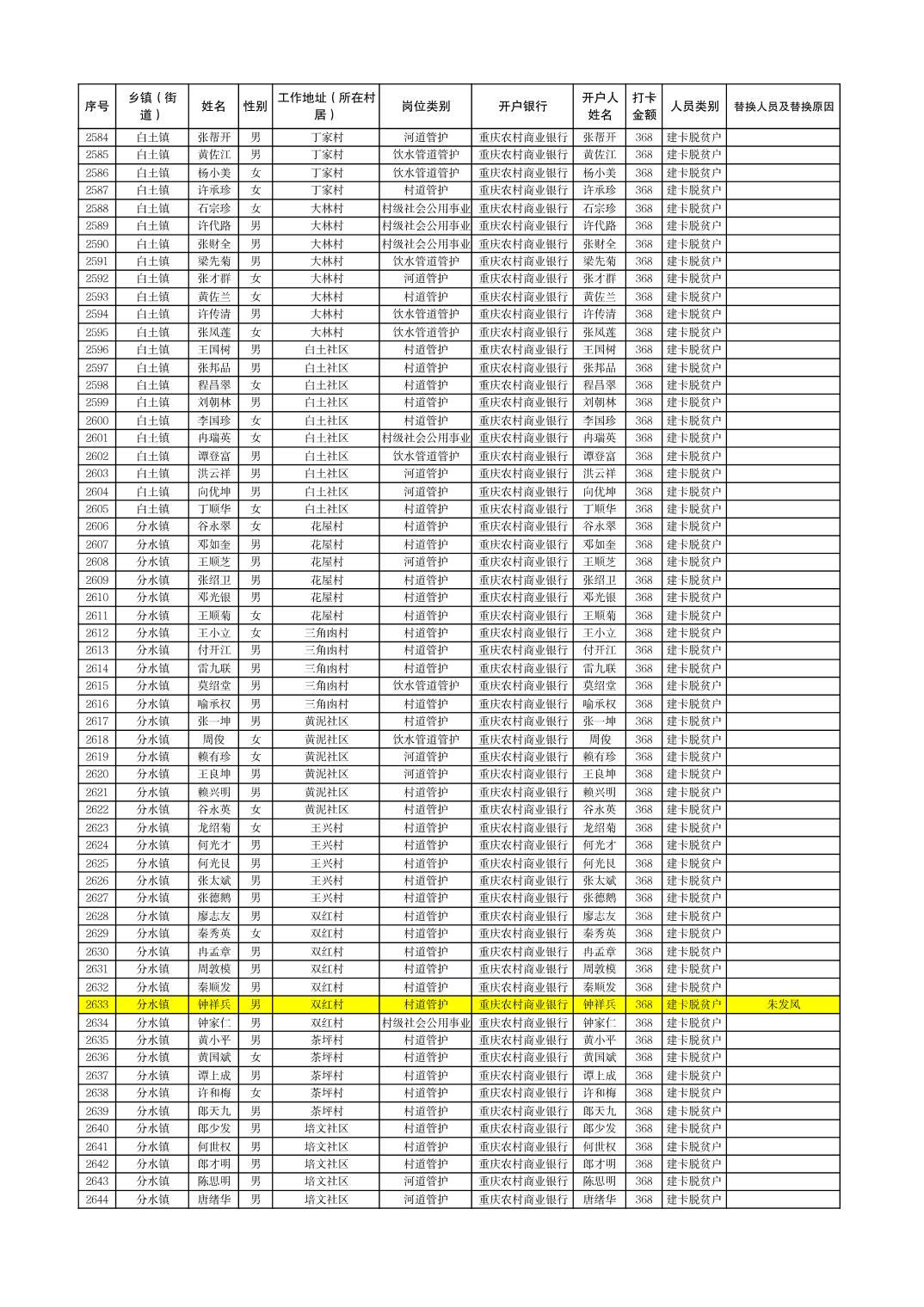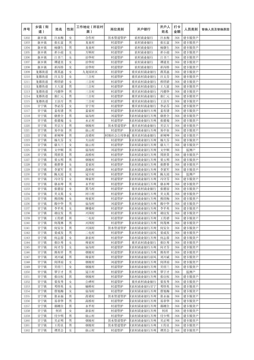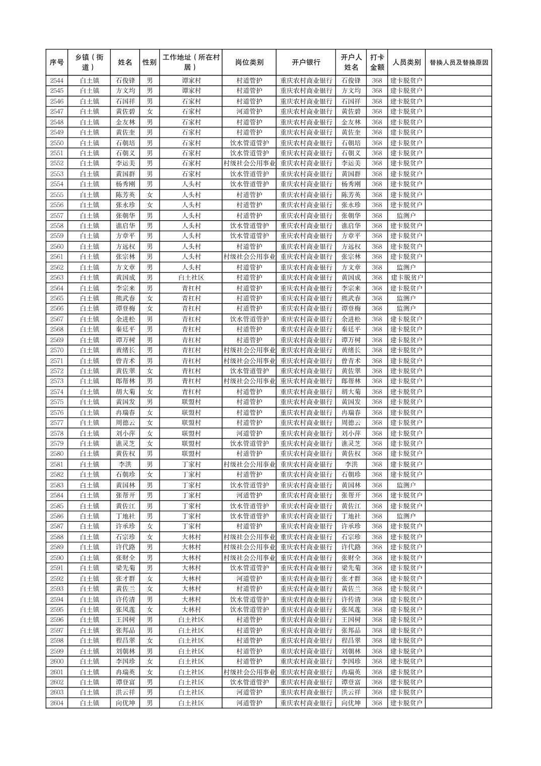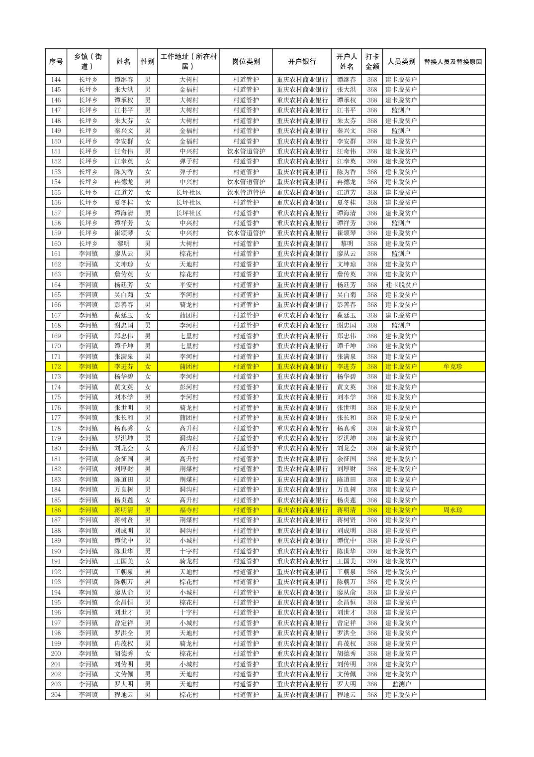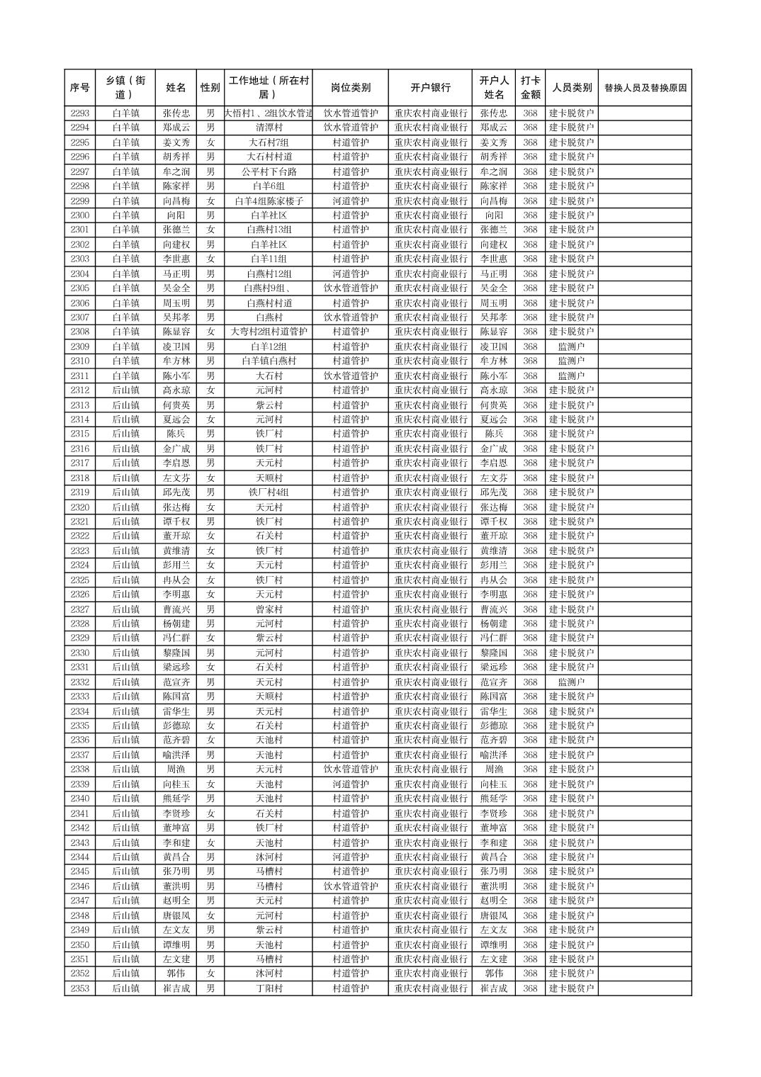 万州区脱贫人口非全日制公益性岗位聘用情况(7-12月)