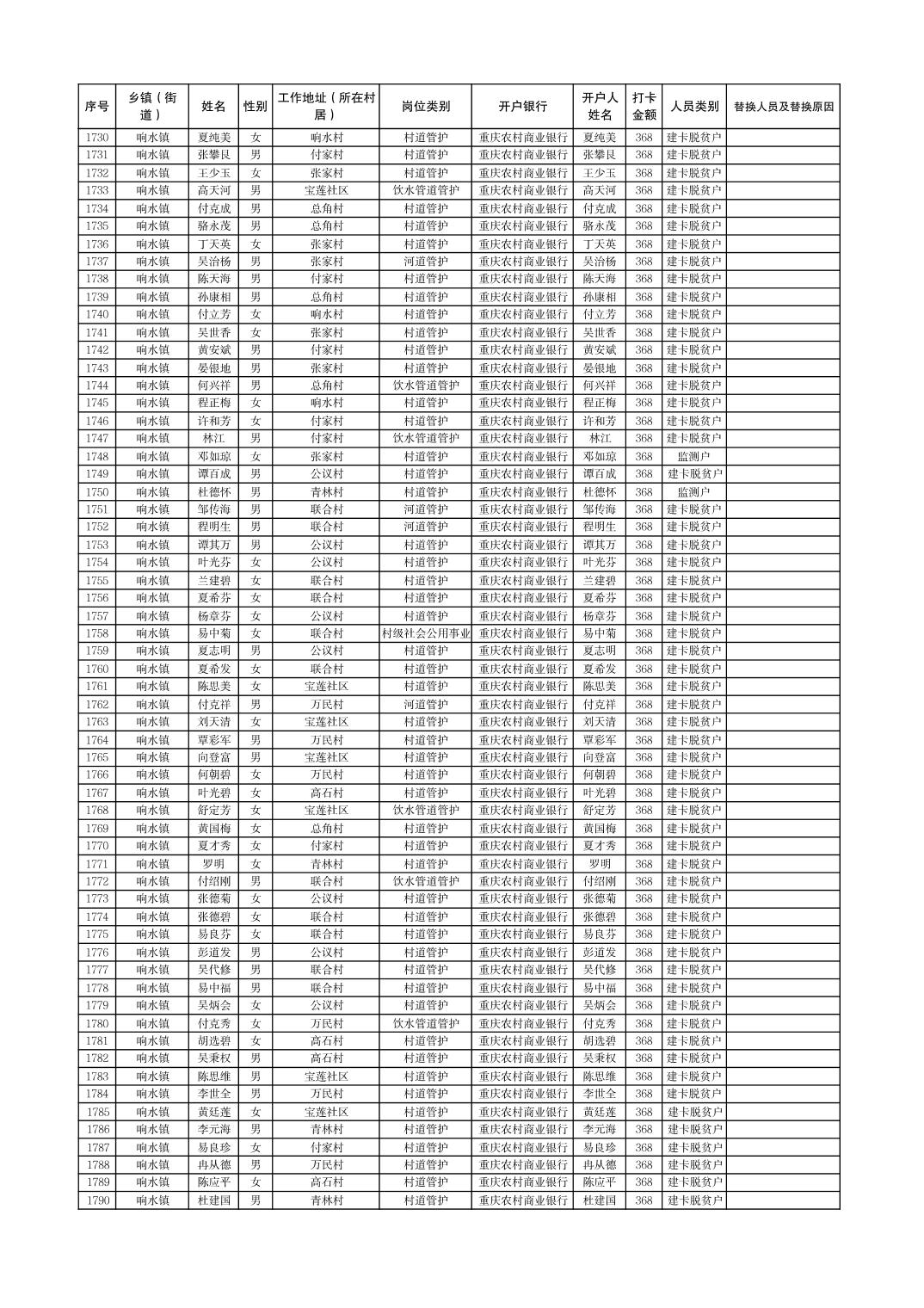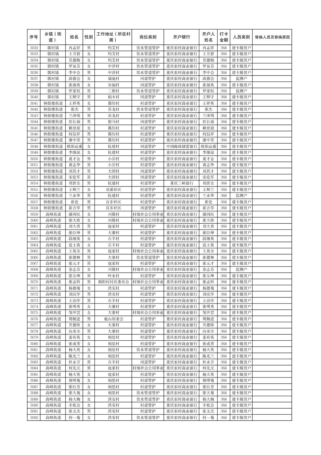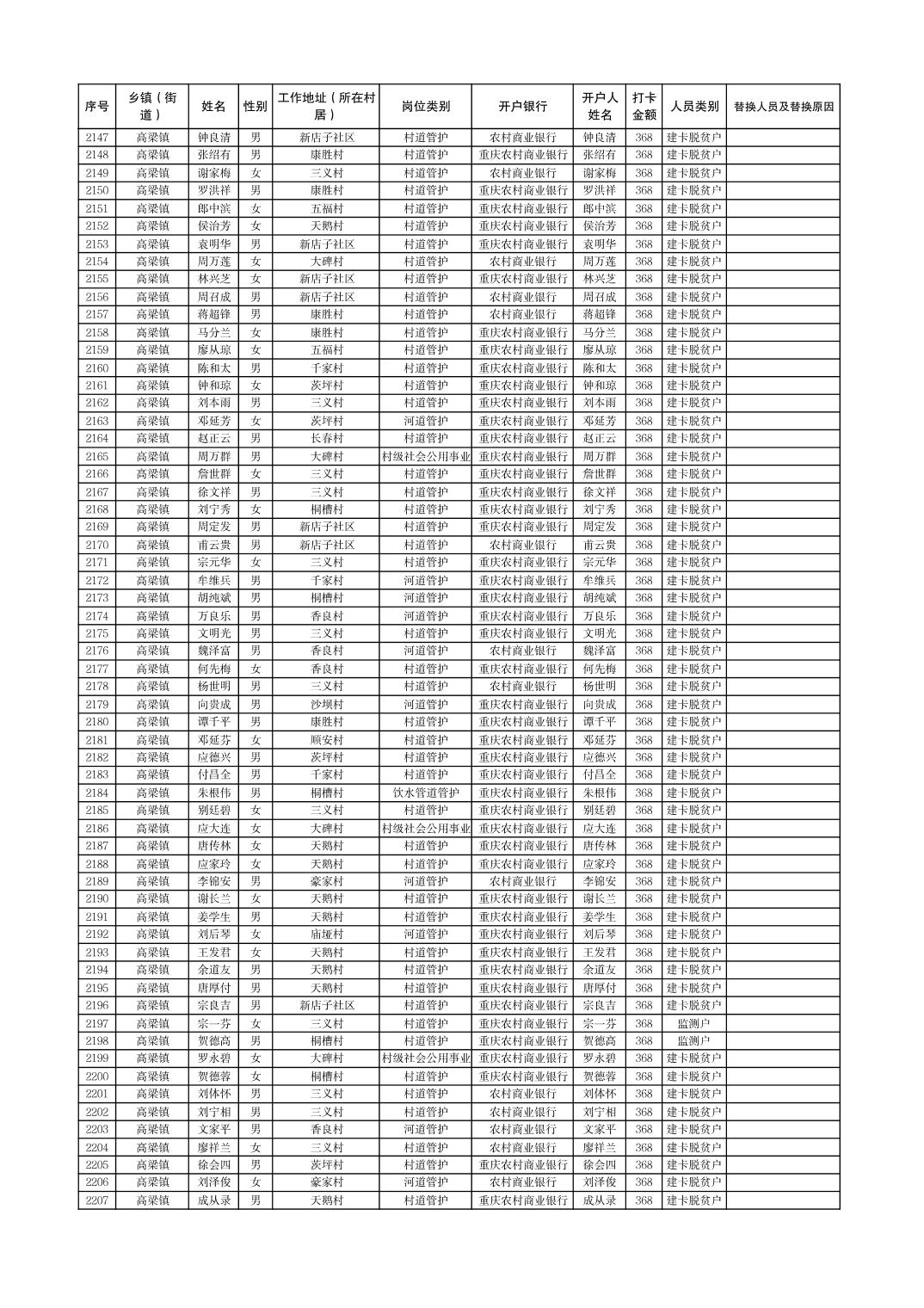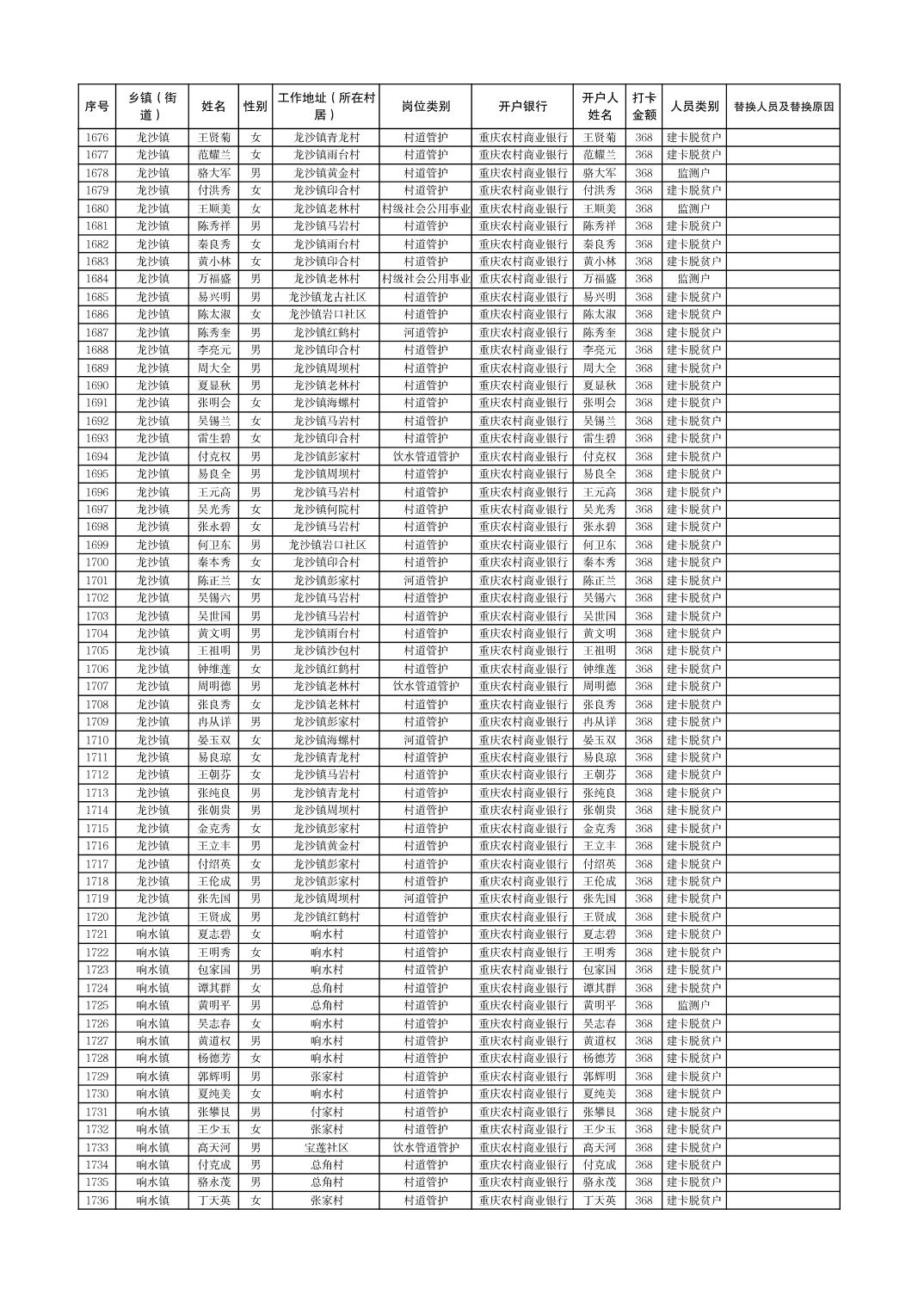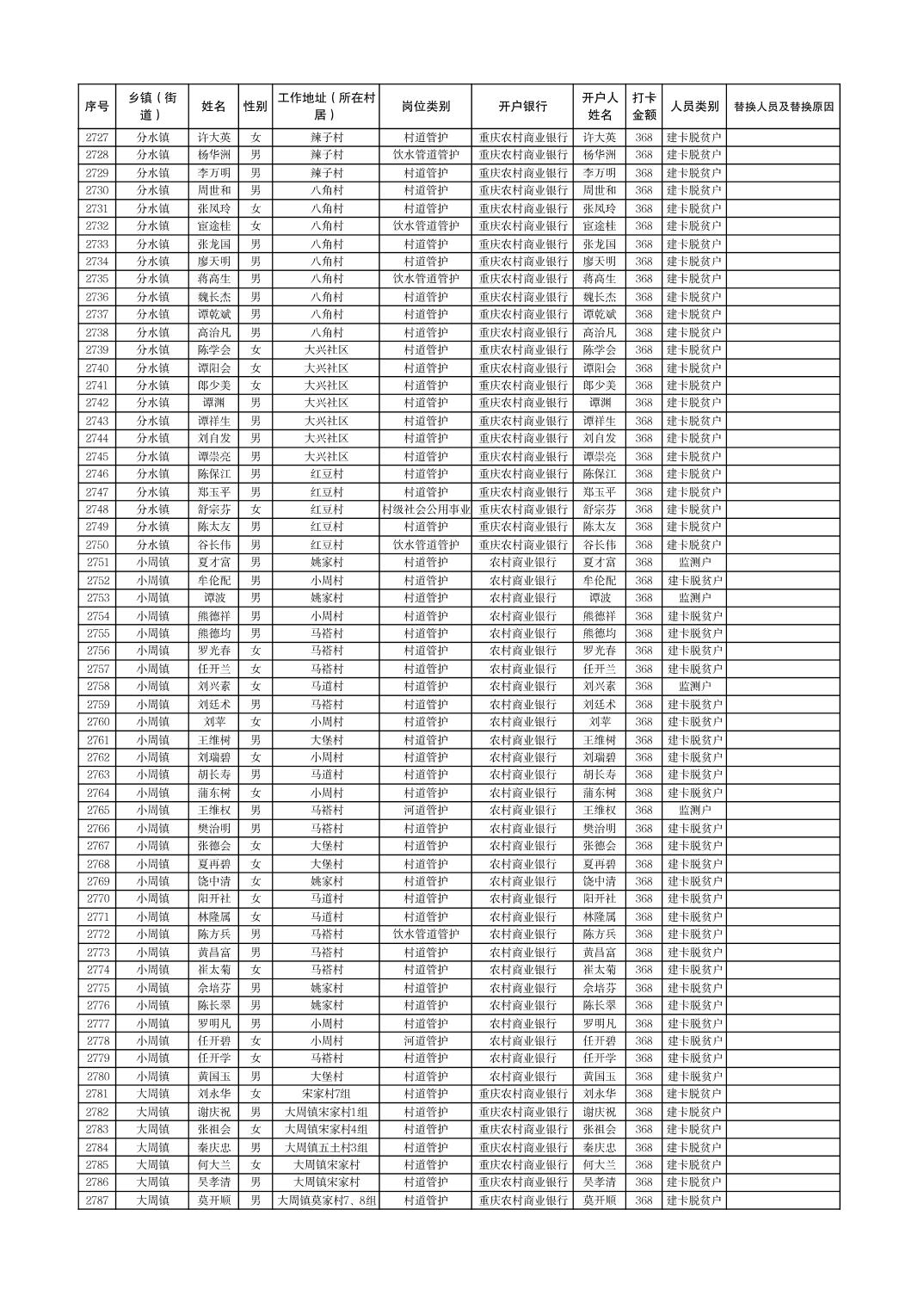 万州区脱贫人口非全日制公益性岗位聘用情况(7-12月)