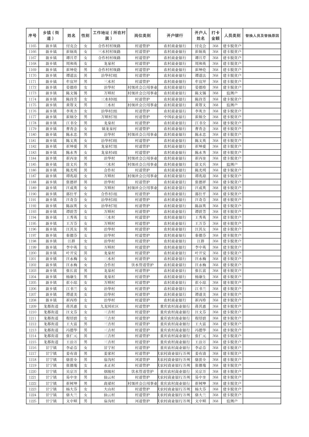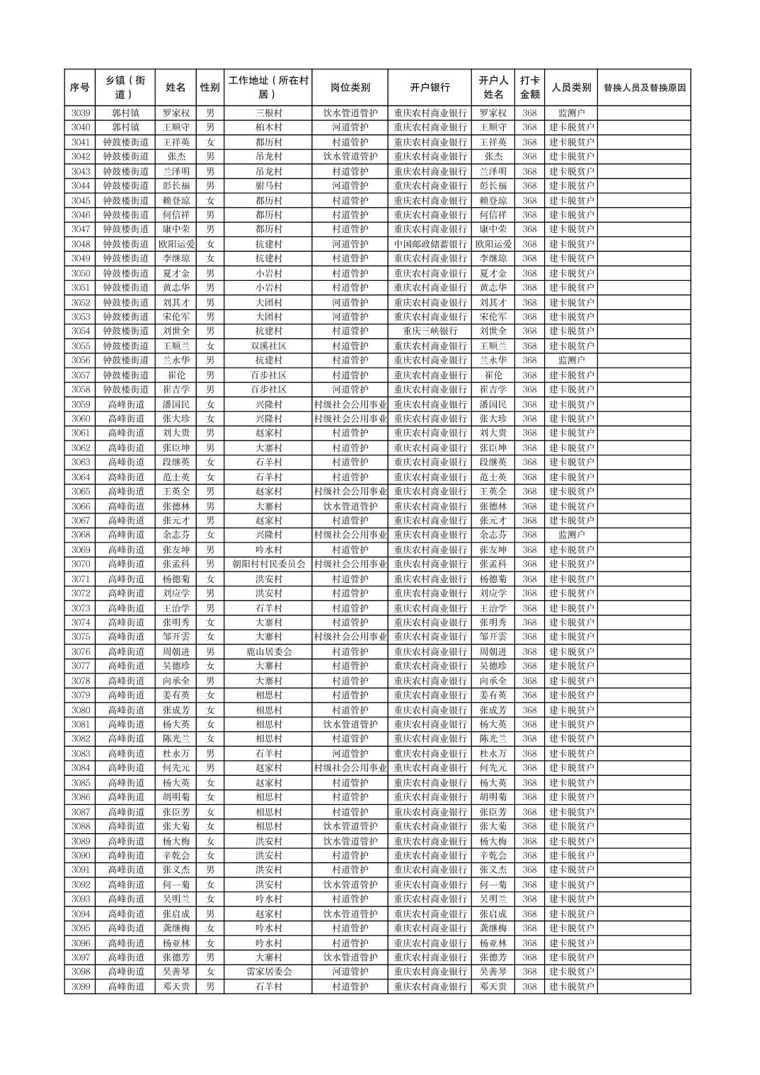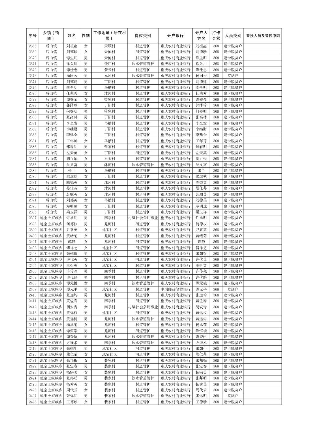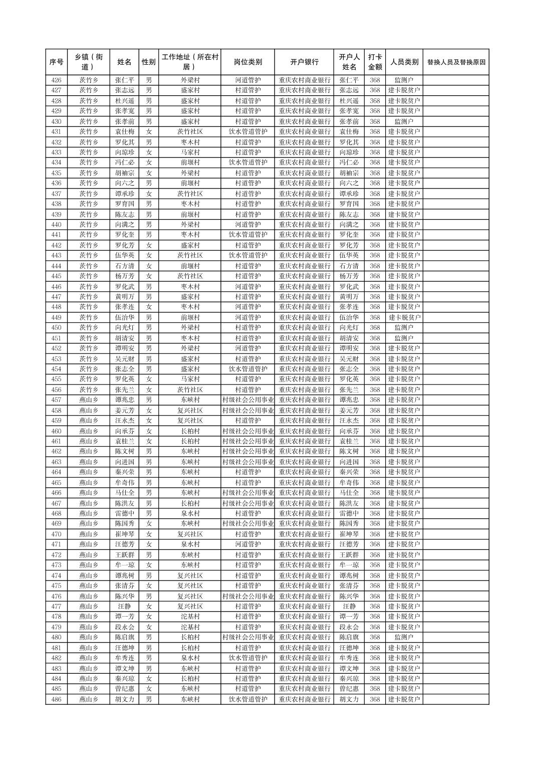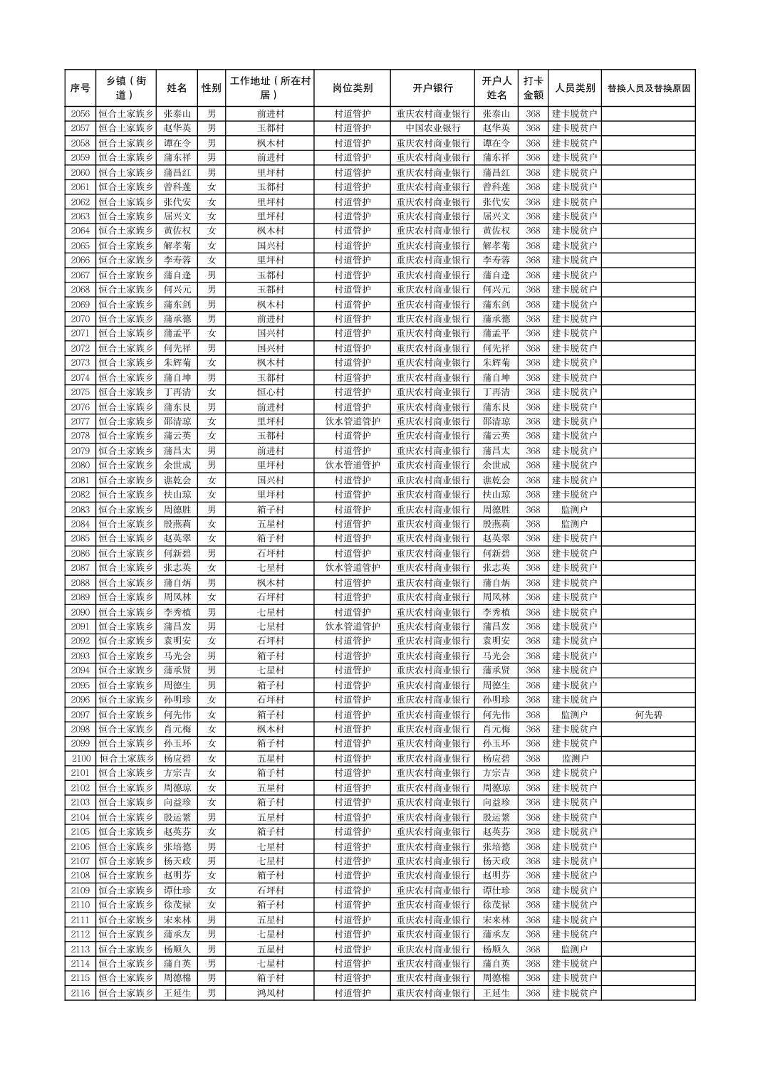 万州区脱贫人口非全日制公益性岗位聘用情况(7-12月)