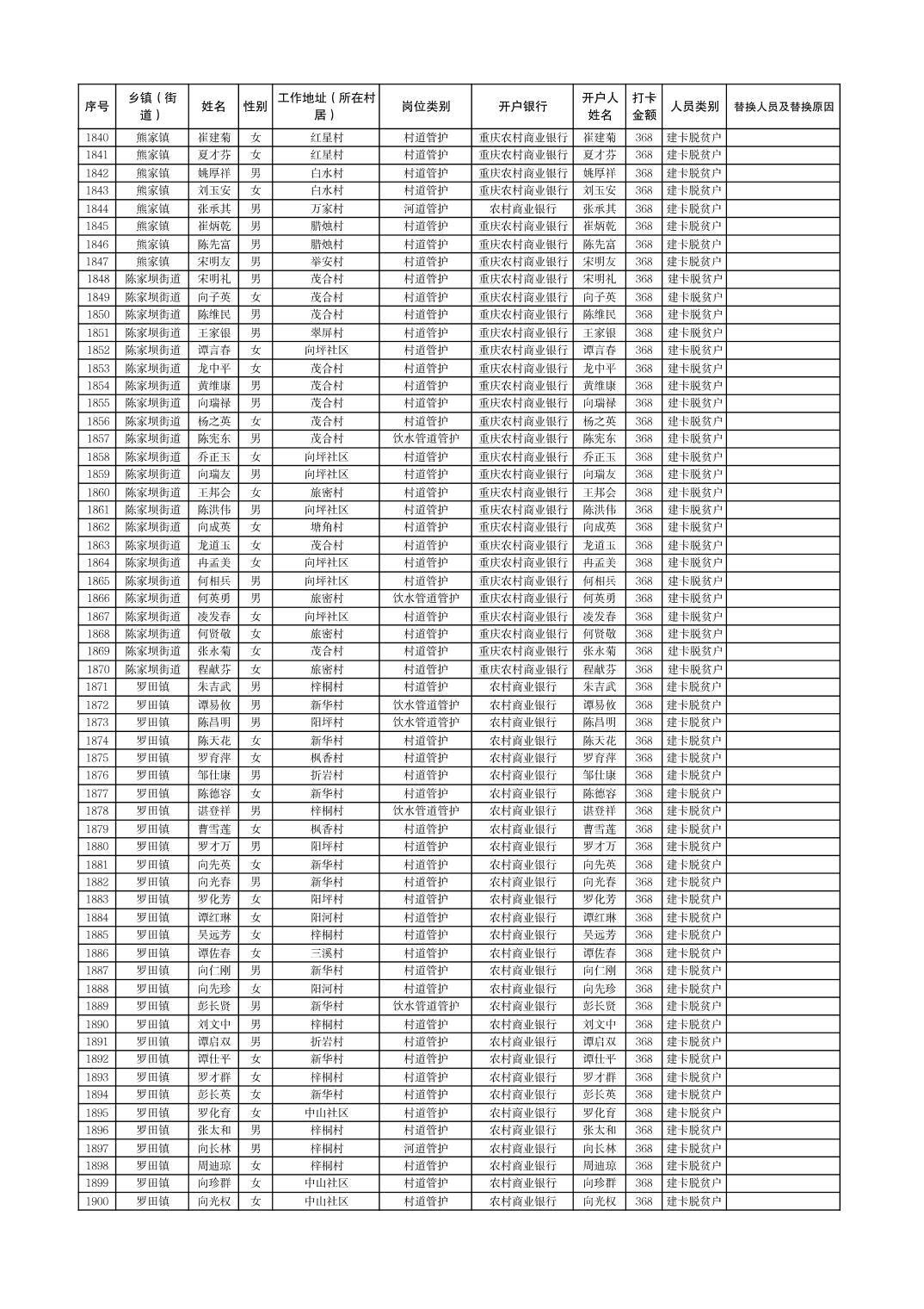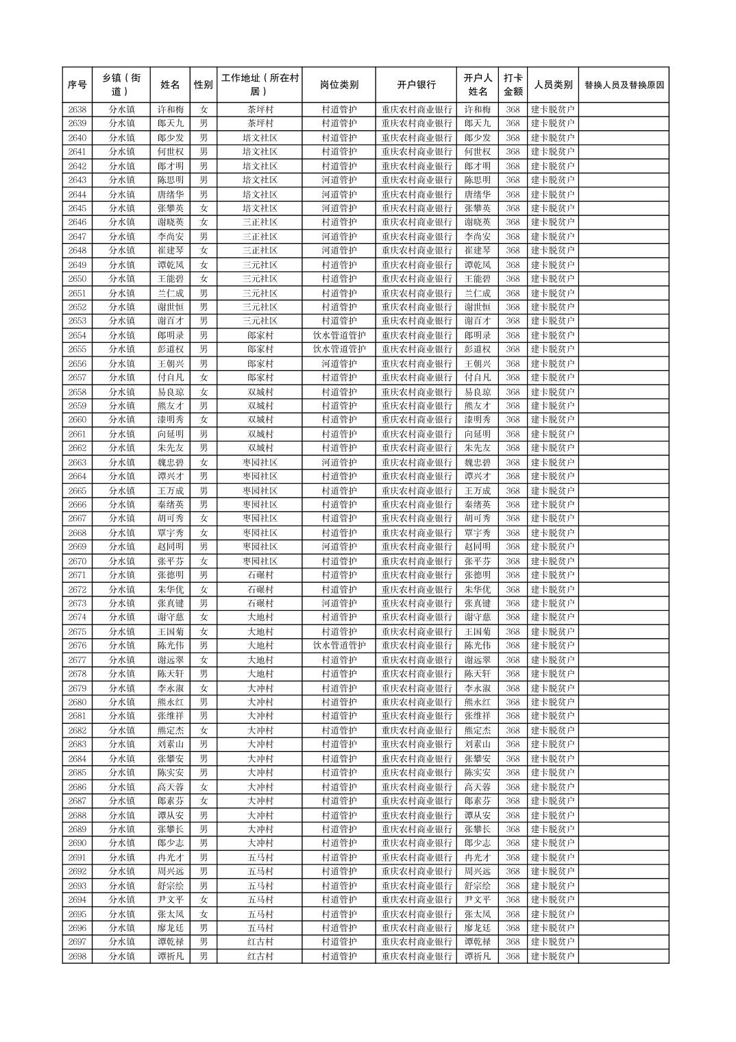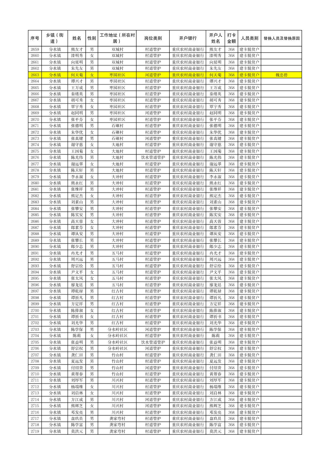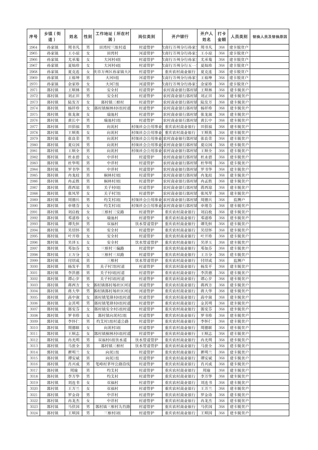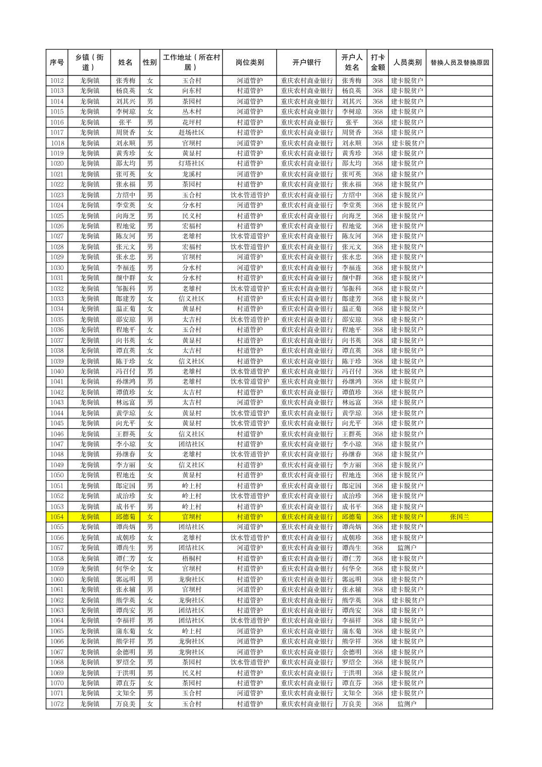 万州区脱贫人口非全日制公益性岗位聘用情况(7-12月)