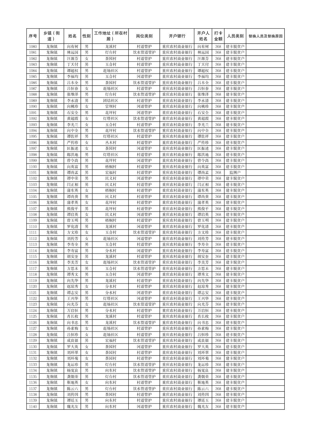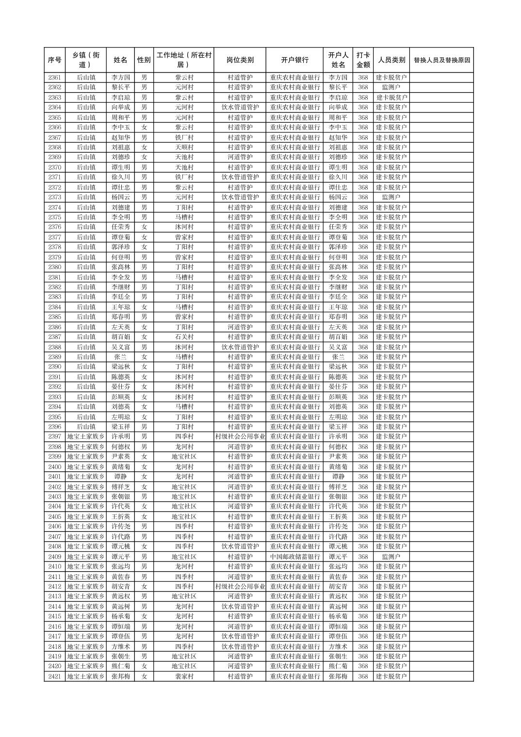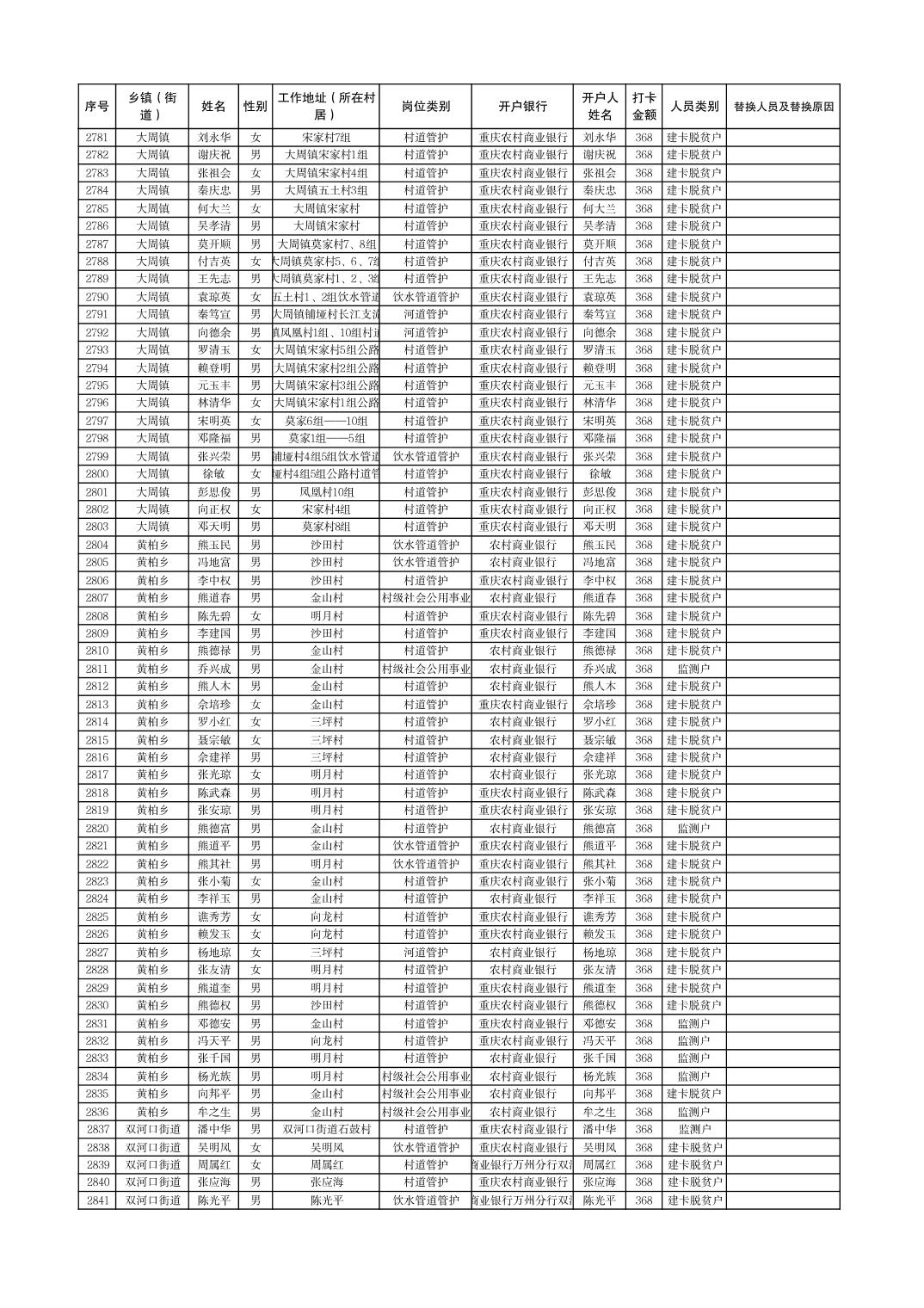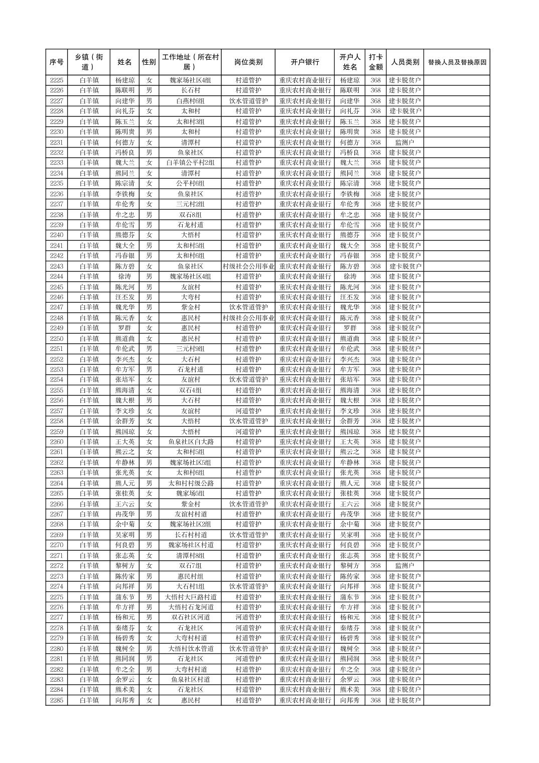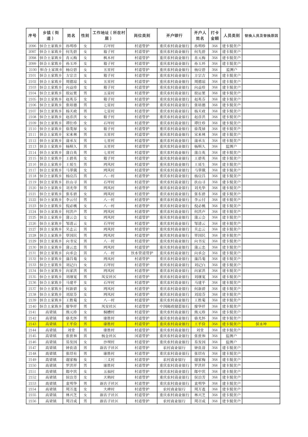 万州区脱贫人口非全日制公益性岗位聘用情况(7-12月)
