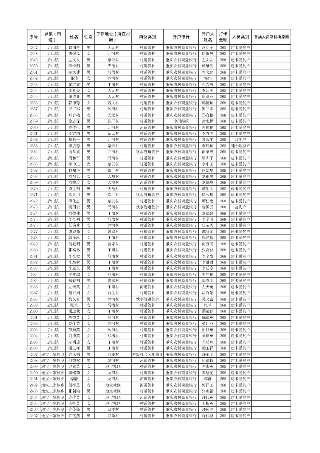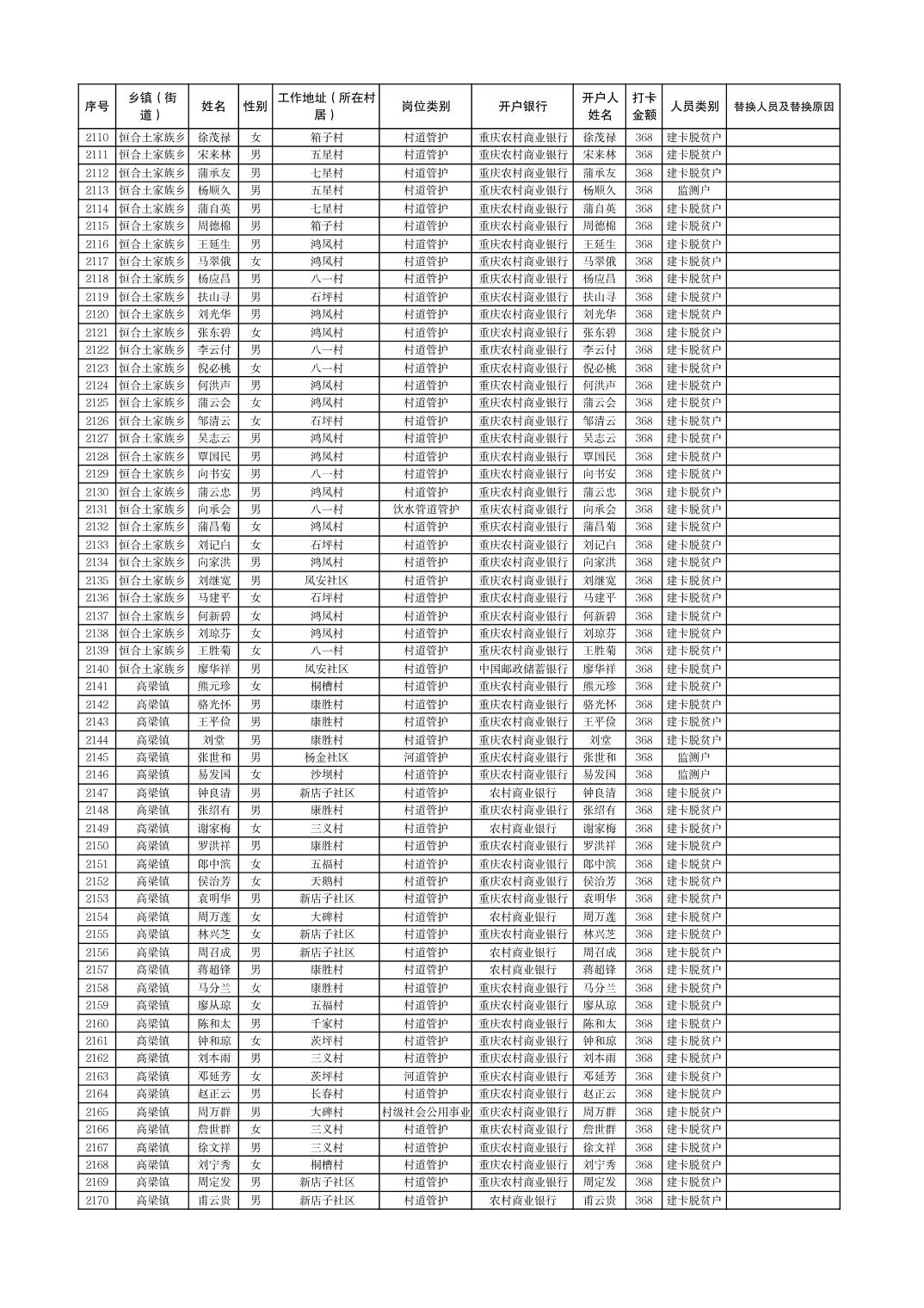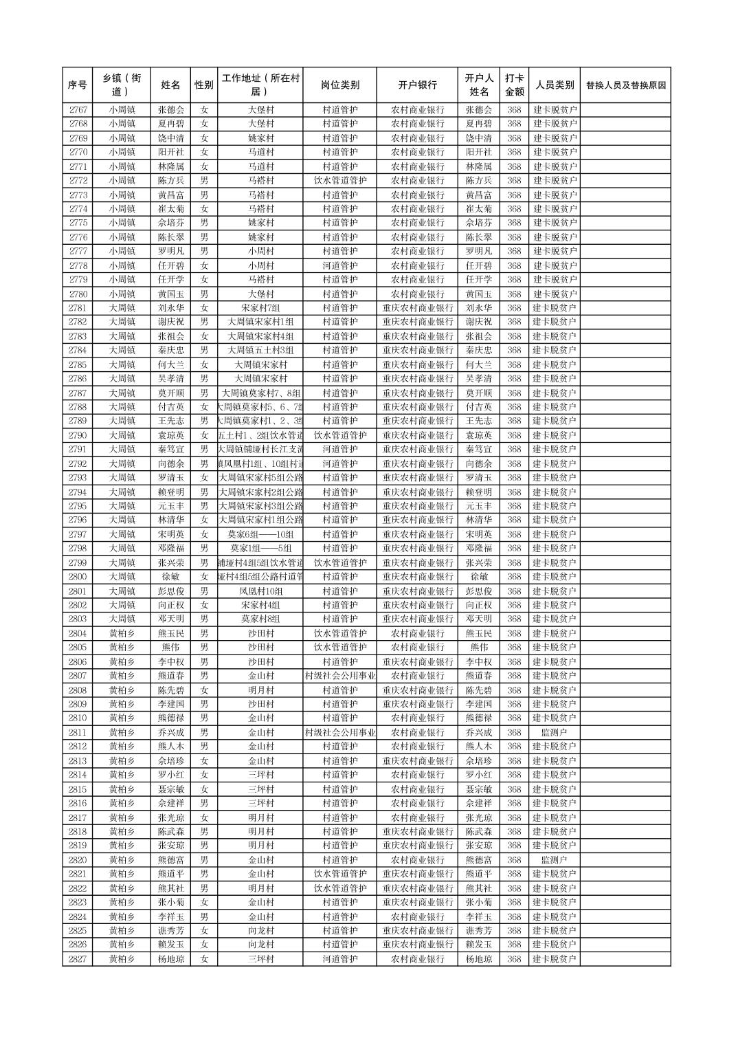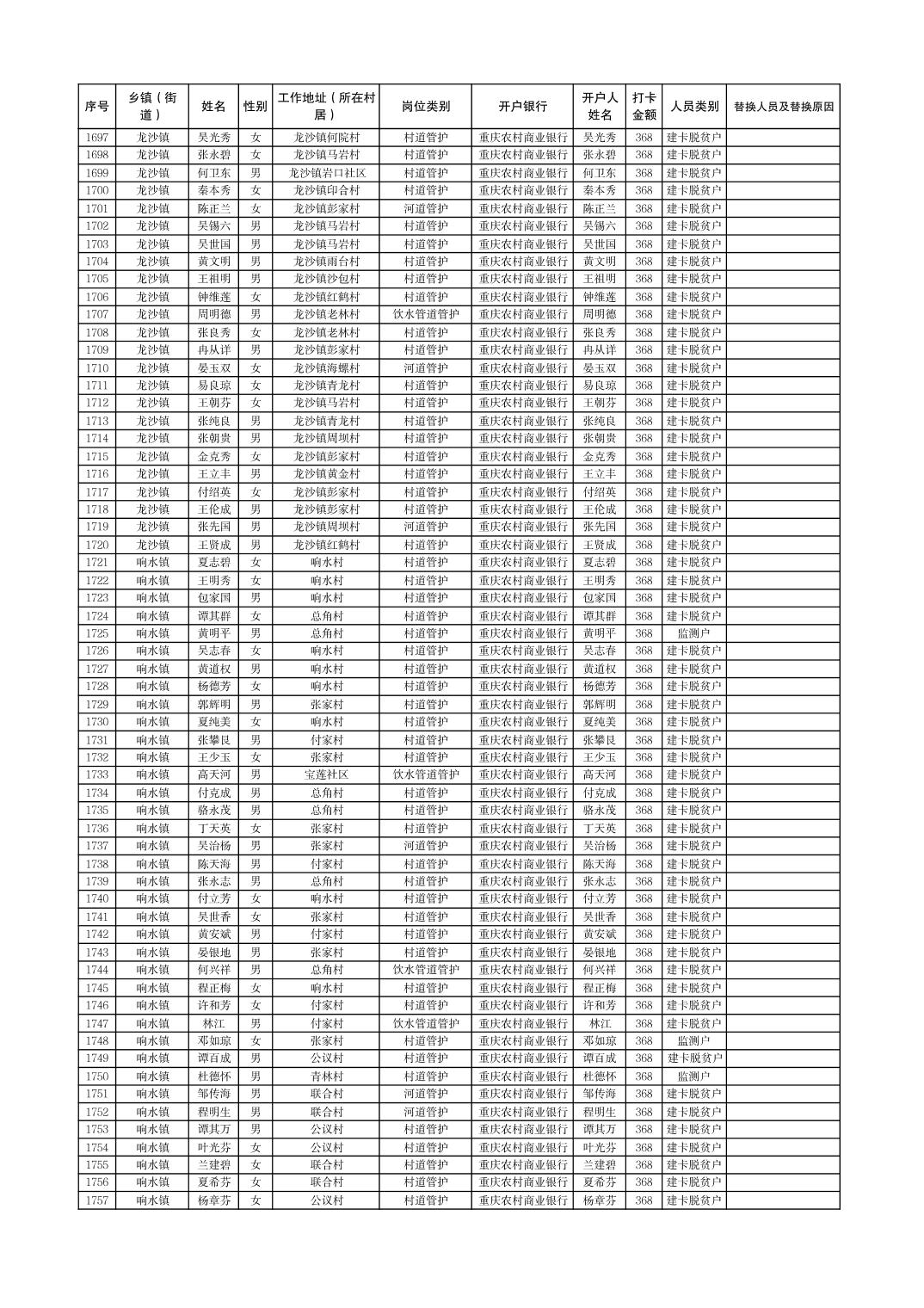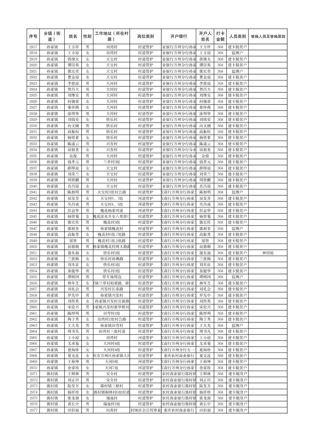 万州区脱贫人口非全日制公益性岗位聘用情况(7-12月)