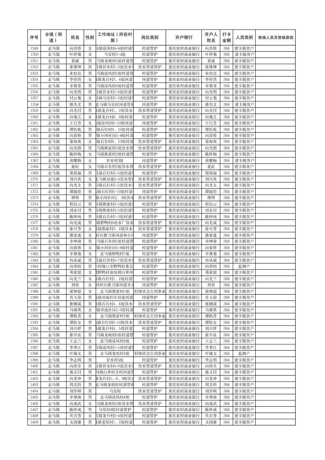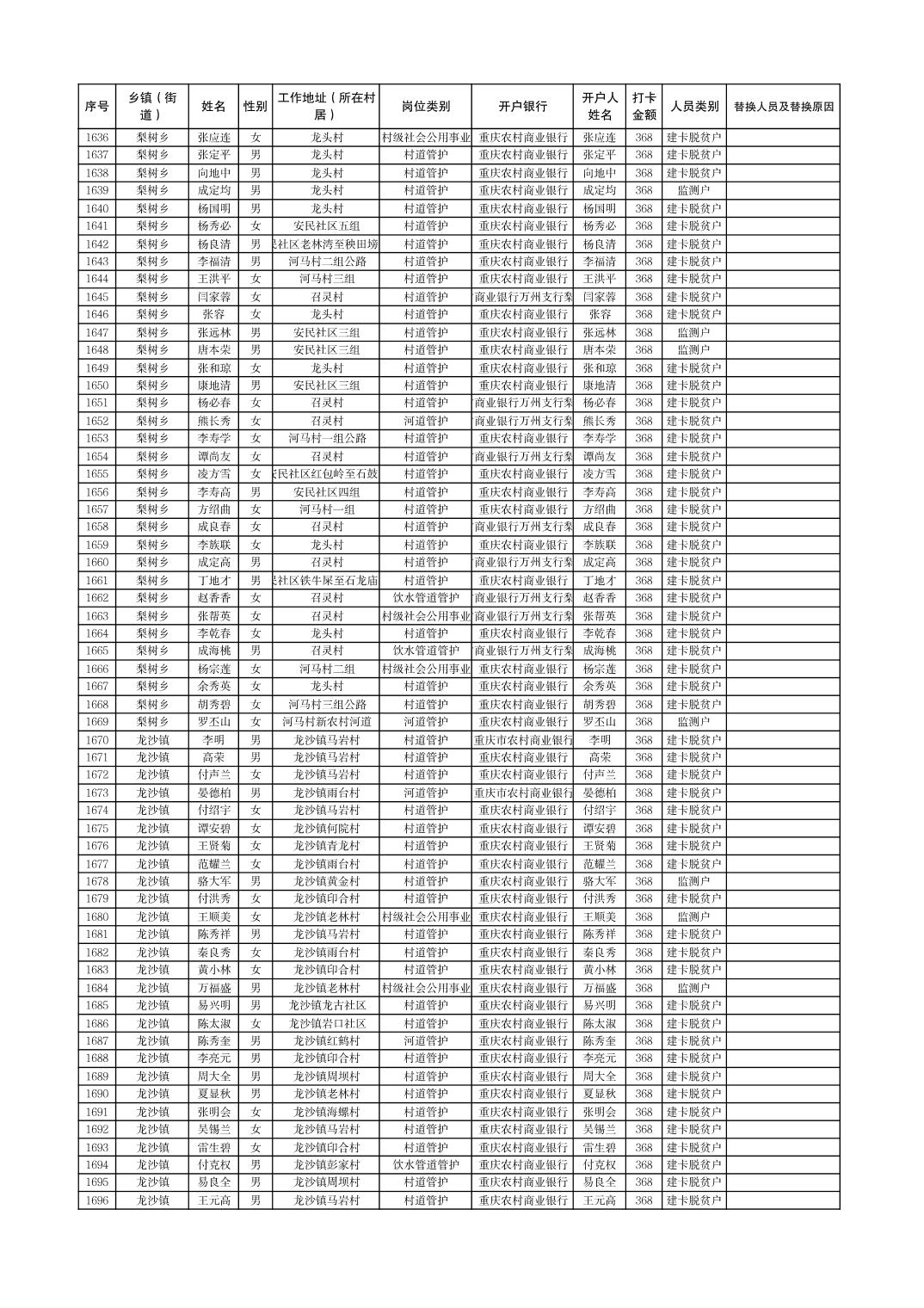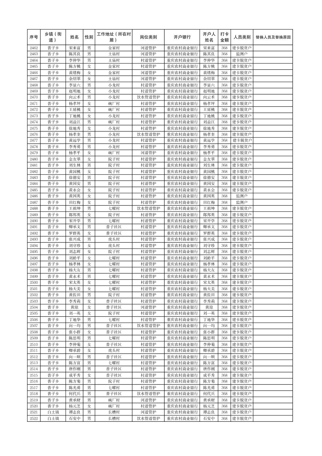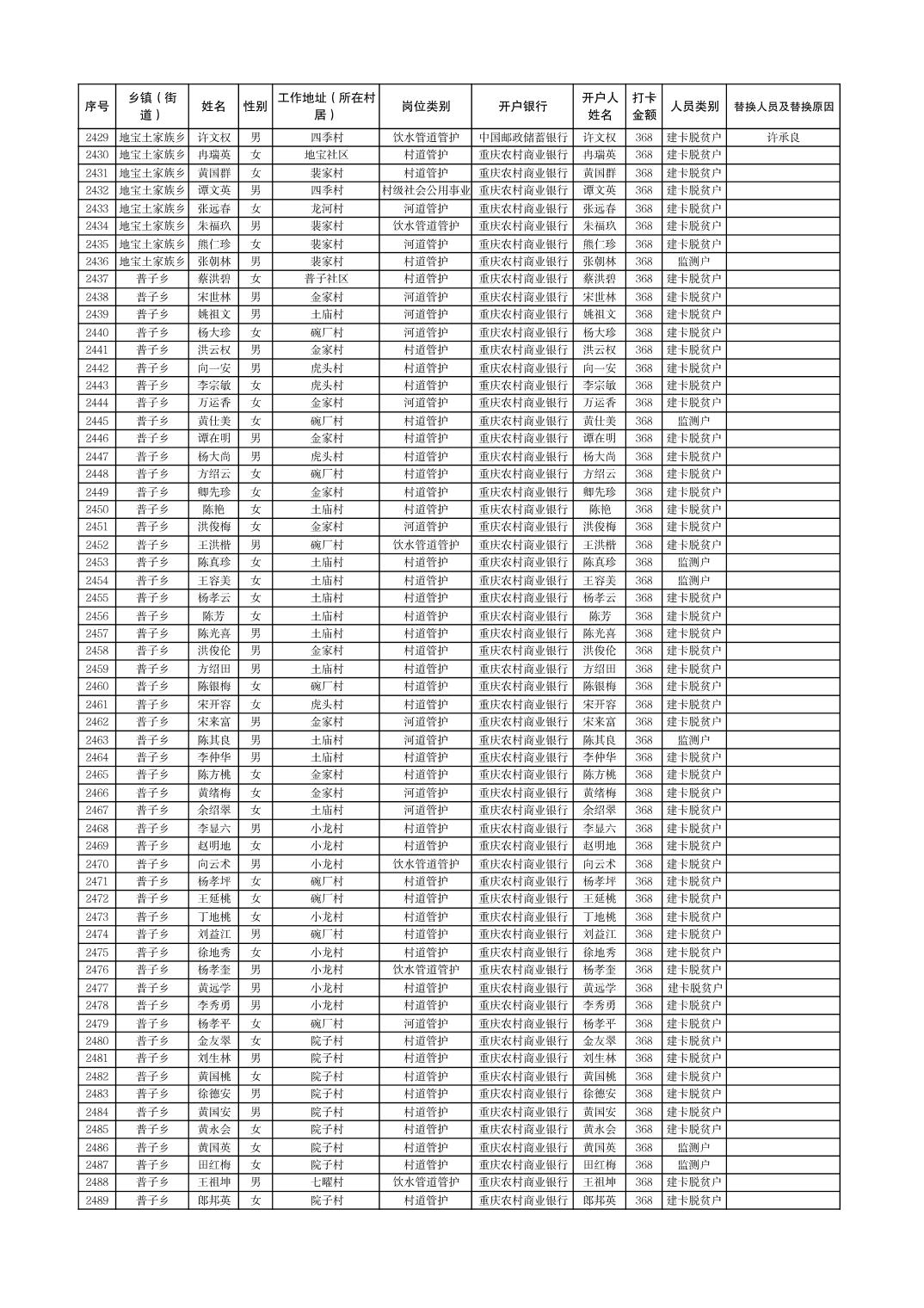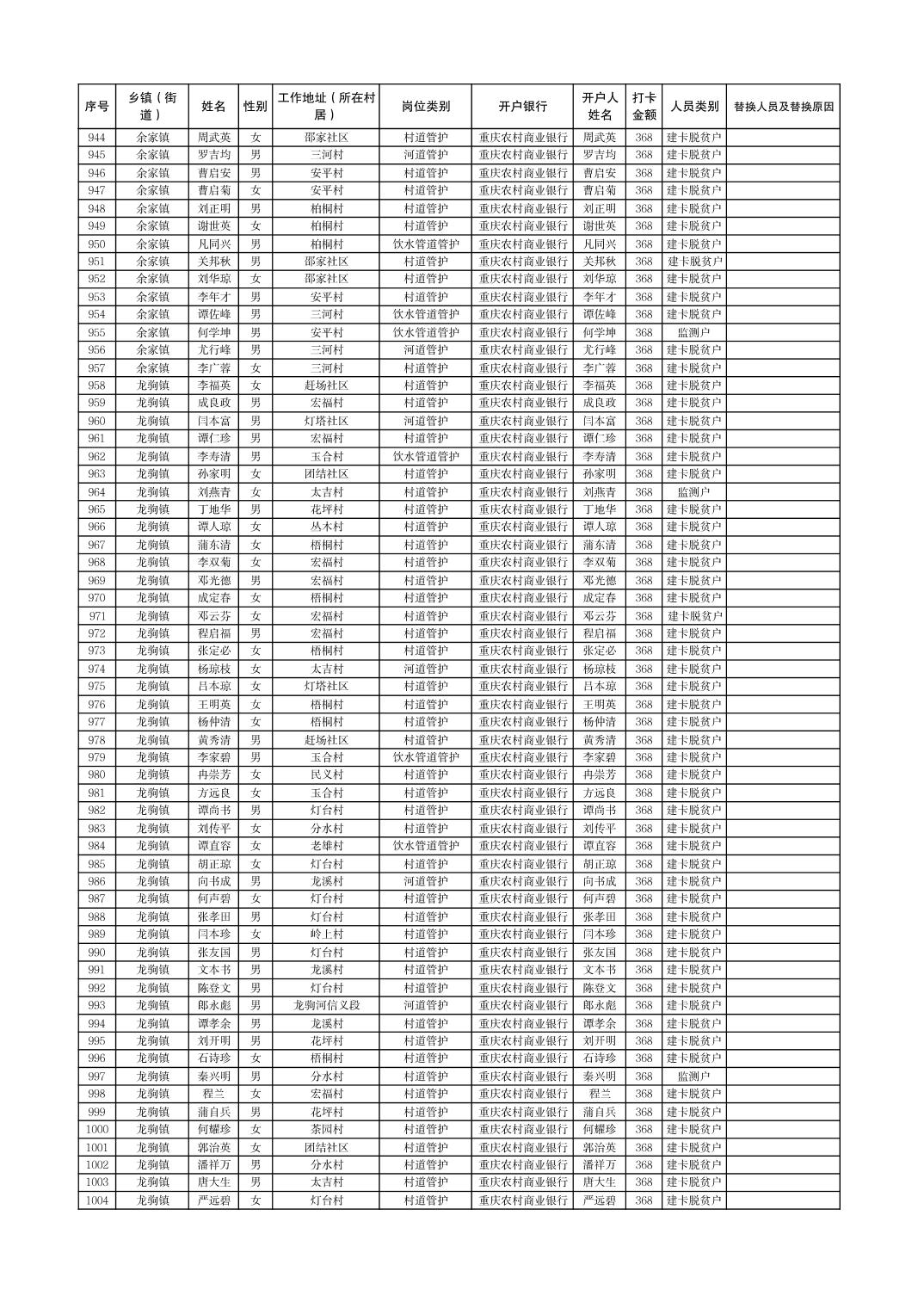 万州区脱贫人口非全日制公益性岗位聘用情况(7-12月)