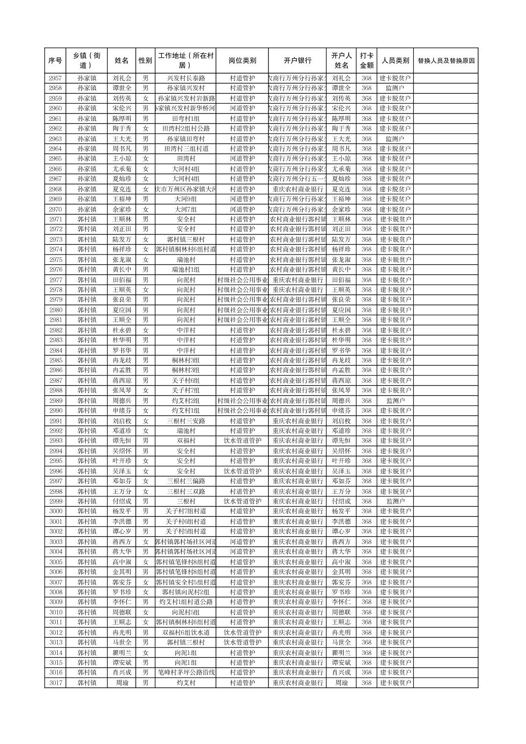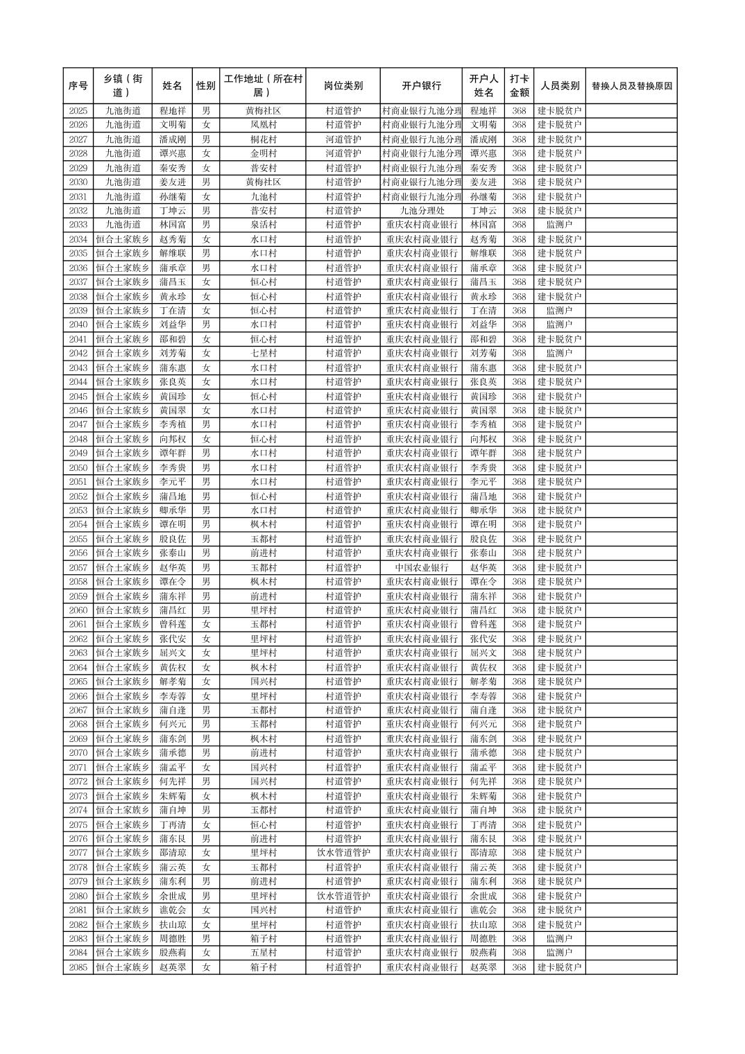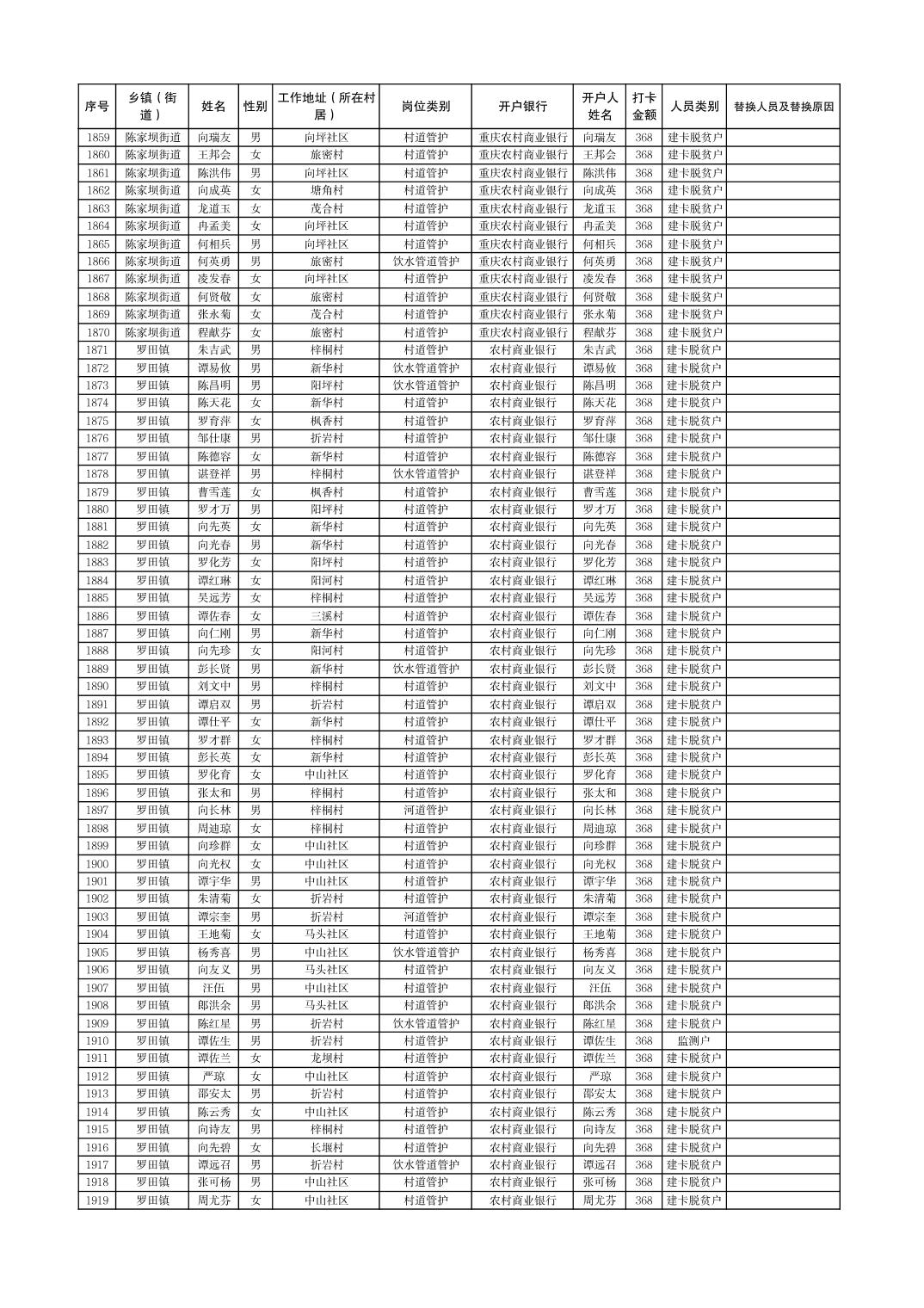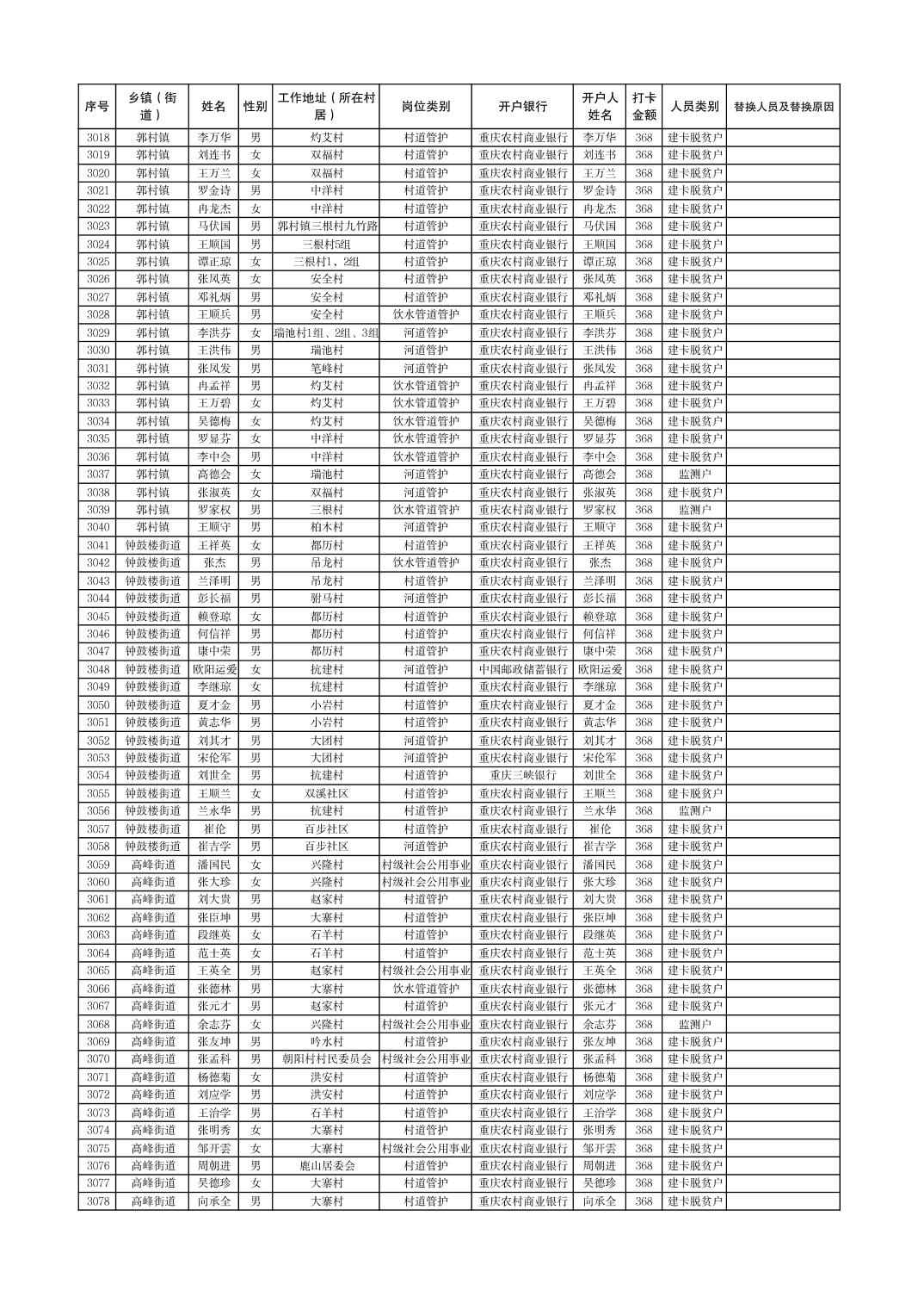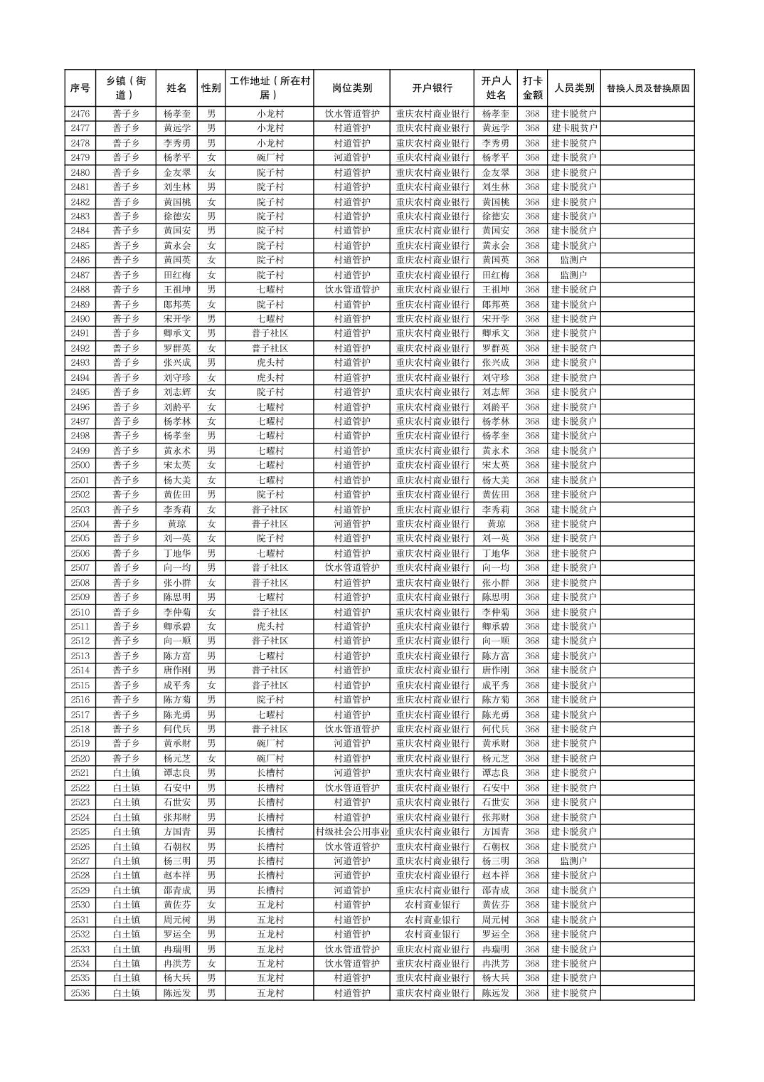 万州区脱贫人口非全日制公益性岗位聘用情况(7-12月)