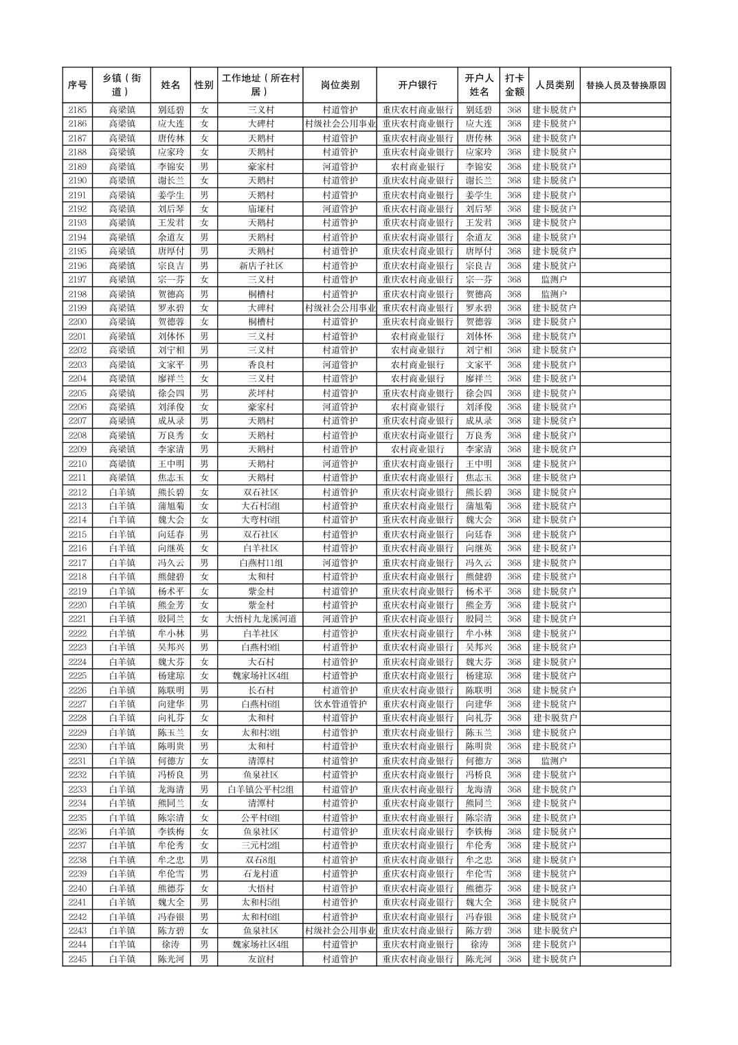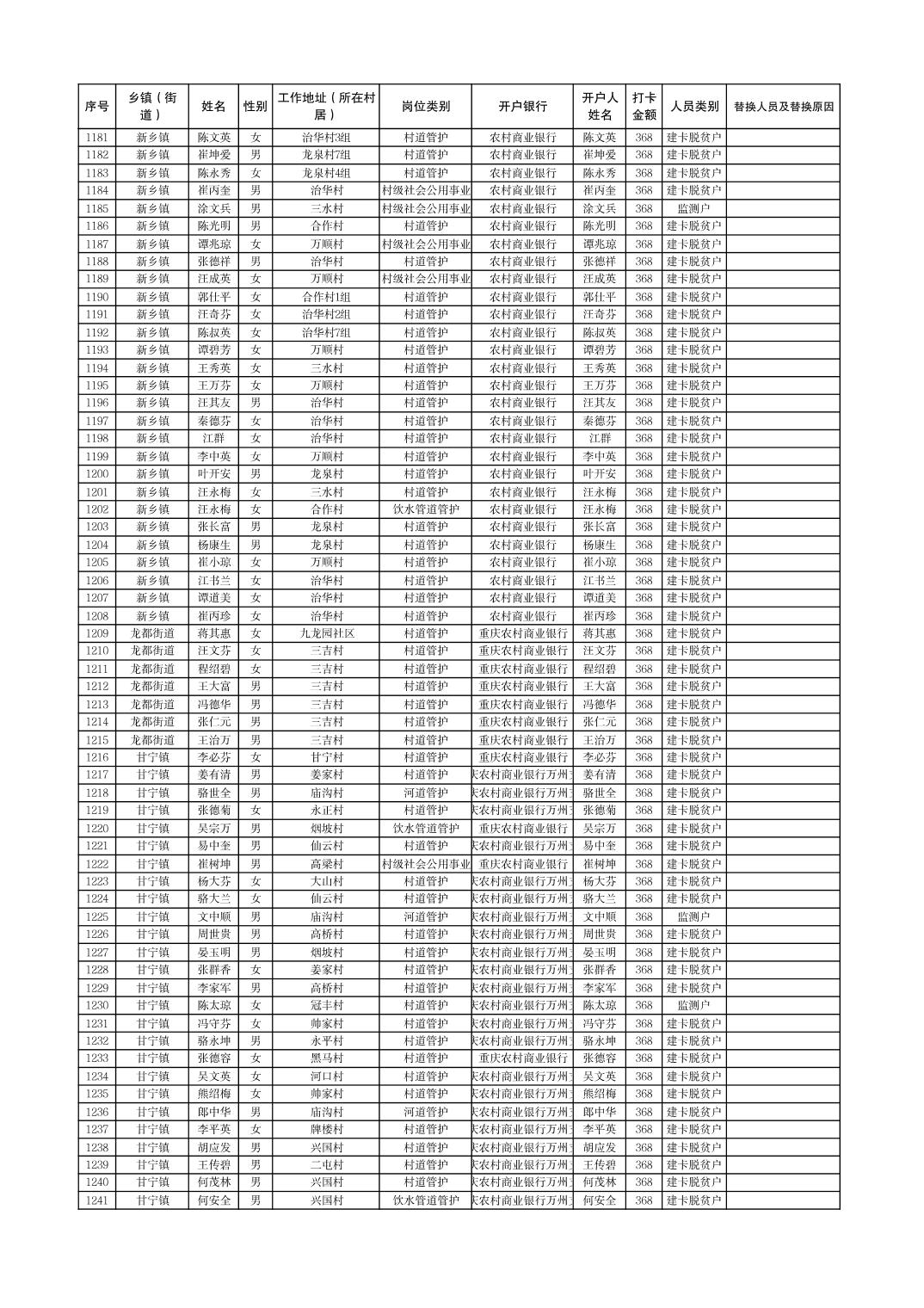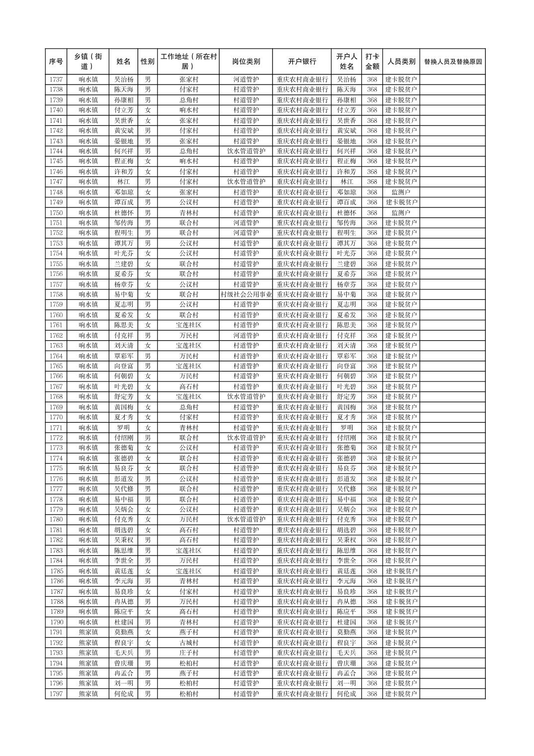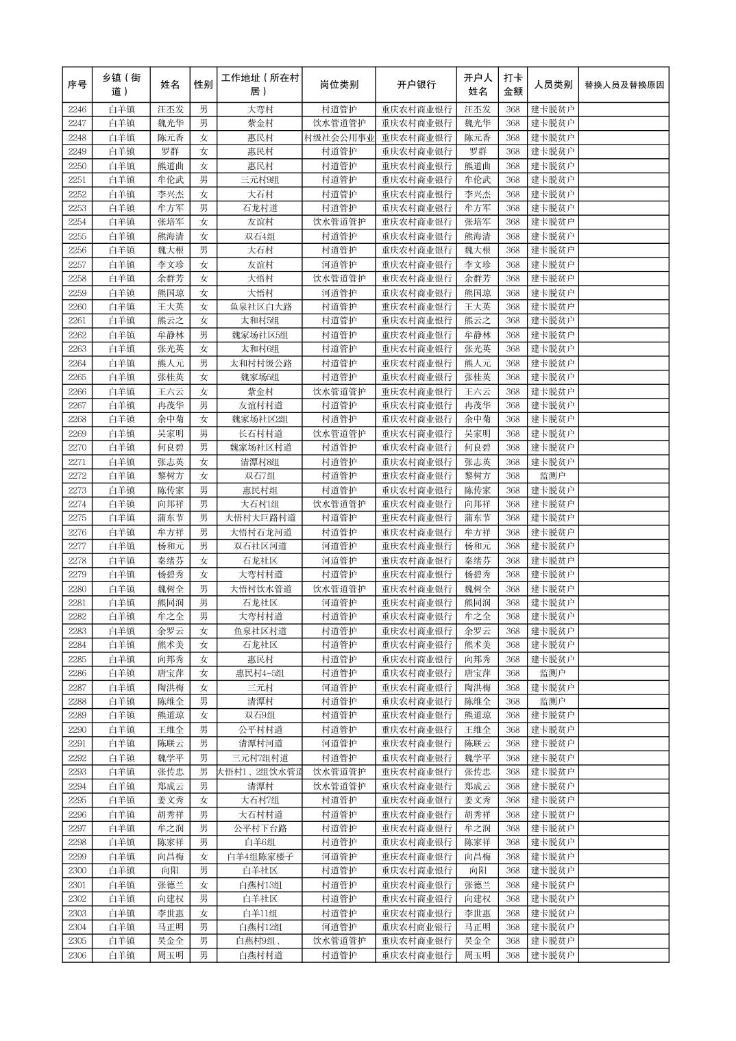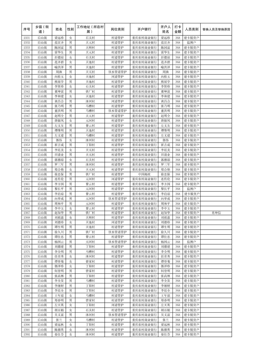 万州区脱贫人口非全日制公益性岗位聘用情况(7-12月)