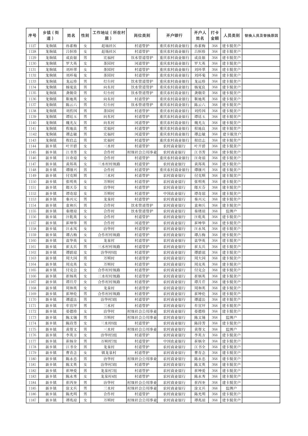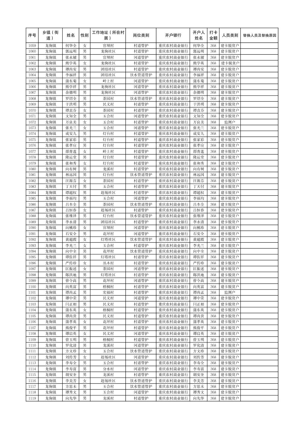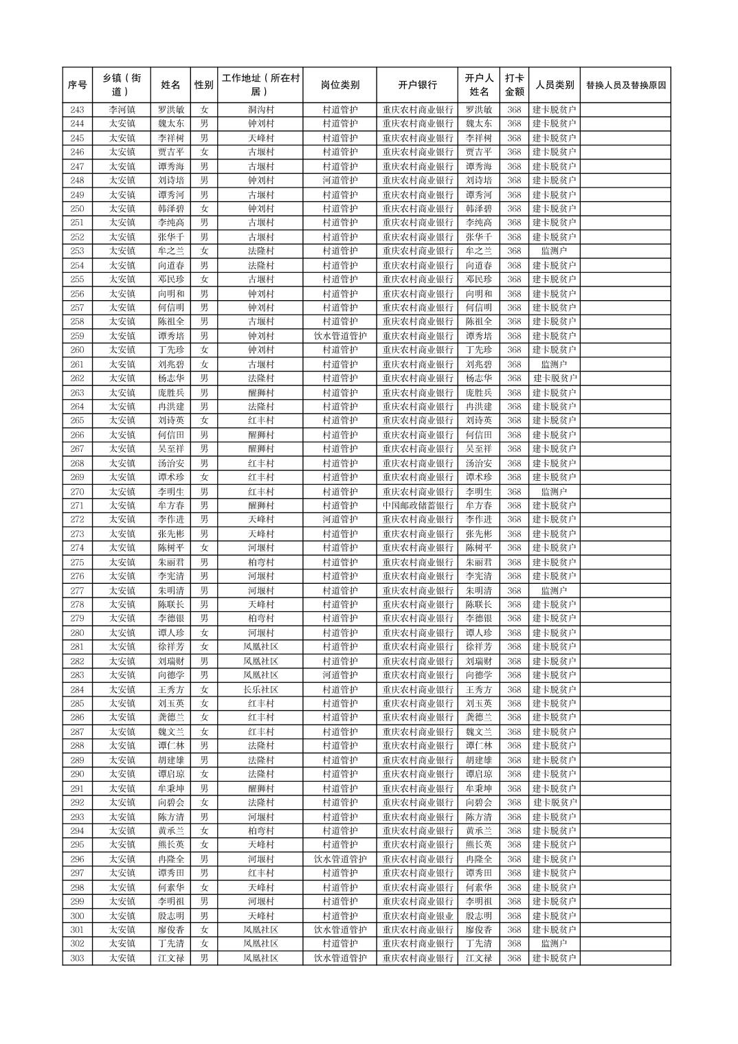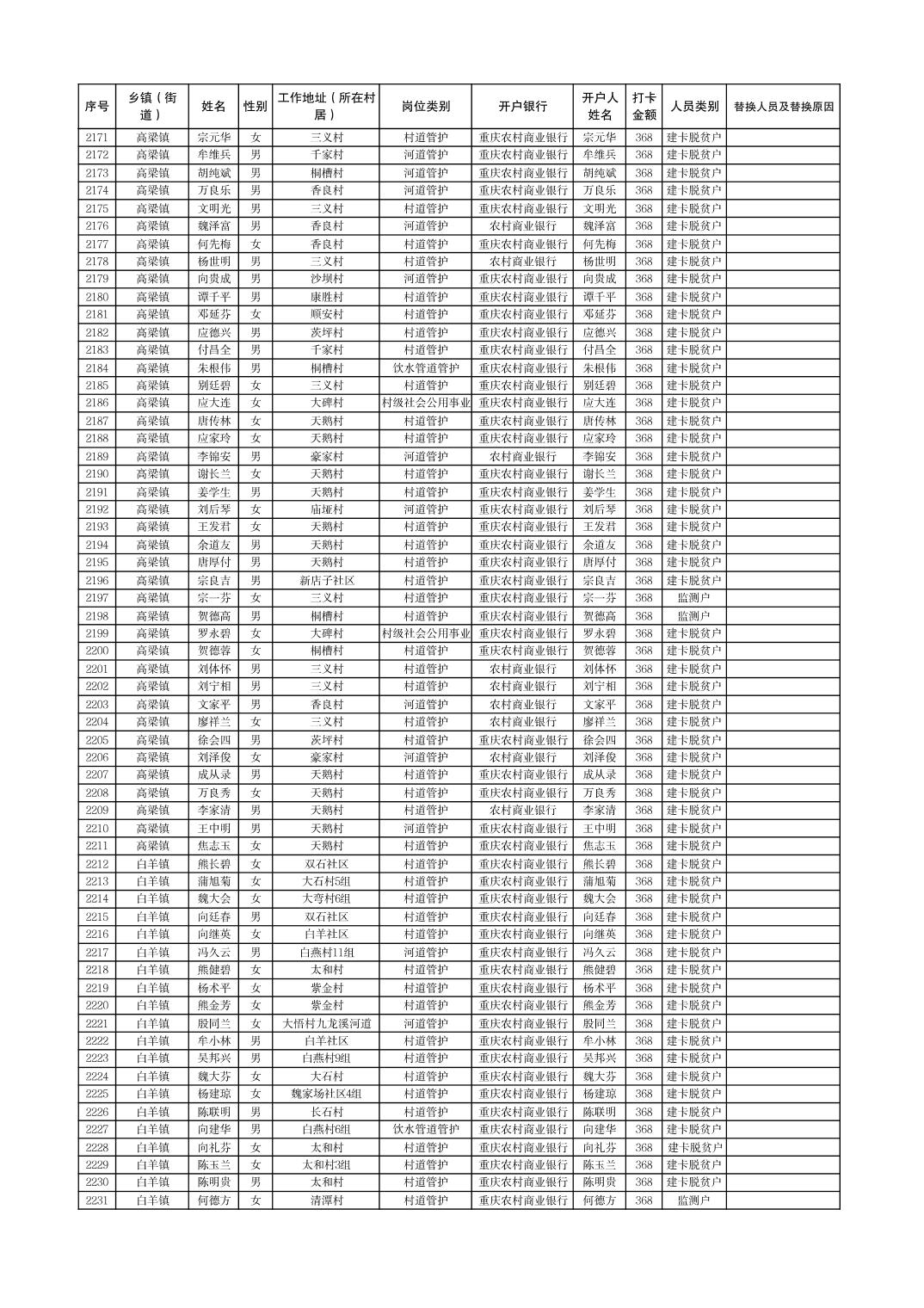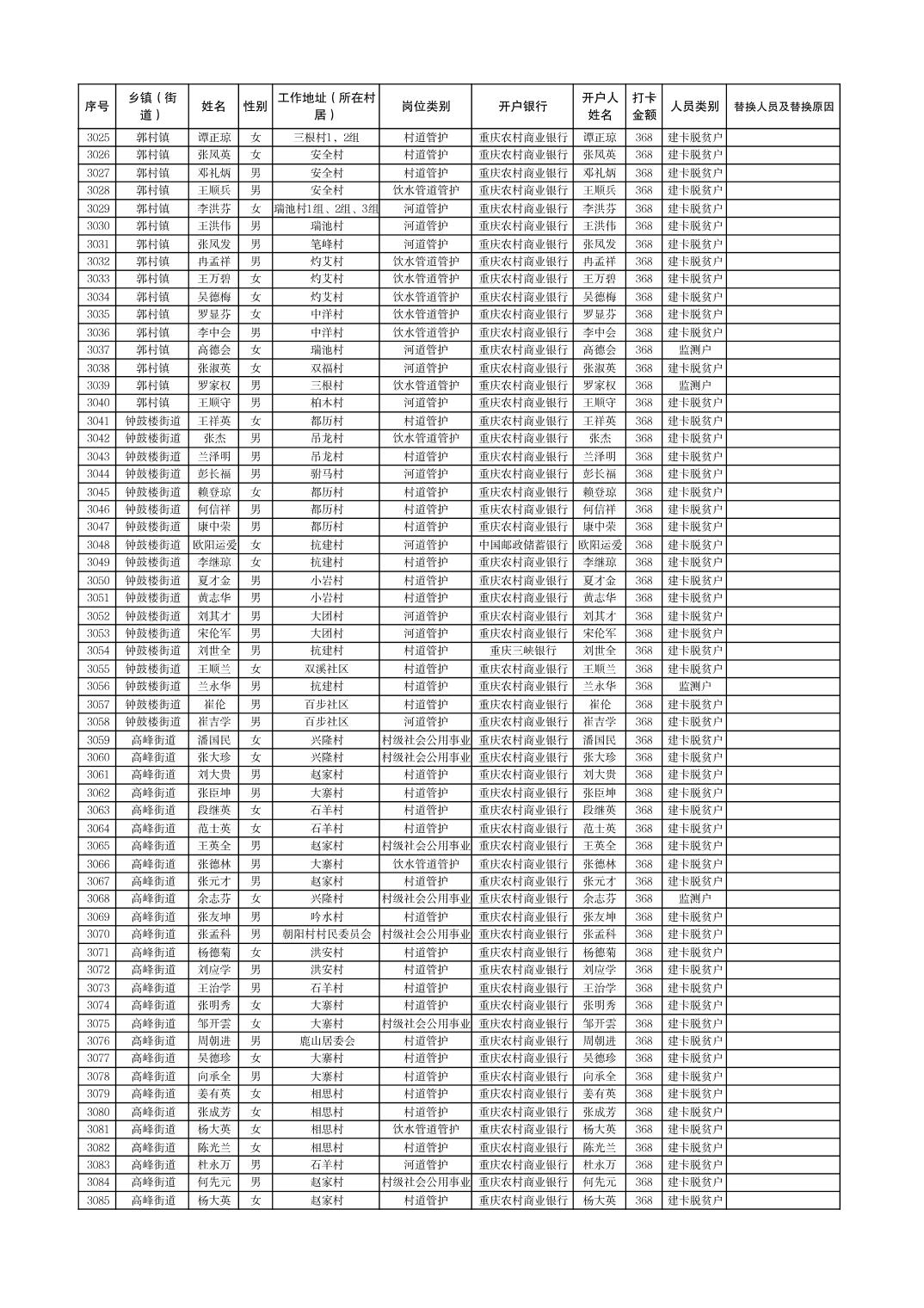 万州区脱贫人口非全日制公益性岗位聘用情况(7-12月)