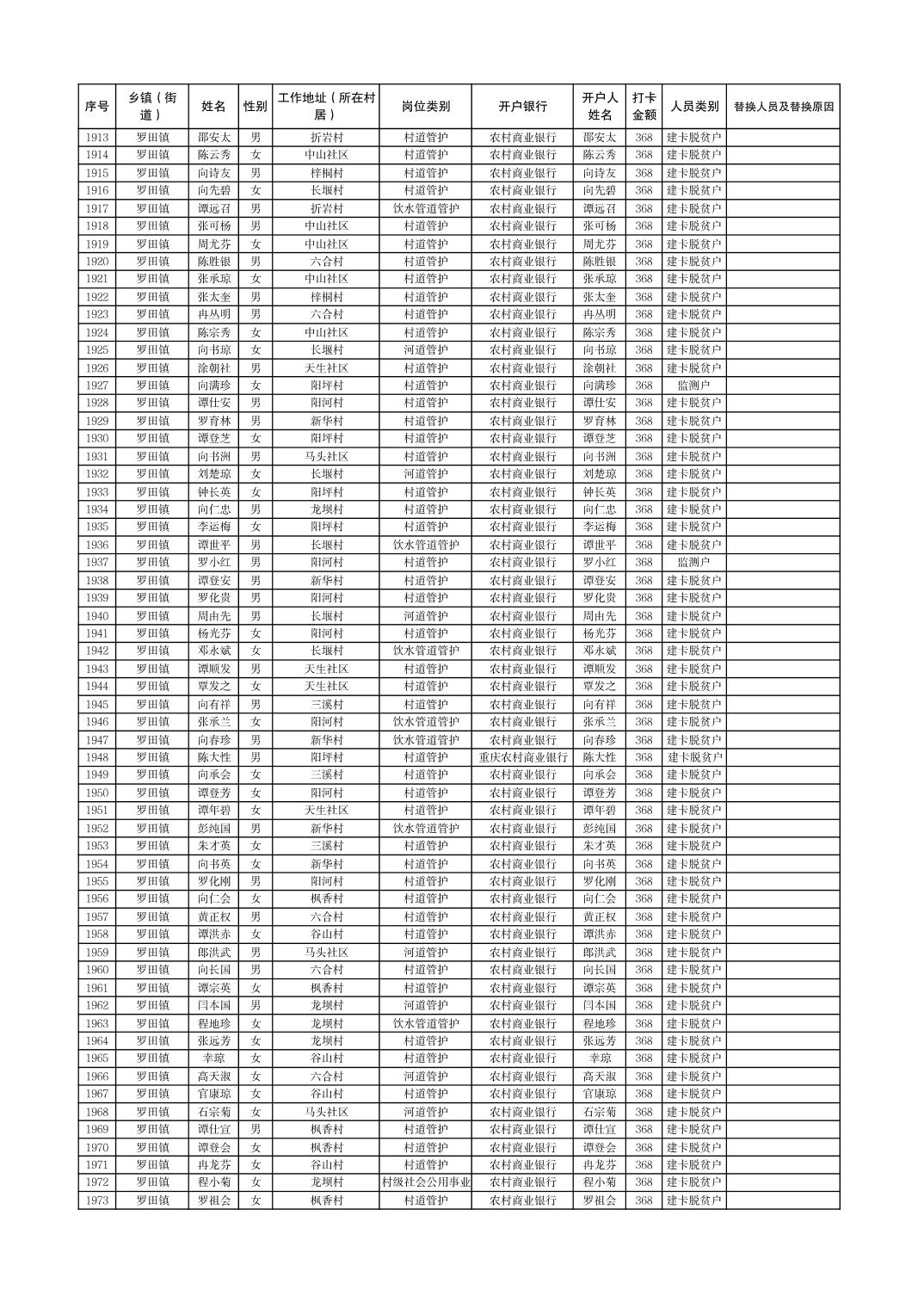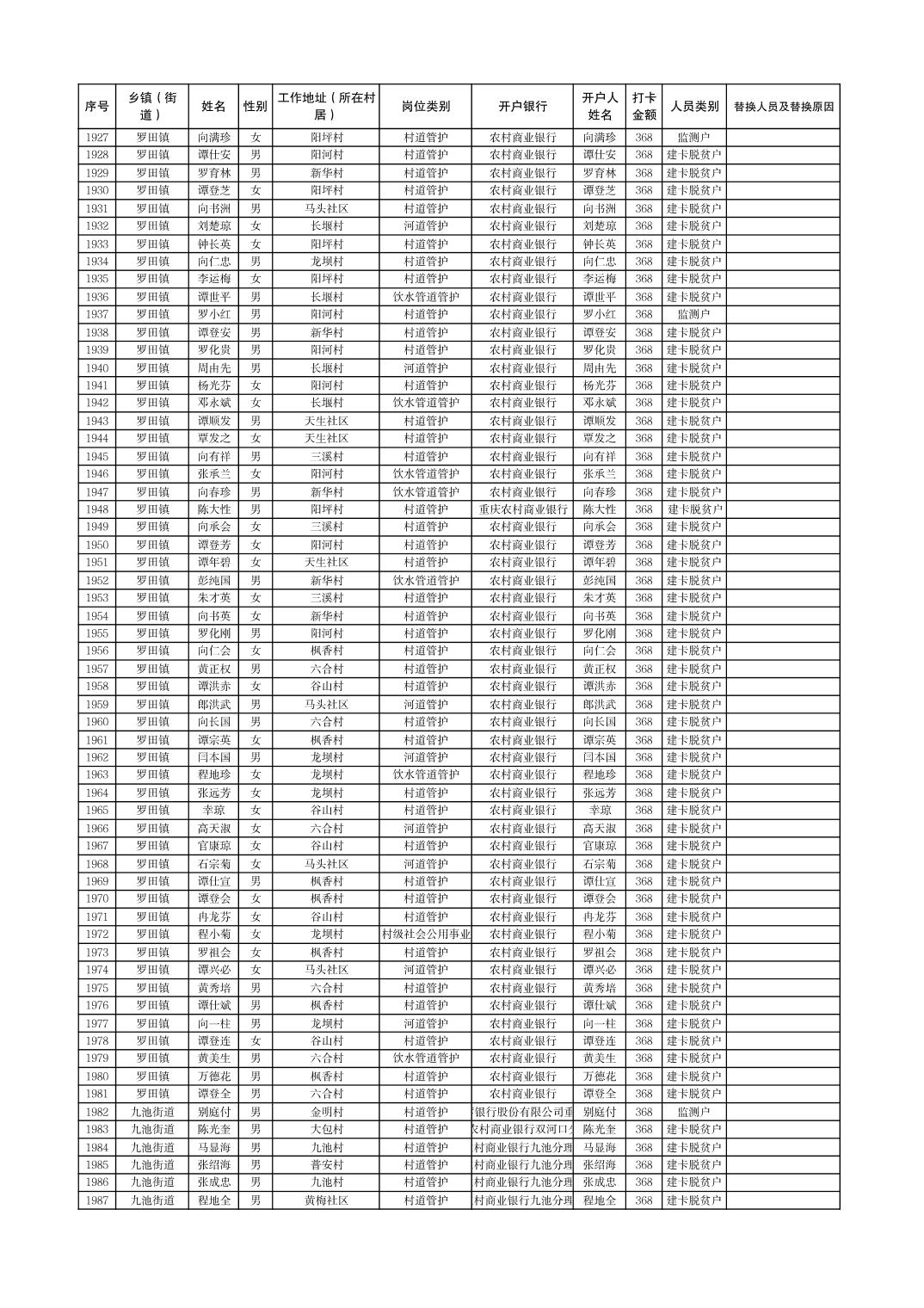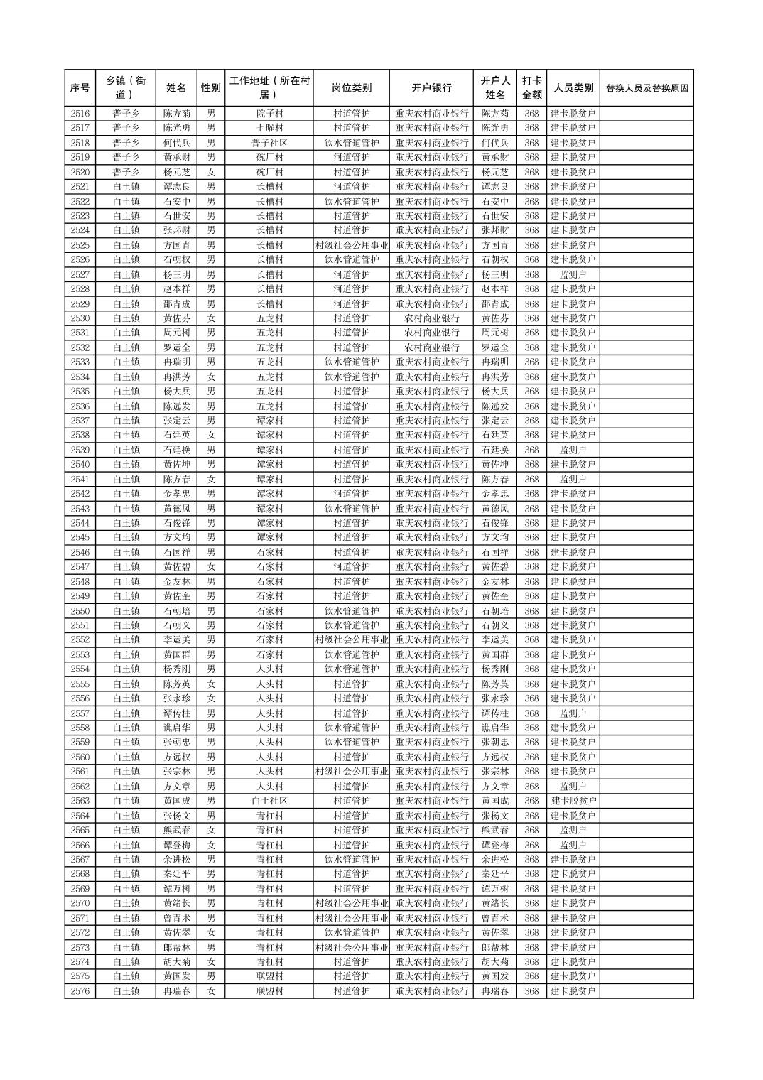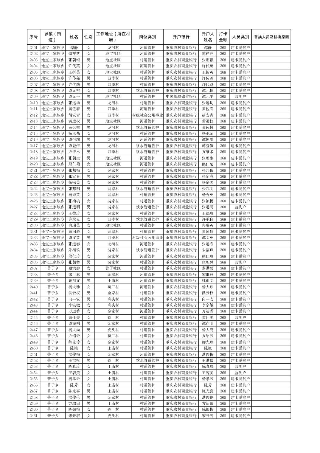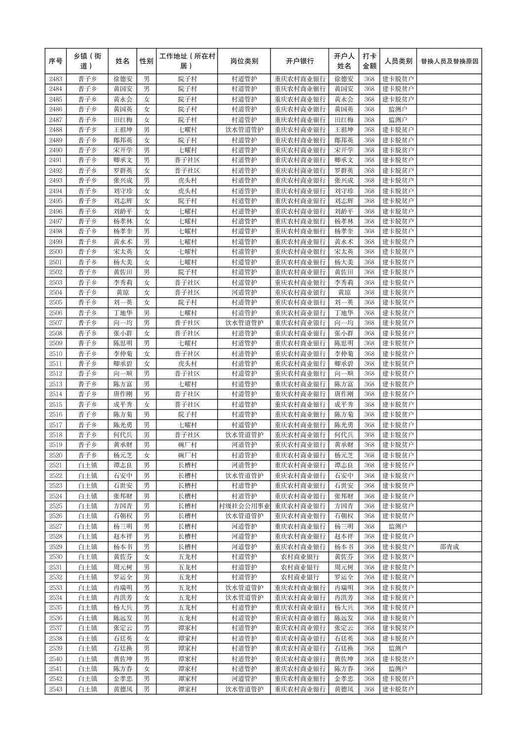 万州区脱贫人口非全日制公益性岗位聘用情况(7-12月)