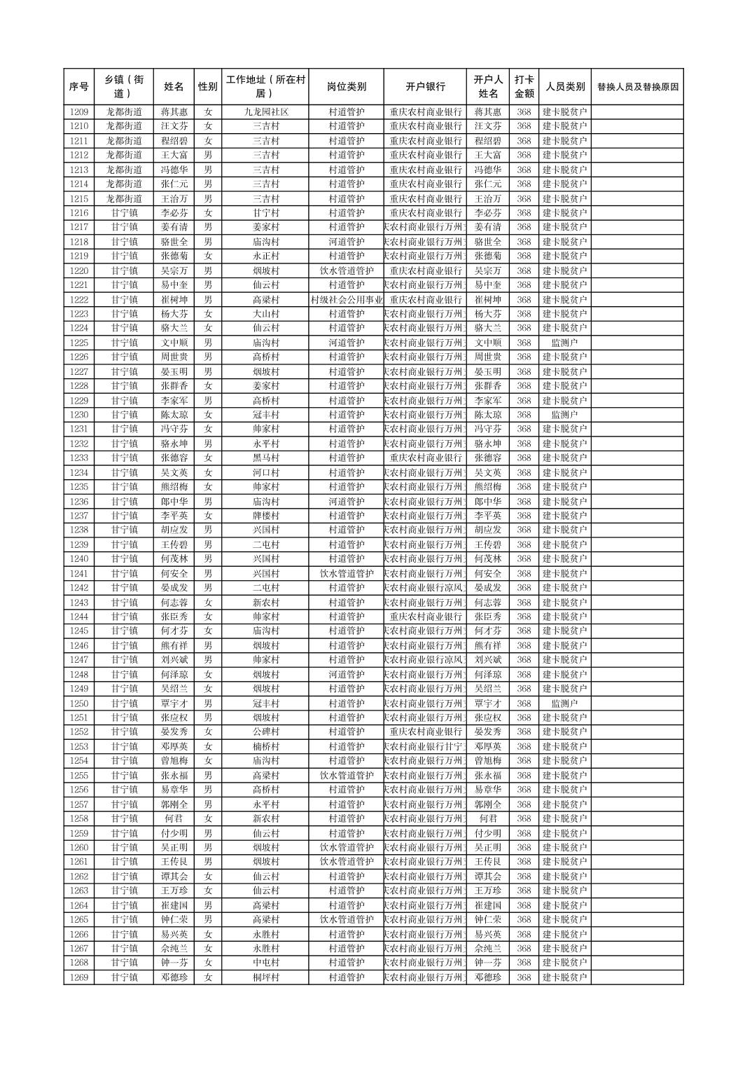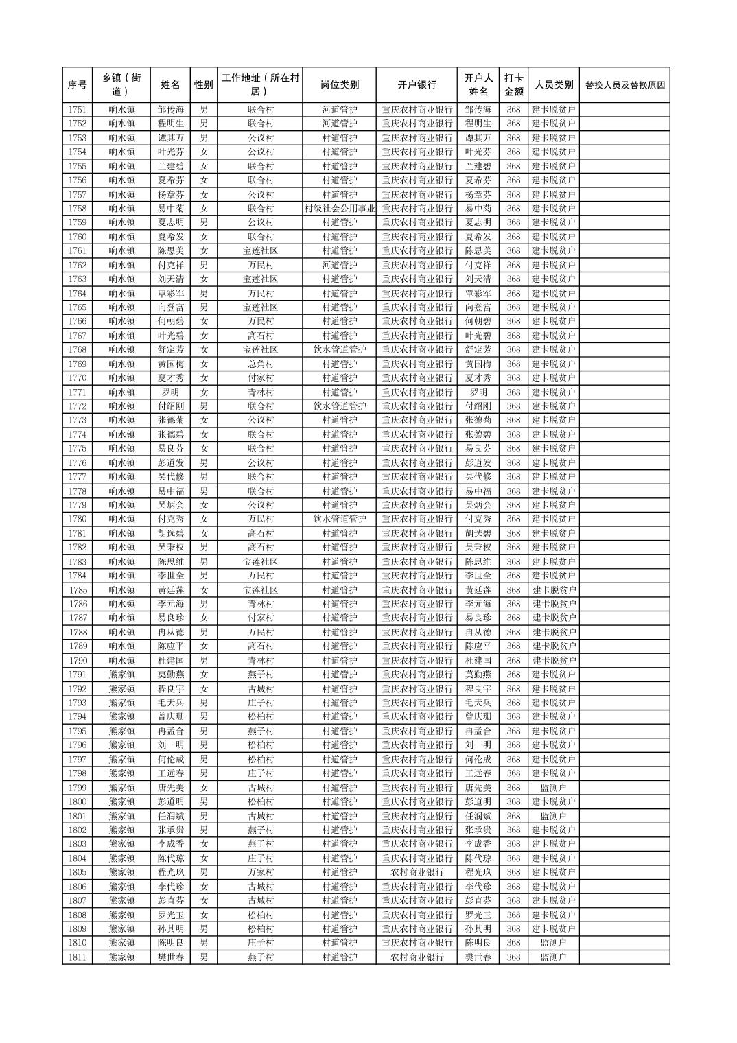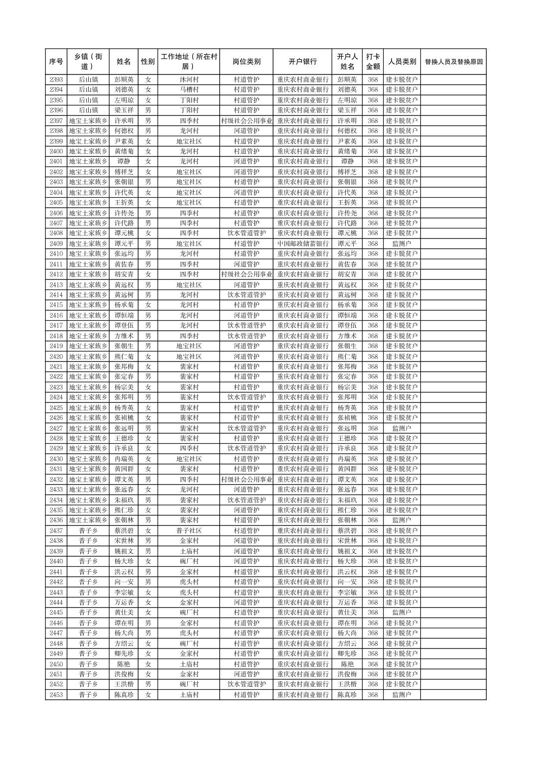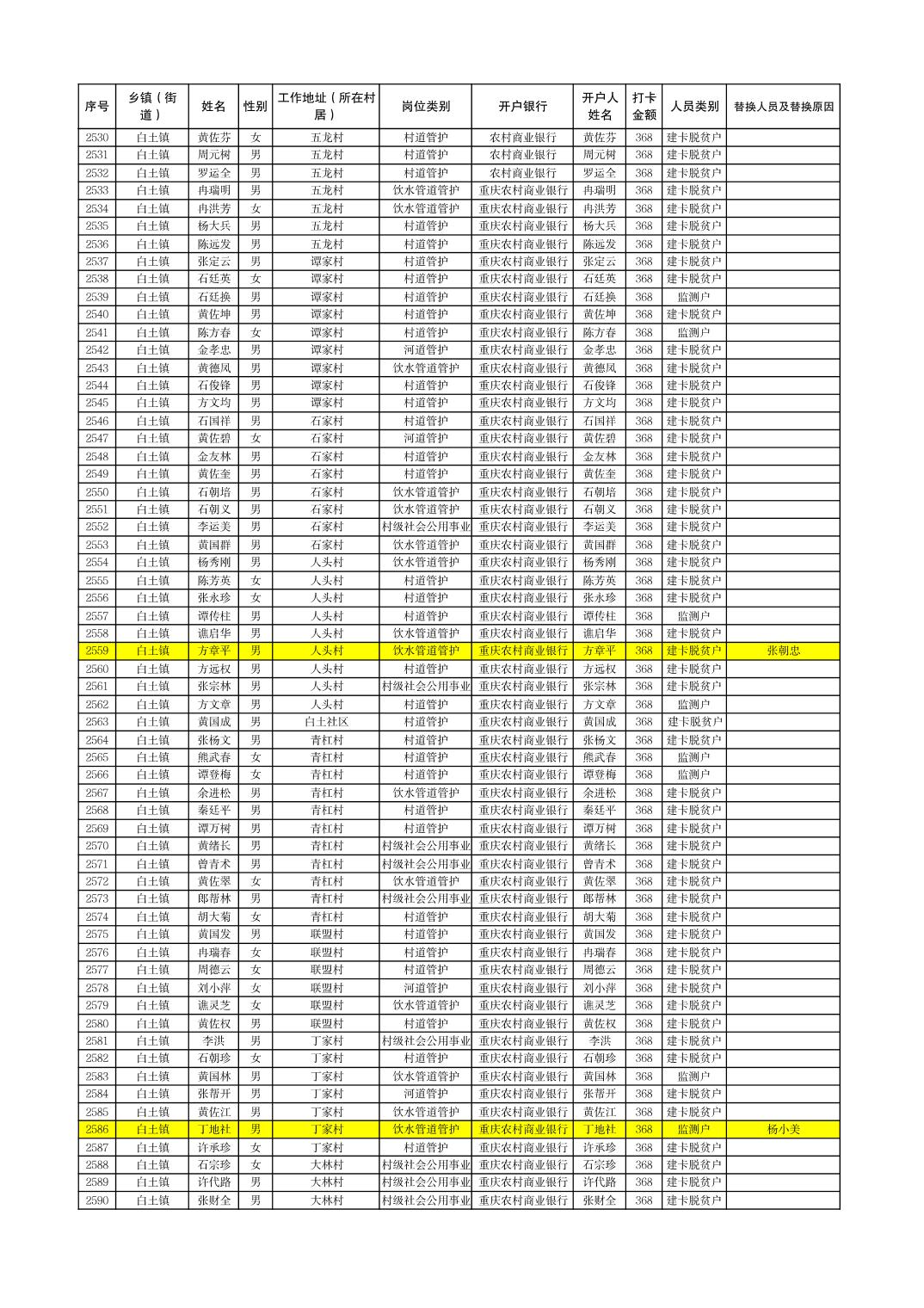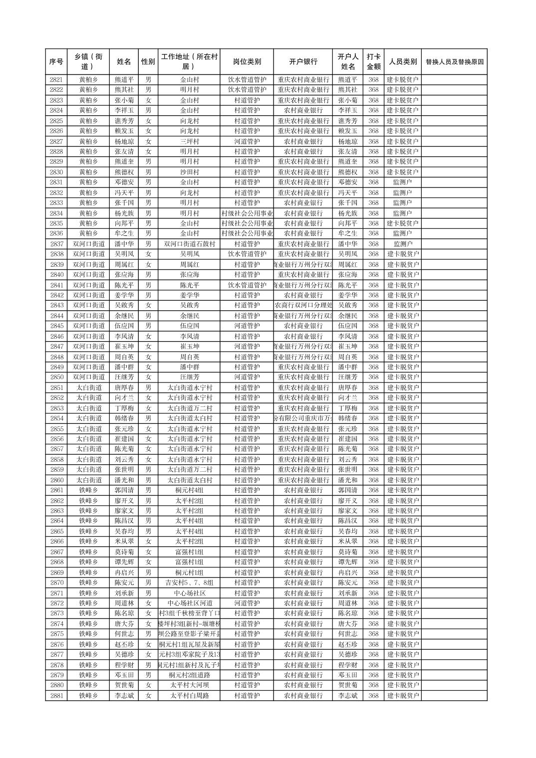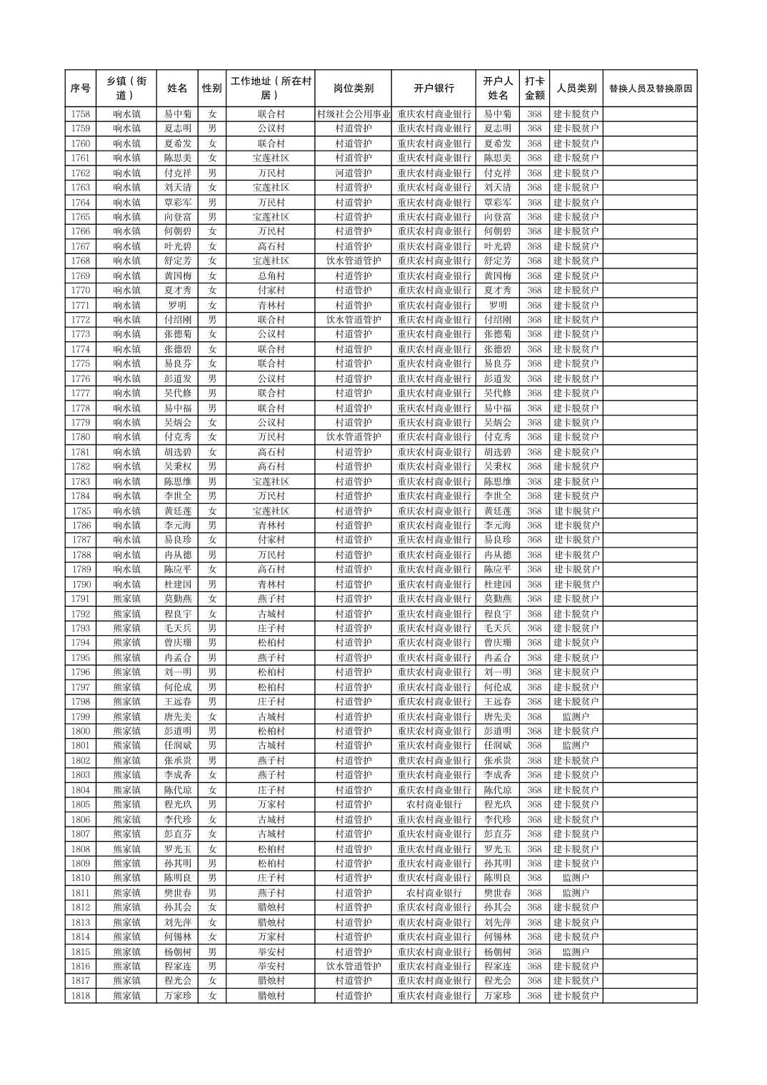 万州区脱贫人口非全日制公益性岗位聘用情况(7-12月)