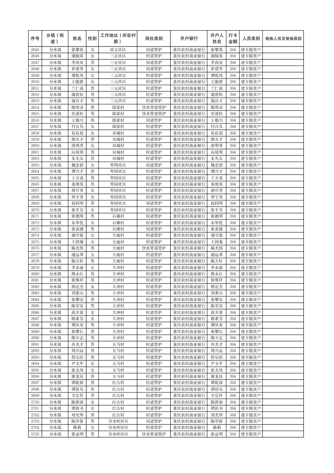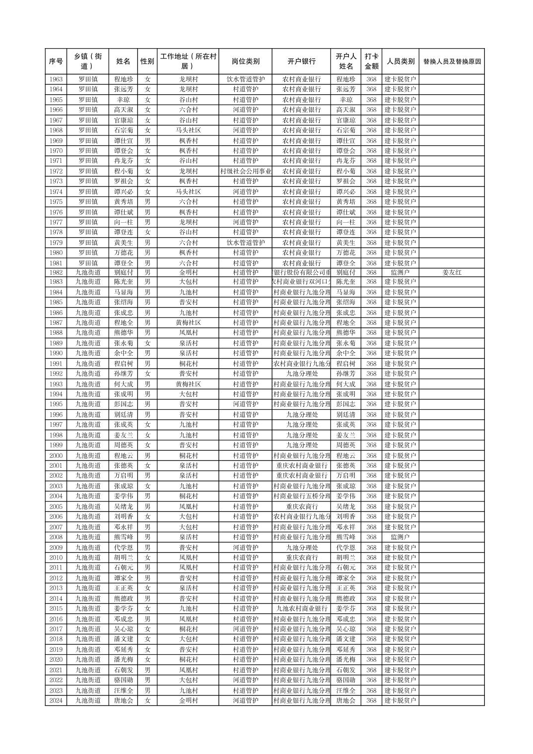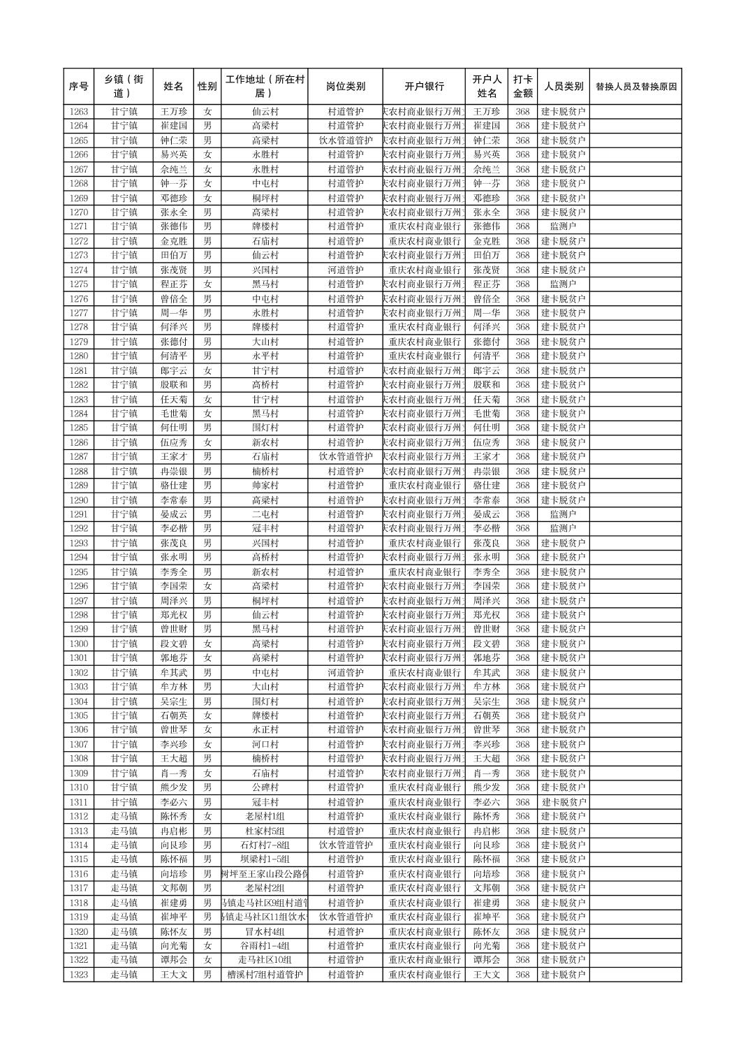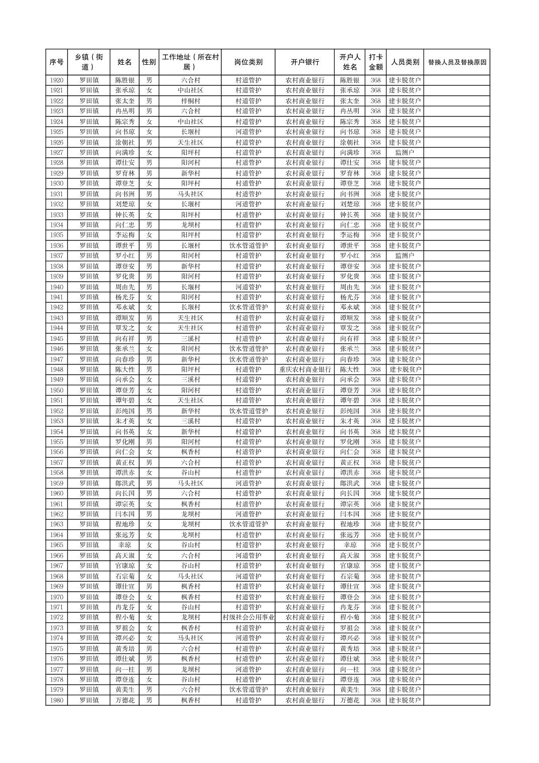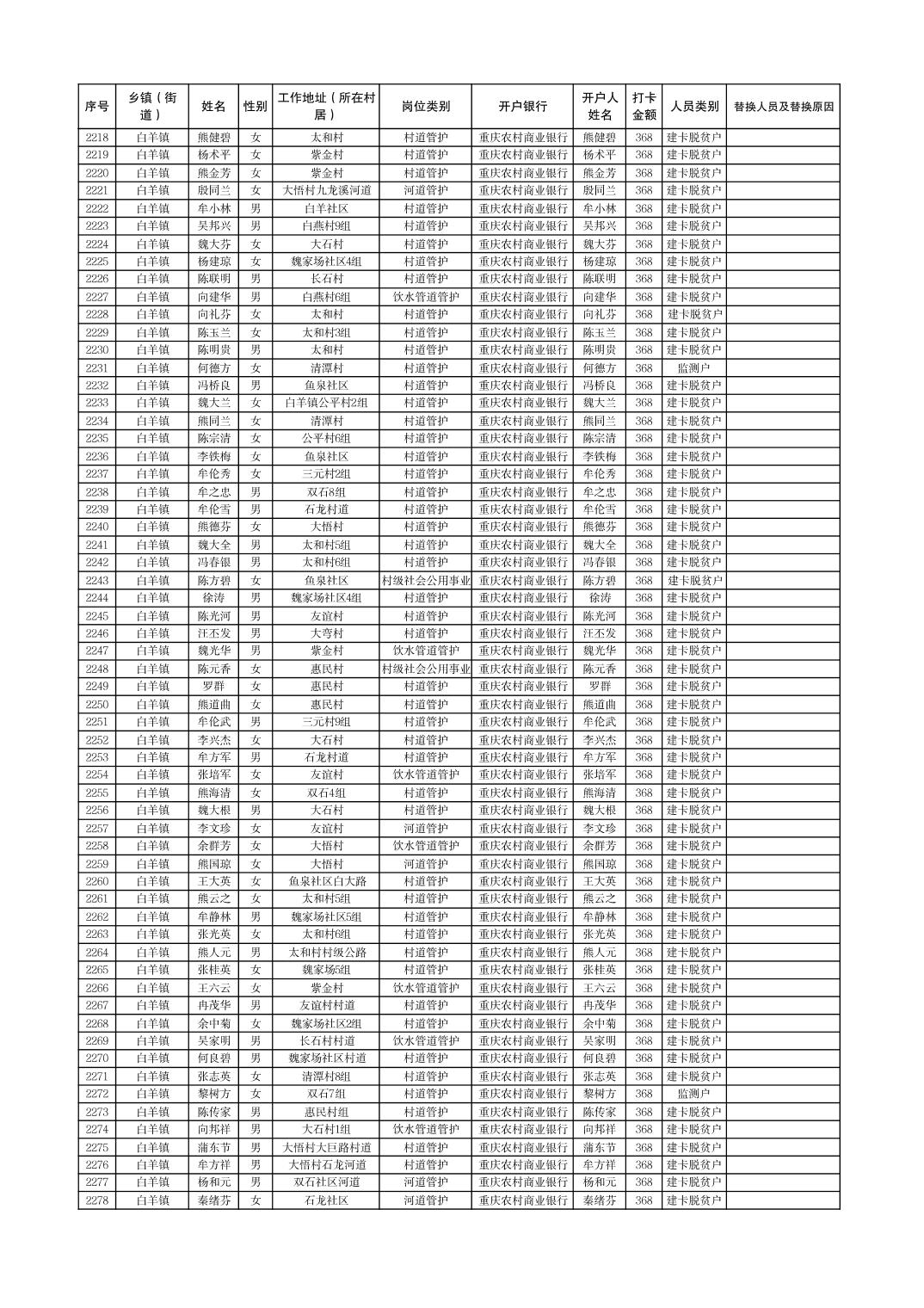 万州区脱贫人口非全日制公益性岗位聘用情况(7-12月)