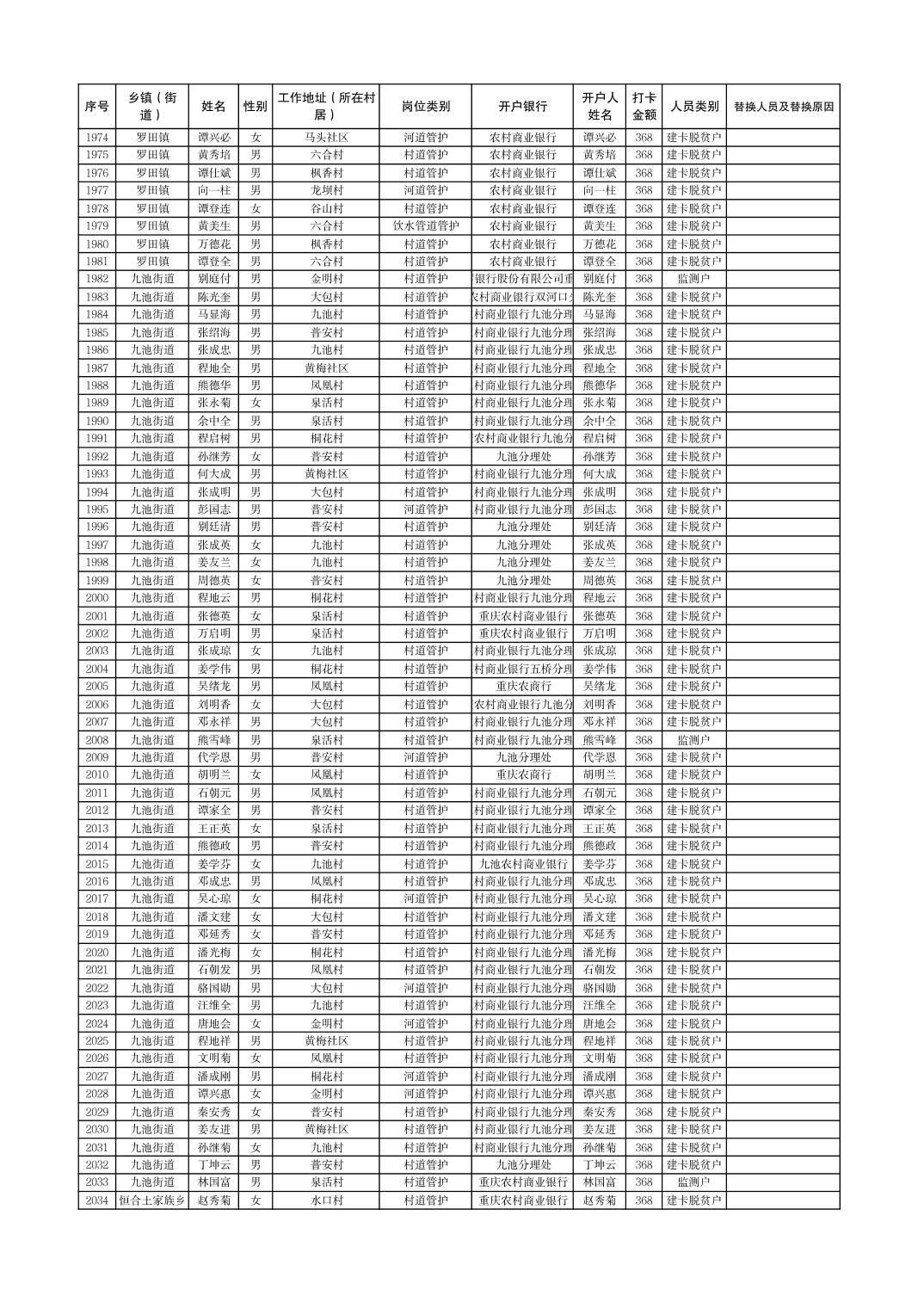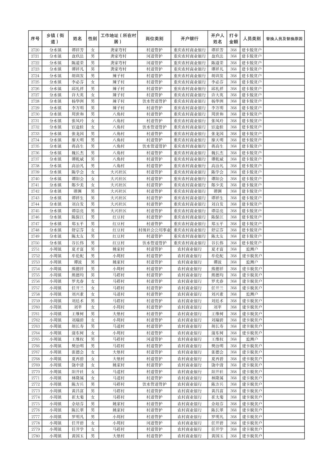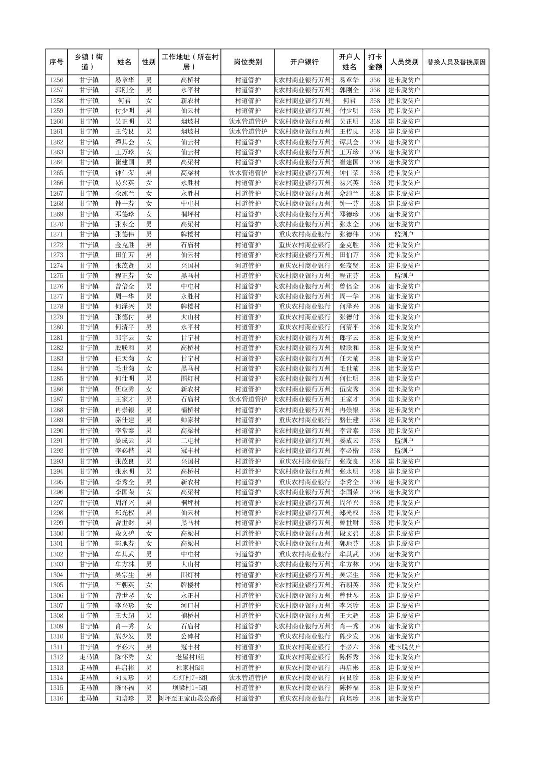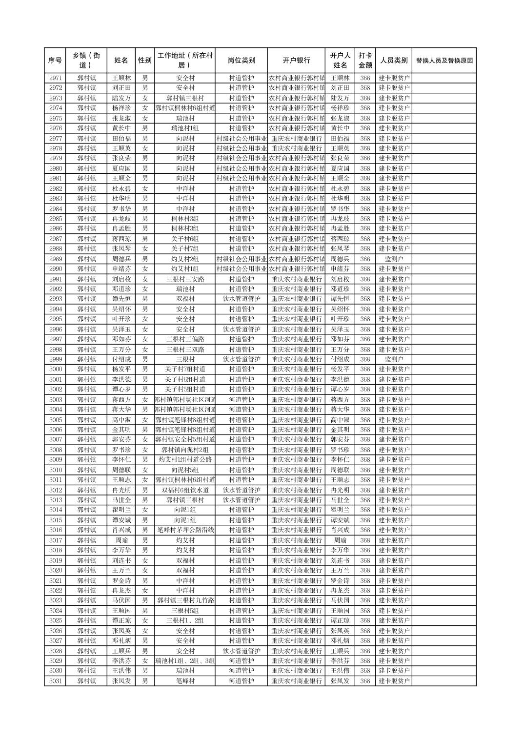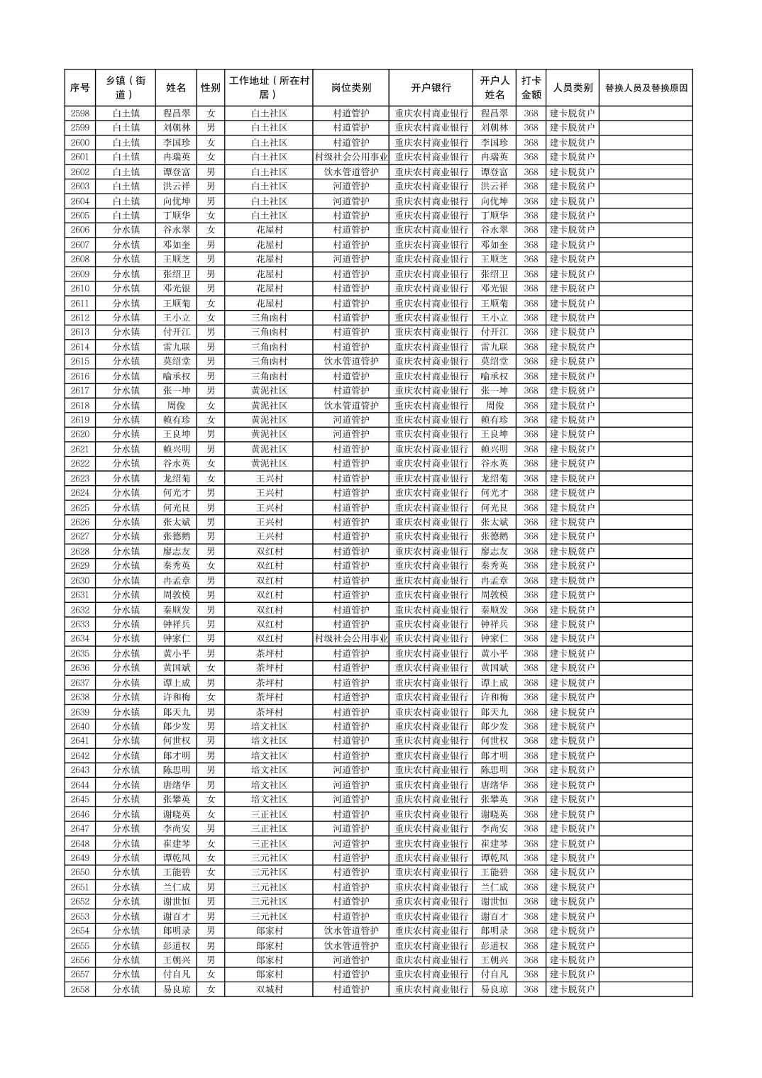 万州区脱贫人口非全日制公益性岗位聘用情况(7-12月)