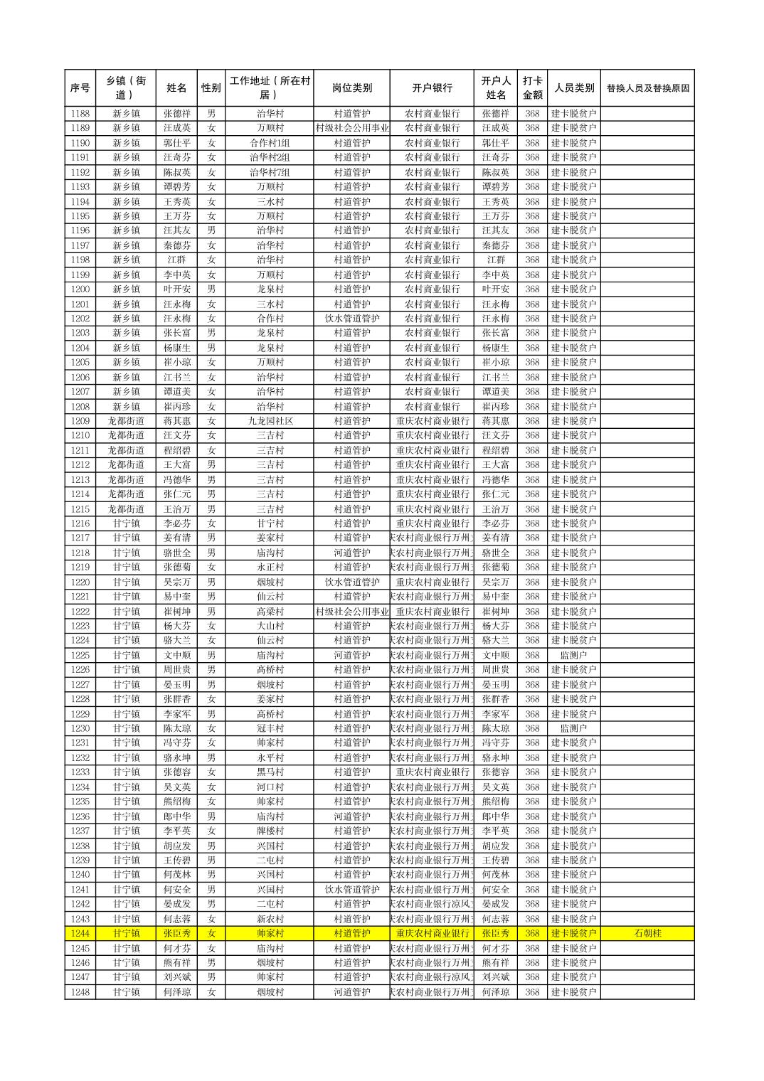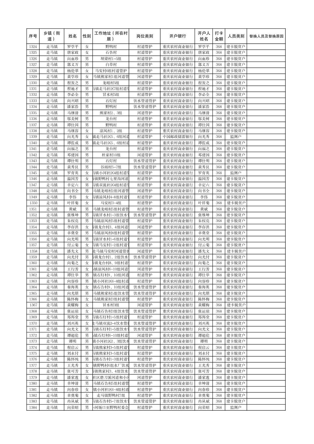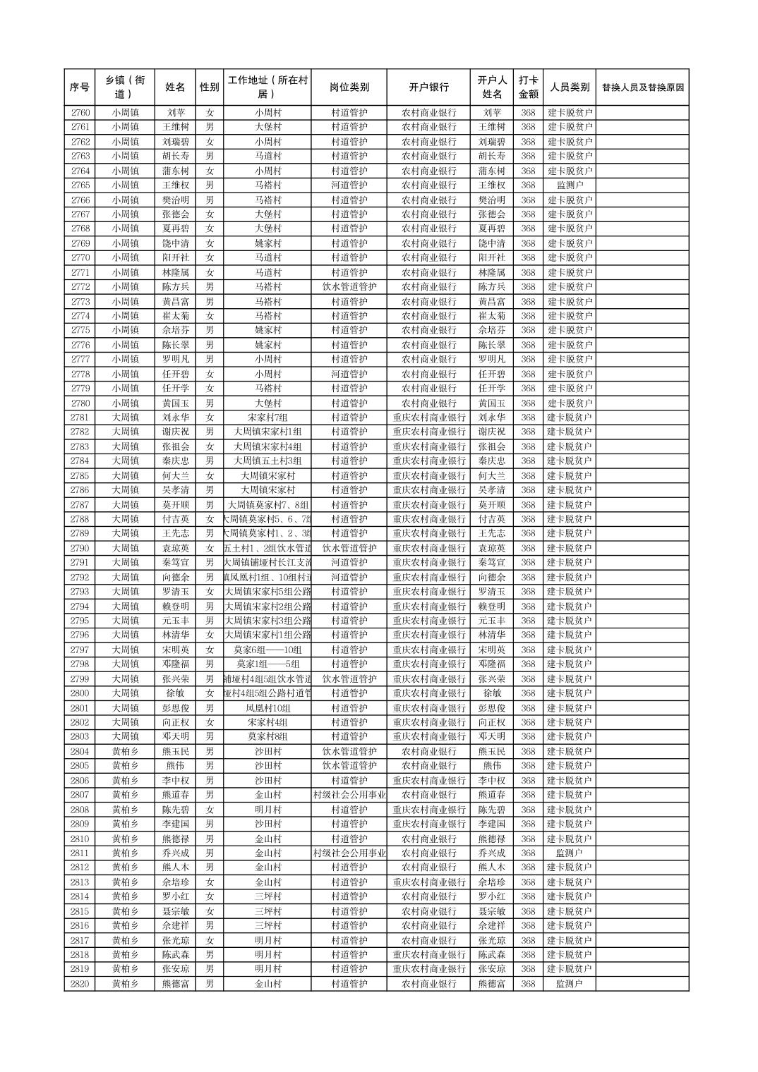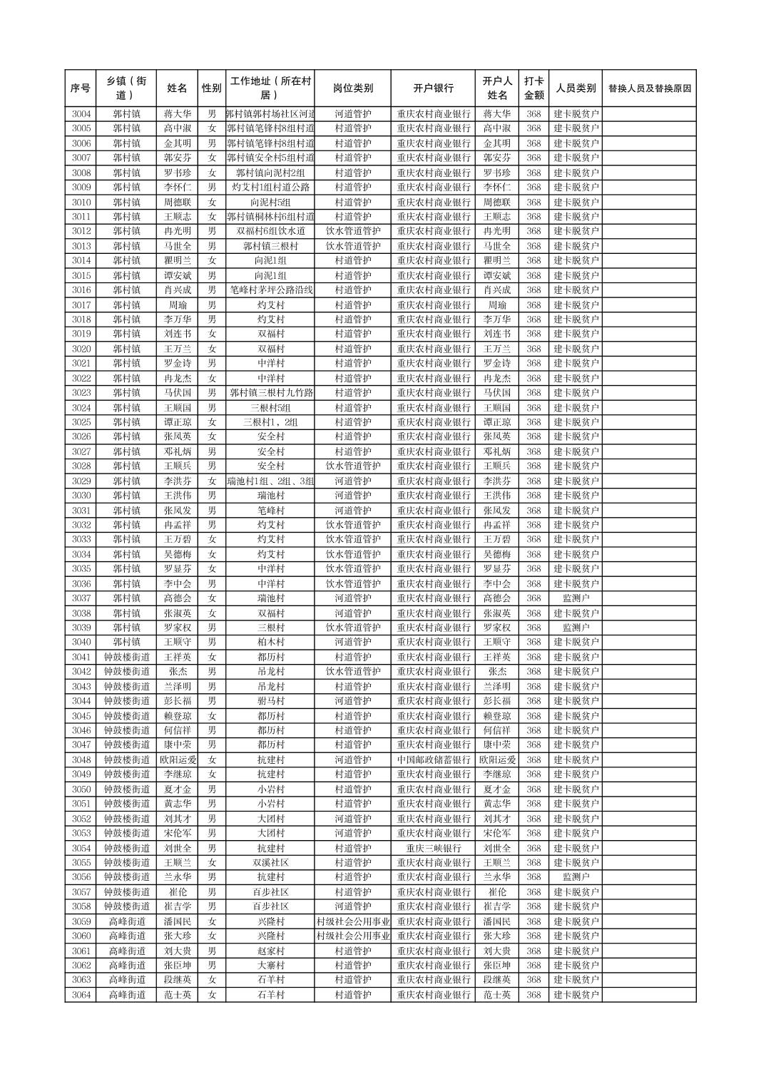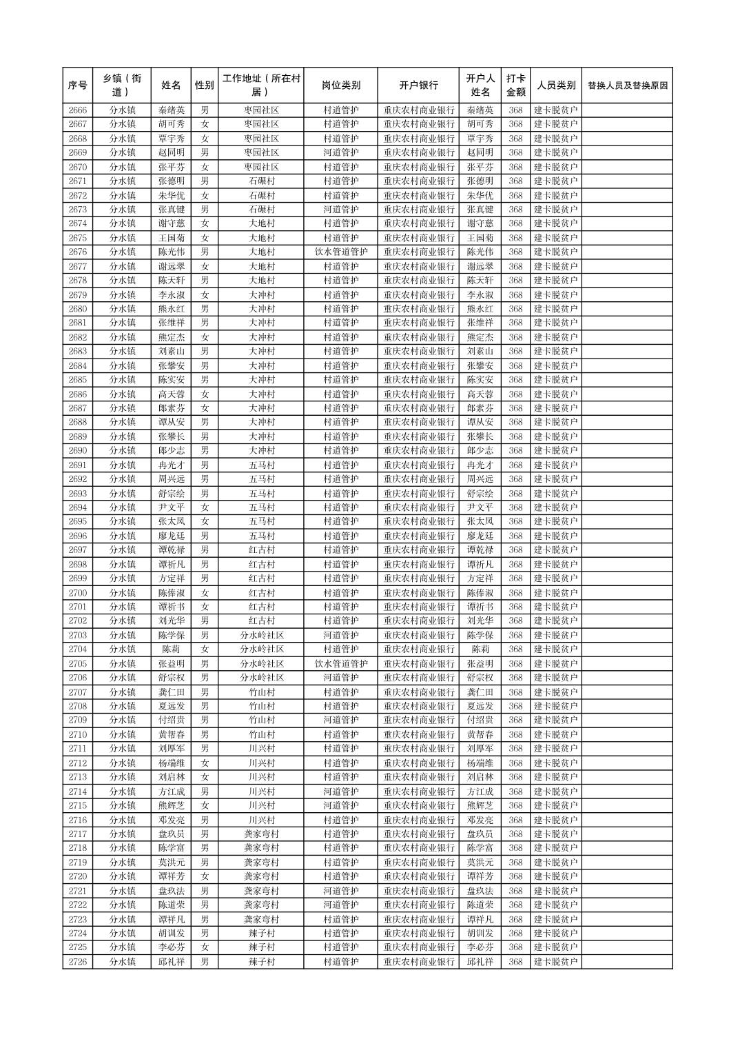 万州区脱贫人口非全日制公益性岗位聘用情况(7-12月)