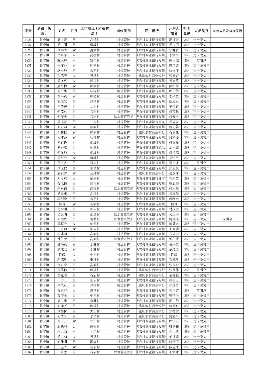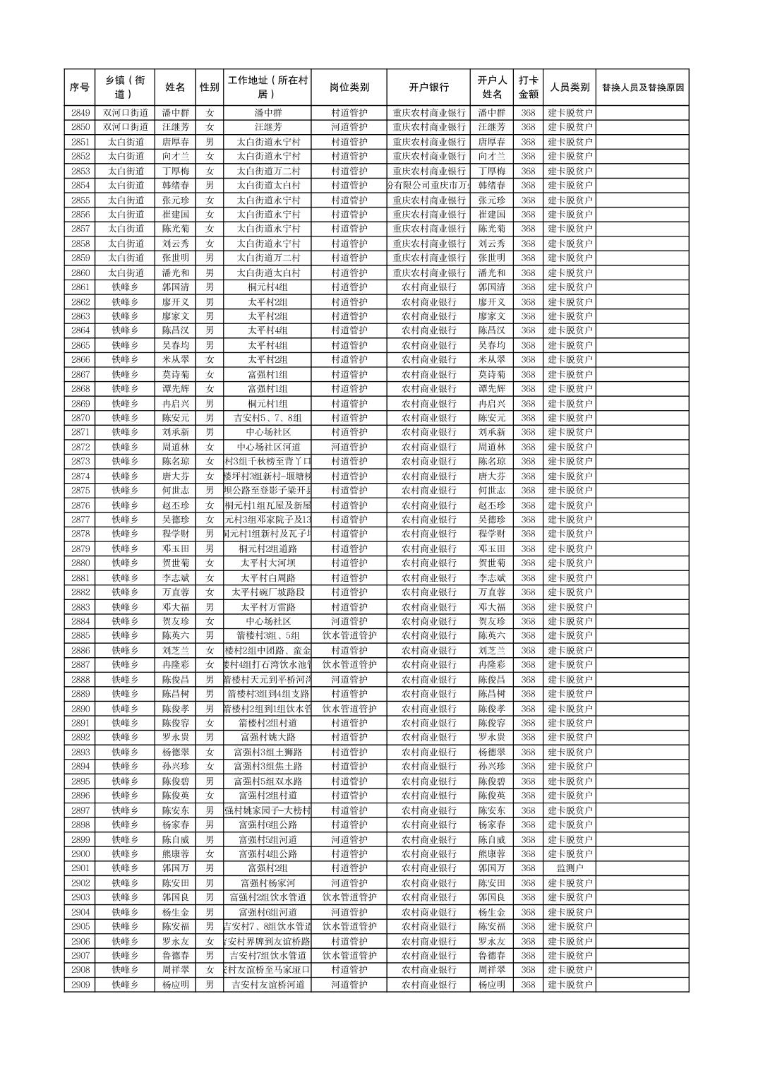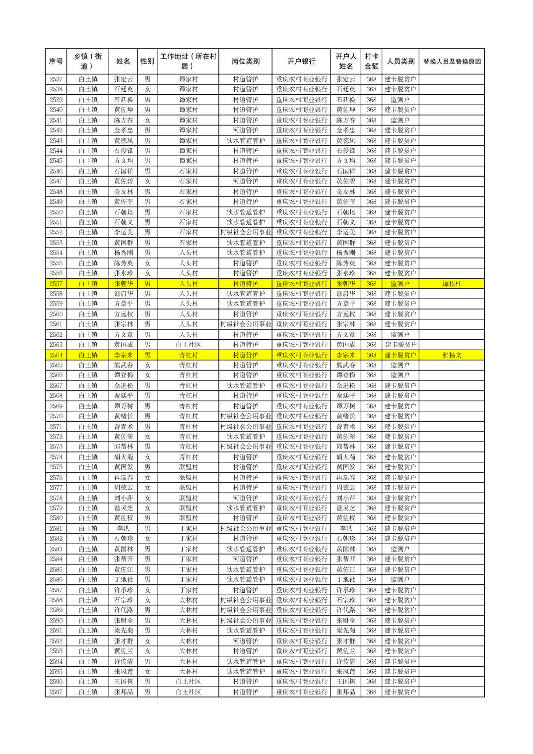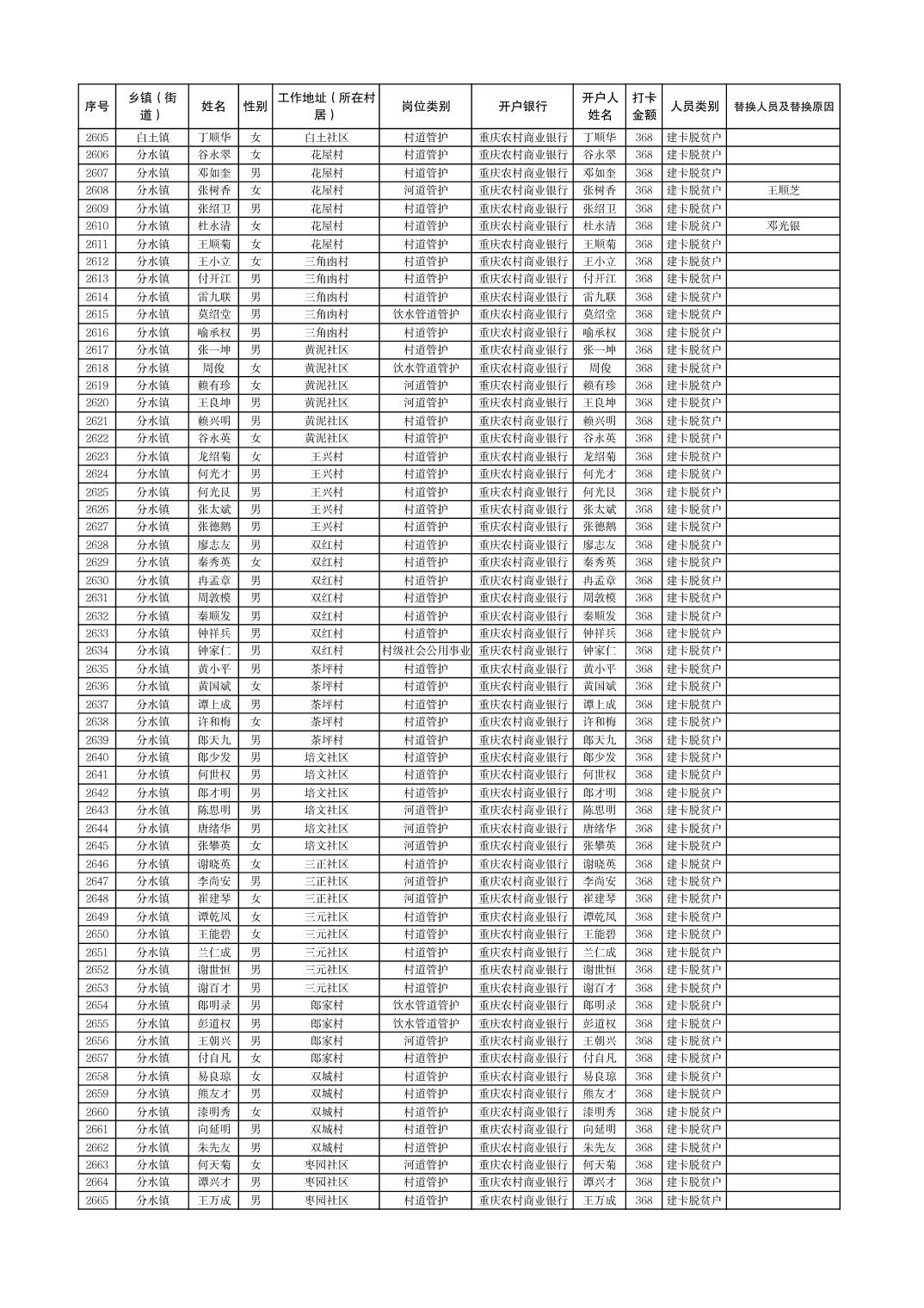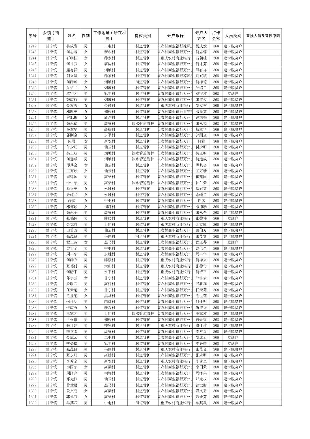 万州区脱贫人口非全日制公益性岗位聘用情况(7-12月)