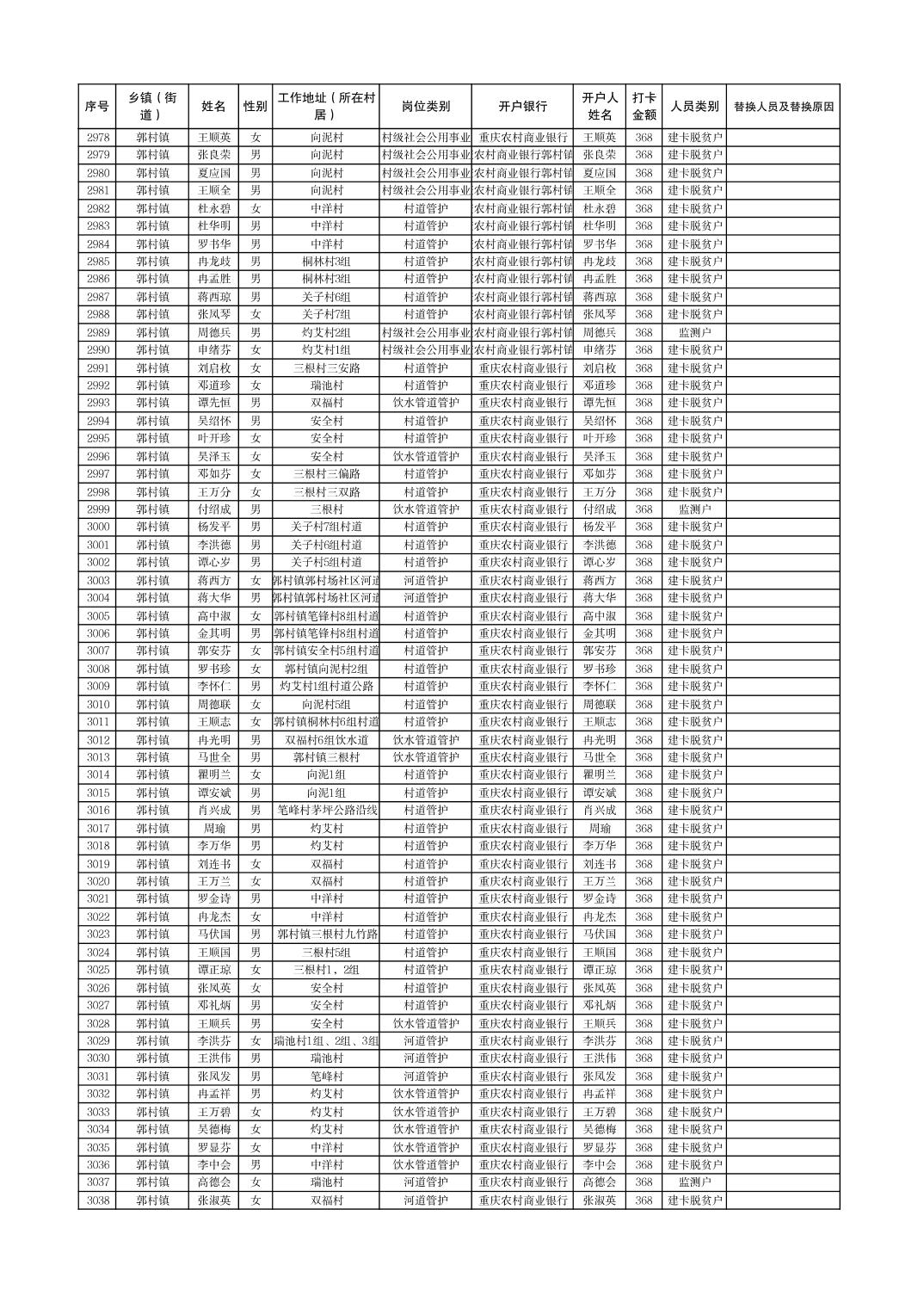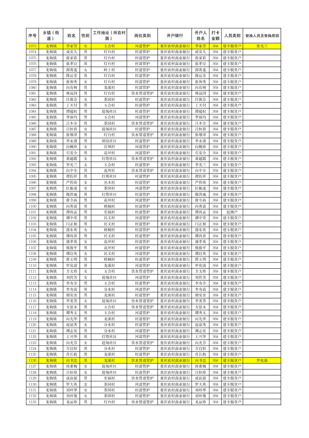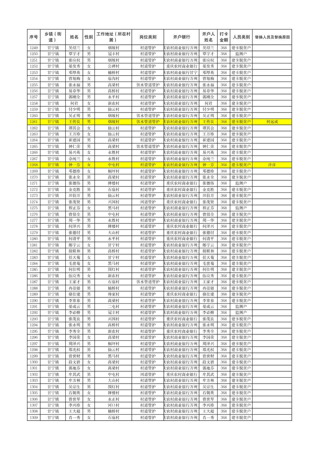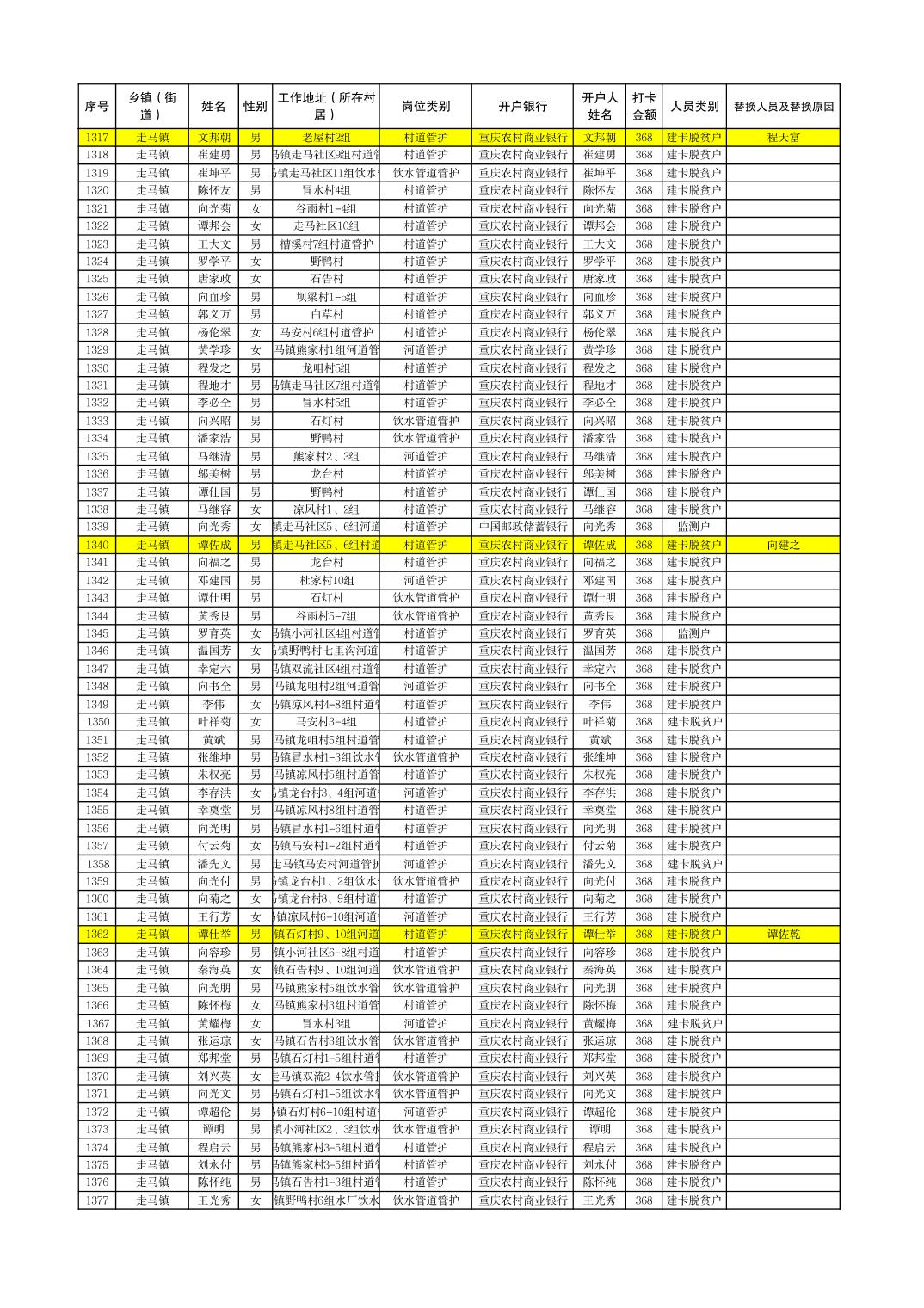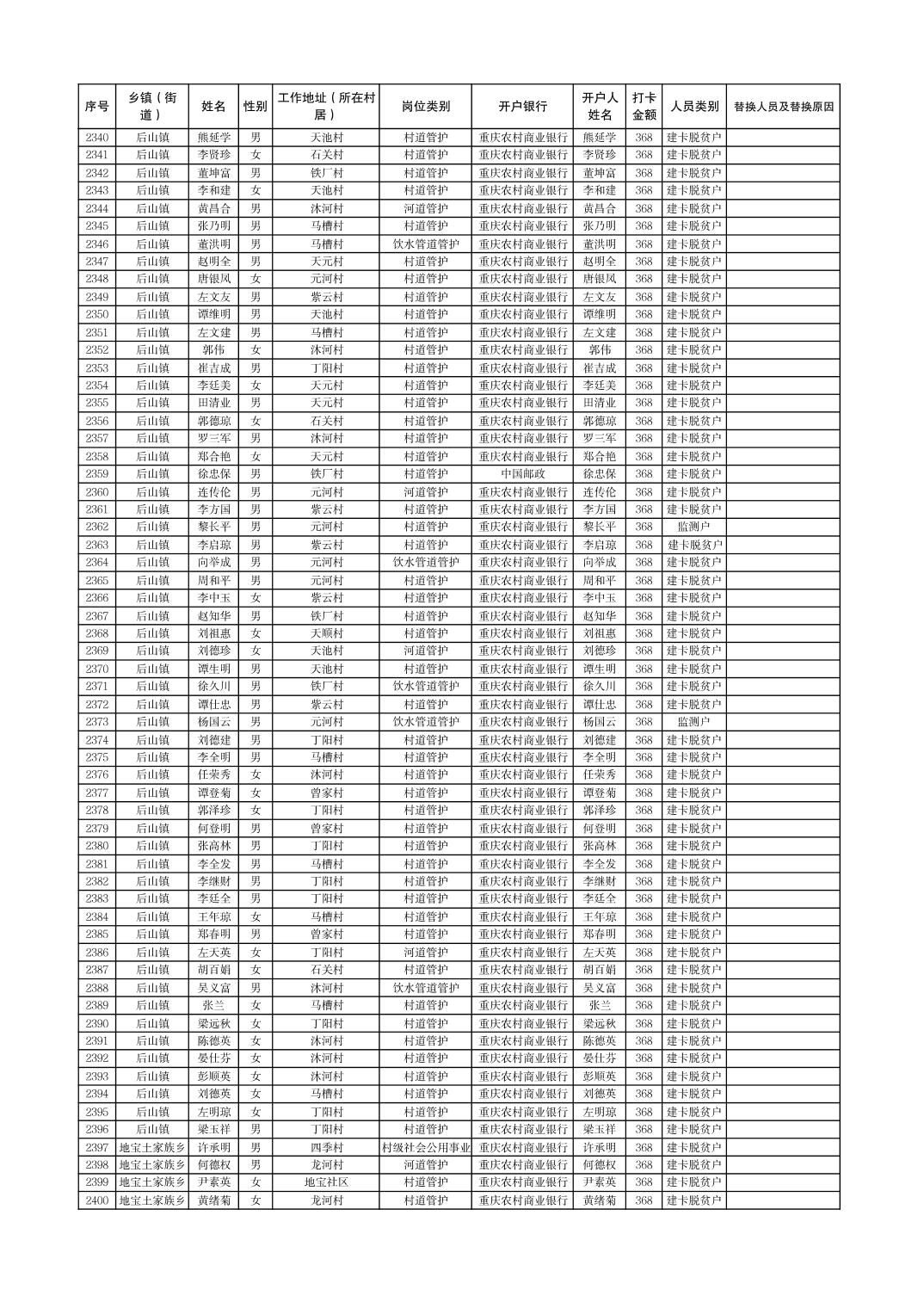 万州区脱贫人口非全日制公益性岗位聘用情况(7-12月)