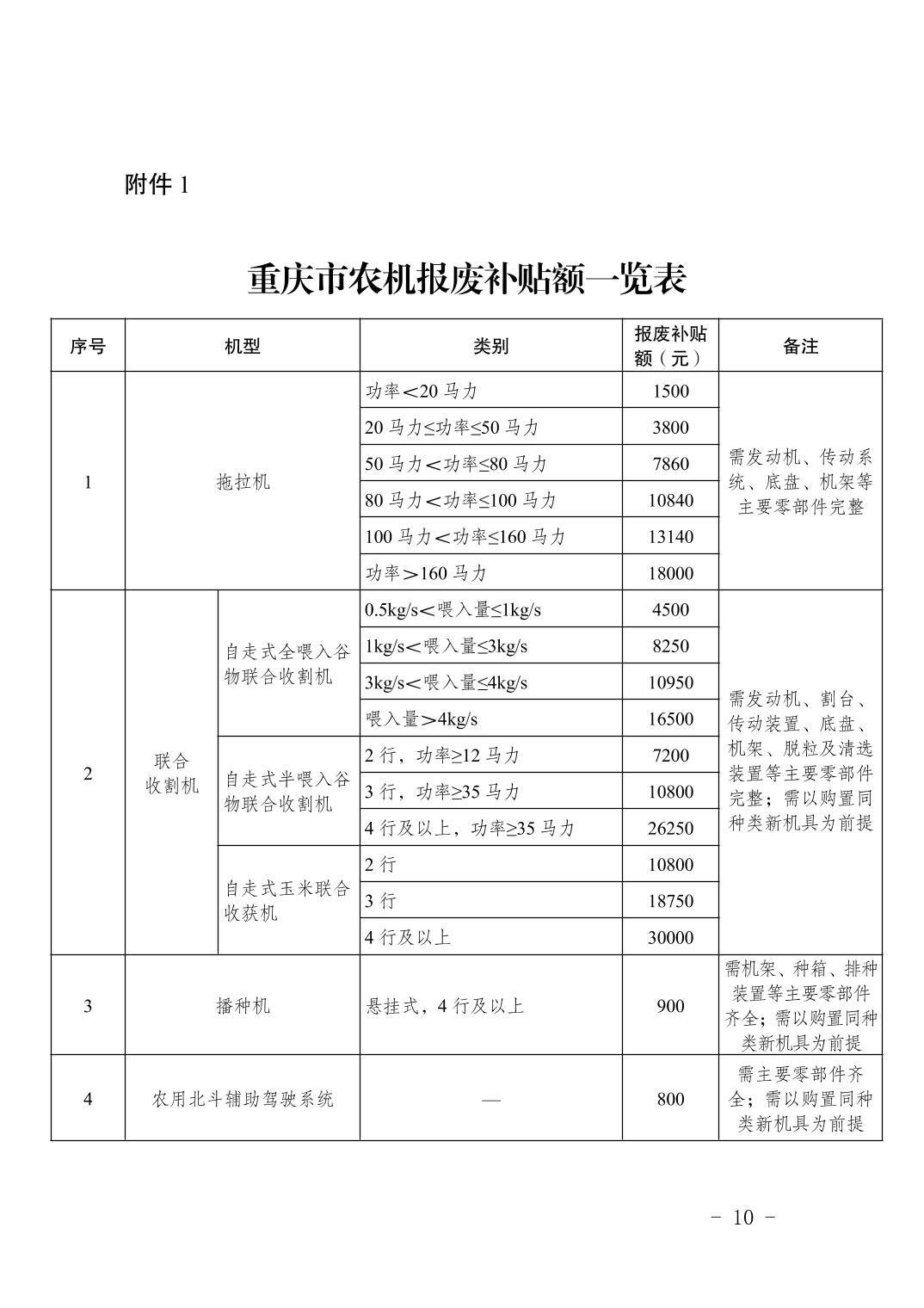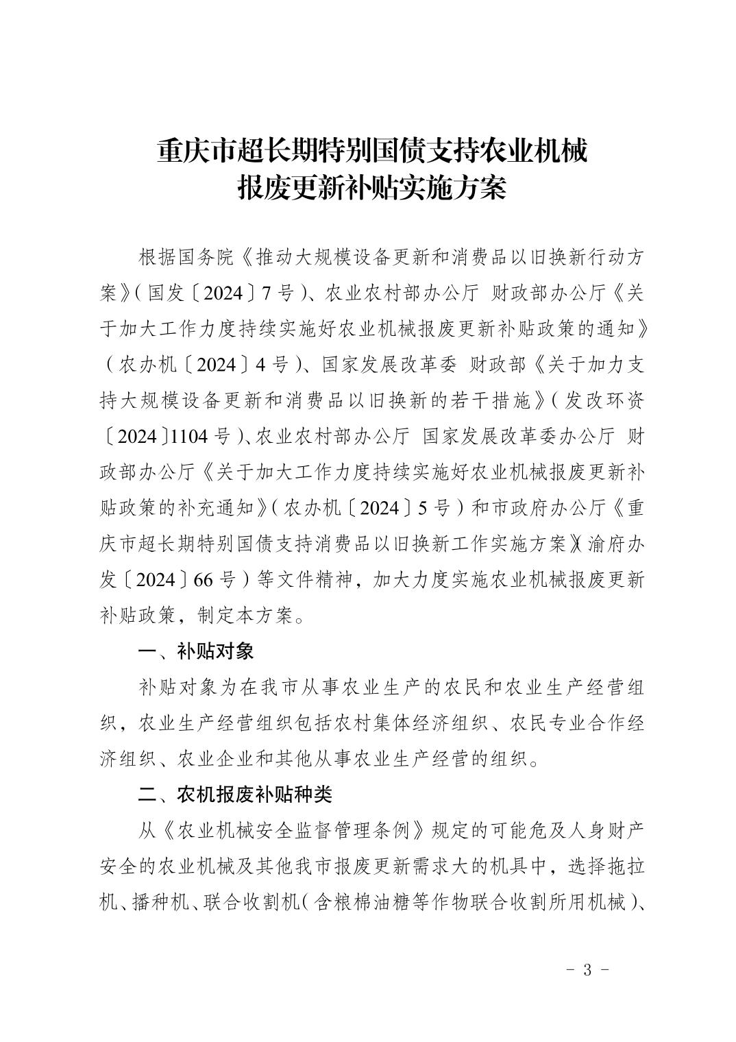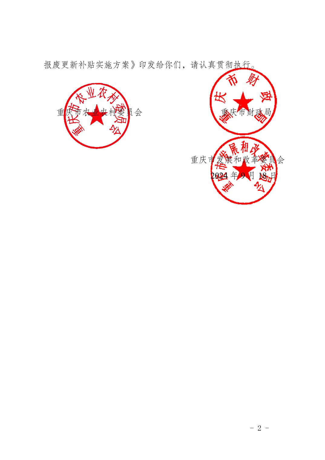 重庆市农业农村委员会重庆市财政局重庆市发展和改革委员会关于印发《重庆市超长期特别国债支持农业机械报废更新补贴实施方案》的通知