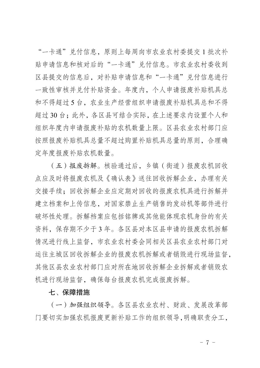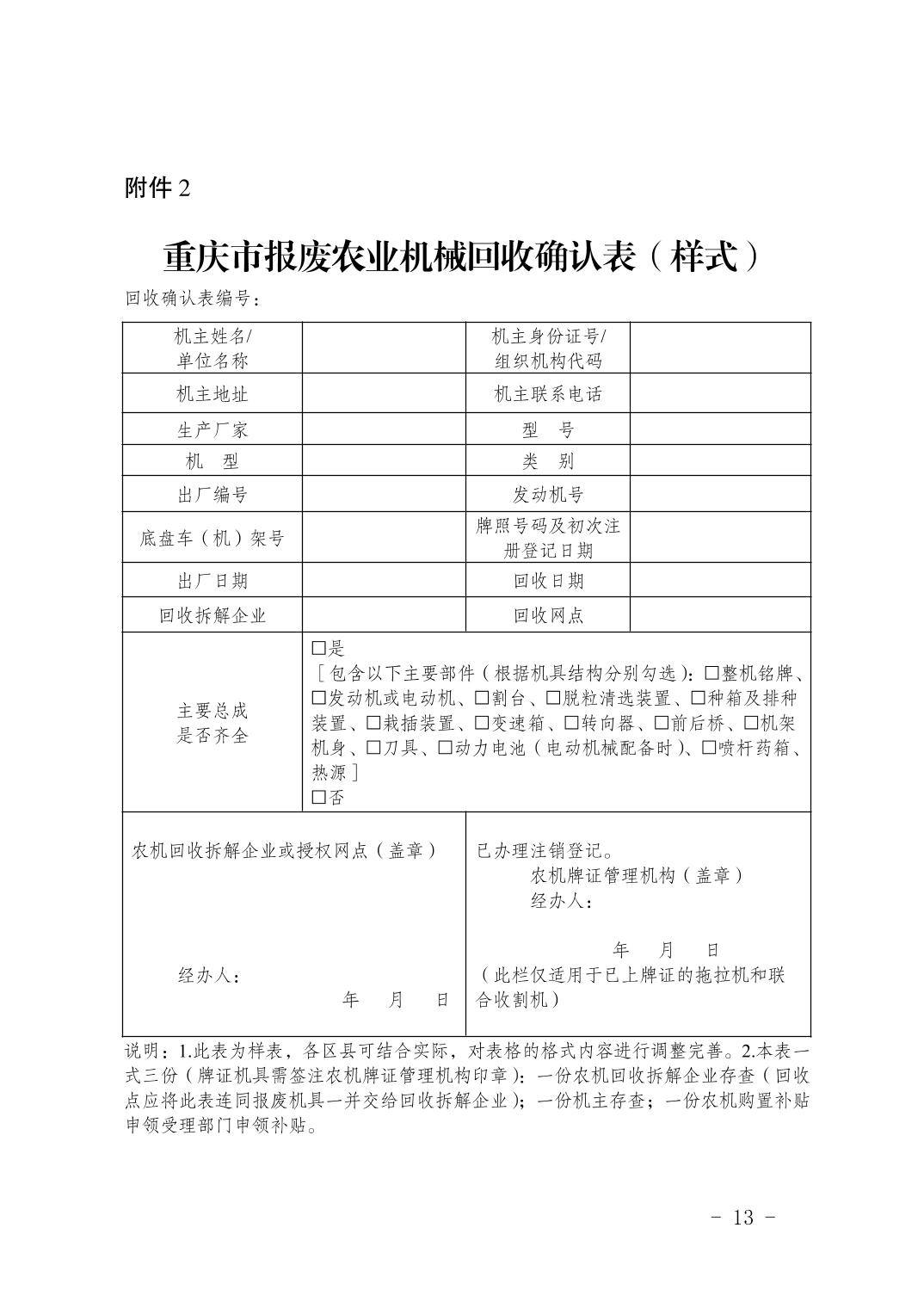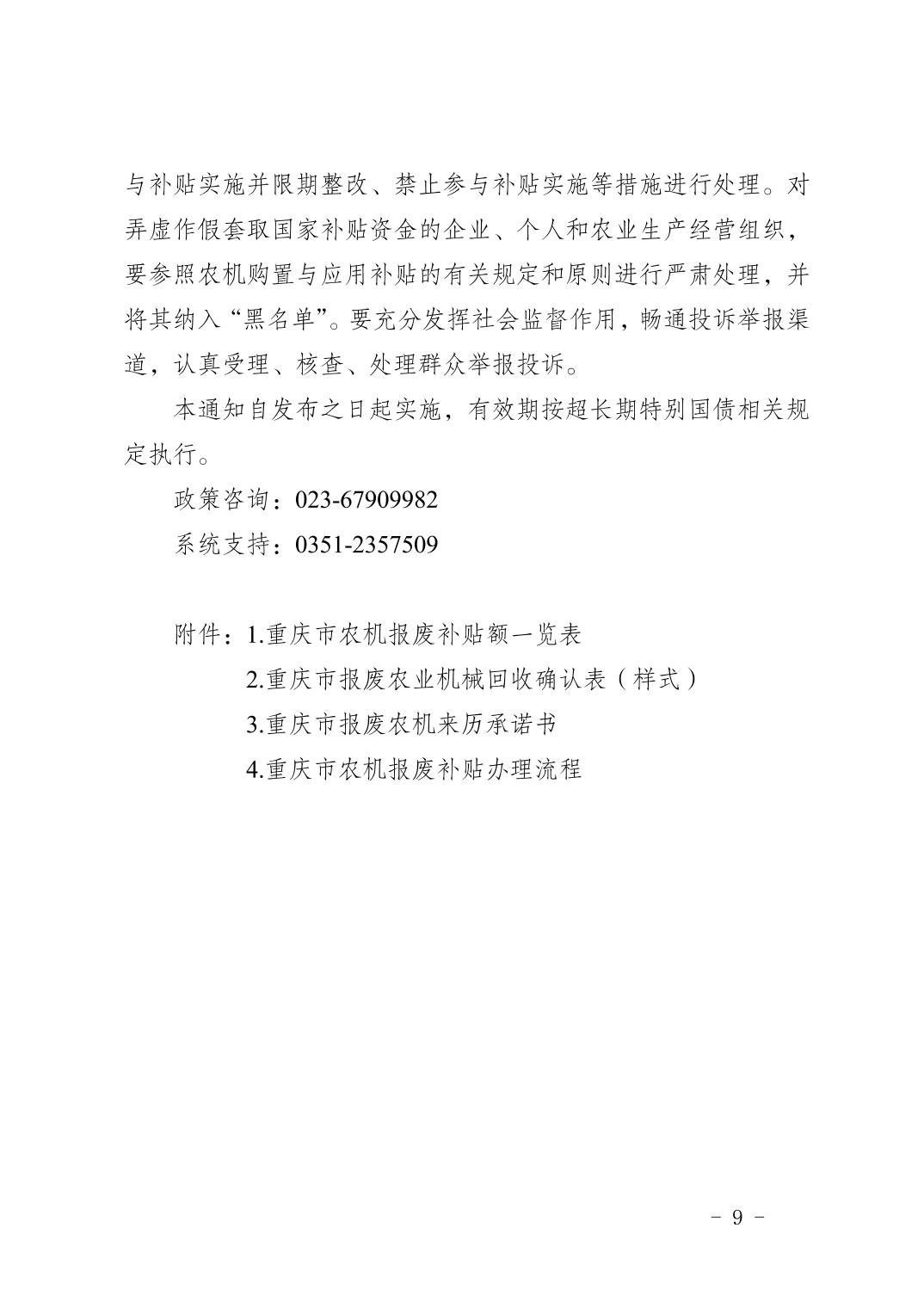 重庆市农业农村委员会重庆市财政局重庆市发展和改革委员会关于印发《重庆市超长期特别国债支持农业机械报废更新补贴实施方案》的通知