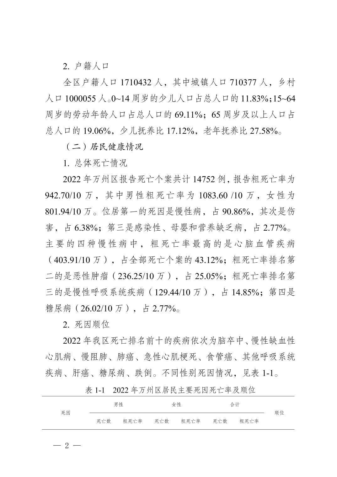 重庆市万州区2022年度居民健康状况报告