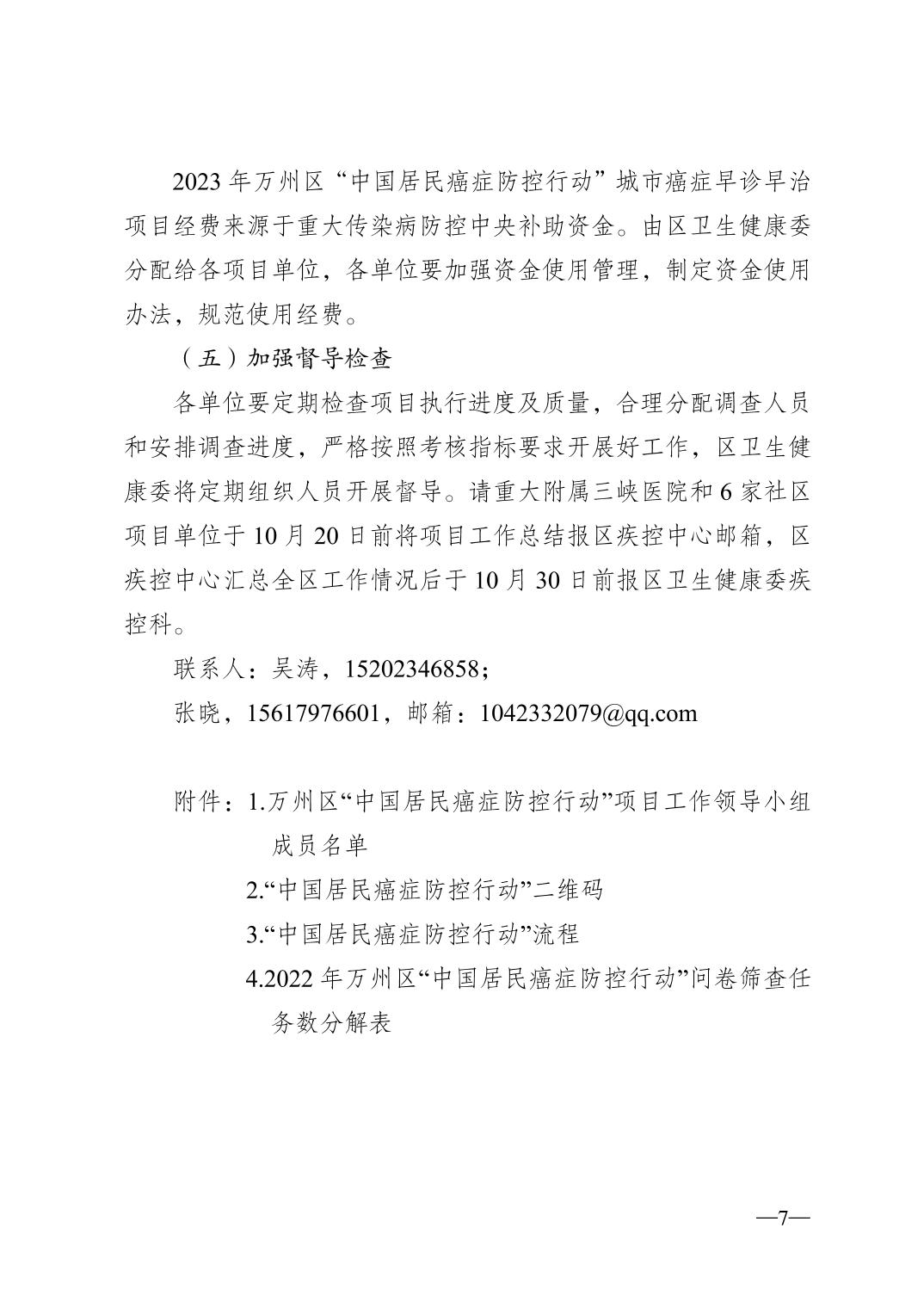关于印发《万州区2023年“中国居民癌症防控行动”城市癌症早诊早治项目实施方案》的通知