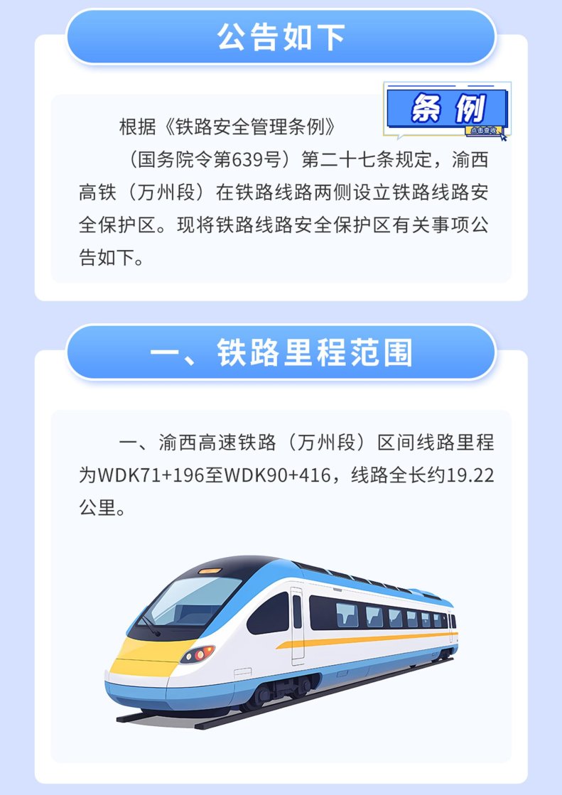 【一图读懂】重庆市万州区人民政府关于划定渝西高速铁路(万州段)线路安全保护区的公告