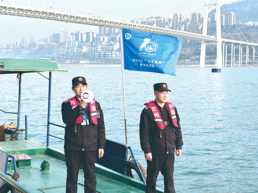 2月6日,农历腊月十九,长江万州段的江面被午后暖阳铺成一片碎金。我们登上那艘挂着“重庆长江‘十年禁渔’护渔巡逻队”旗帜的绿色护渔船,跟随熊家兄弟——熊维素、熊姚元,开启了江面上的新春巡护。 船行江中,风裹挟着江水的湿气扑面而来。哥哥熊维素稳稳把着船舵,目光如锚,牢牢锁定在前方水域,不放过任何一丝可疑动静;弟弟熊姚元站在船头,一手握着高音喇叭,一手夹着厚厚的禁渔宣传册,眼神扫过两岸滩涂,敏锐得如同当年搜寻鱼群。 这对土生土长的万州黄柏乡渔民,如今已是长江万州段主城护渔点的专职护渔队员。他们手掌上布满老茧,那是半生与江水打交道留下的最深印记。 皮肤黝黑的熊姚元,是兄弟俩里的“话匣子”。船行至熟悉的长江四桥水域,他望着滔滔江水,向我们聊起过往:“我在长江里打了二十多年鱼,我哥也有七八年,这江就是我们的饭碗,是我们的根。” 曾经,他们的船是谋生的工具,渔网是养家的依靠。日出而作、日落而息,在江面上追逐鱼群,是刻进骨子里的生活。那时,哥哥熊维素掌舵,弟弟熊姚元布网,配合默契,满心满眼都是能多捕几条鱼,凑够一家人的开销。 2021年1月1日,长江流域重点水域“十年禁渔”全面启动,万州区迅速组建护渔队伍,引导渔民转产上岸。摆在熊家兄弟面前的,是一道关乎生计与情怀的选择题:彻底离开相伴半生的江面,还是换一种身份,继续守护这条母亲河? “当时也纠结过,离开江,心里空落落的;留下来,又怕新行当不稳当。”熊姚元坦言。起初,家人也满是担忧,怕护渔工作收入没保障,怕这份“守江”的活计太辛苦。 但兄弟俩最终还是选择了后者。他们深知,江是饭碗,要惜福;再捕下去,子孙后代可能就见不到长江里的鱼了。 经过层层选拔和专业培训,他们成为万州区首批专职护渔员,从“捕鱼人”转身为“护渔人”。 巡船缓缓前行,行至一处浅滩,几位垂钓者远远挥手,笑着喊“熊兄弟来了”。熊姚元利索地跳上岸,递上宣传册,熟稔地讲解禁渔规定:“3月到6月是禁钓期,现在虽能钓,也得守‘一人一竿一线一钩’的规矩,可不能贪多。” 钓友们连连点头。这些条款,早已在兄弟俩日复一日的宣传中烂熟于心。“江边的钓鱼人,一开始也不理解,觉得钓几条鱼不算啥,我们就天天来、天天讲,慢慢的,大家的保护意识就上来了。”熊姚元说,如今不少钓友还会主动帮着监督,成了护渔的“民间帮手”。 科技的力量,也为他们的护渔之路添了“千里眼”。巡逻间隙,我们跟着兄弟俩回到岸边的趸船,走进万州区渔政视频AI预警处置系统指挥中心。 34个高清摄像头的实时画面铺满大屏幕,长江万州段的重点水域尽收眼底。“这套系统能智能识别非法捕捞、违规垂钓,一有情况就自动预警,我们再结合现场巡查,人防加技防,效率高多了。”熊姚元指着屏幕上的一处江湾,“以前靠人跑,一天跑不完的地方,现在盯着屏幕就能实时掌握,偷捕的行为越来越少了。” 傍晚时分,夕阳把江面染成暖红色。巡船靠岸,兄弟俩换下执勤服,走进趸船里那间十平方米的厨房。哥哥熊维素弯腰清洗青菜,水流声轻响;弟弟熊姚元手握菜刀,切菜声利落。两人话语不多,动作却行云流水。 “每天都这样,巡逻回来就在船上做饭,工作在一起,生活也在一起。”熊姚元笑着说。船上的生活简朴,没有家里的热闹,但他们早已习惯。 做饭间隙,聊起成为护渔员后的变化,一向寡言的熊维素先开了口:“江面干净了,偷捕的基本没了,大家规矩意识强了,我们工作也好做多了。”熊姚元的眼睛亮了起来,语气里满是欣喜:“最明显的是鱼多了、大了!现在经常能看到成群的鱼在水里游,种类也多了,有时候还能看到长江鲟的影子。这就是我们守江的意义啊!” 新春的脚步越来越近,长江两岸的年味渐浓。他们和队友们排好了春节班次,24小时在岗,守护着这段长江的安宁。