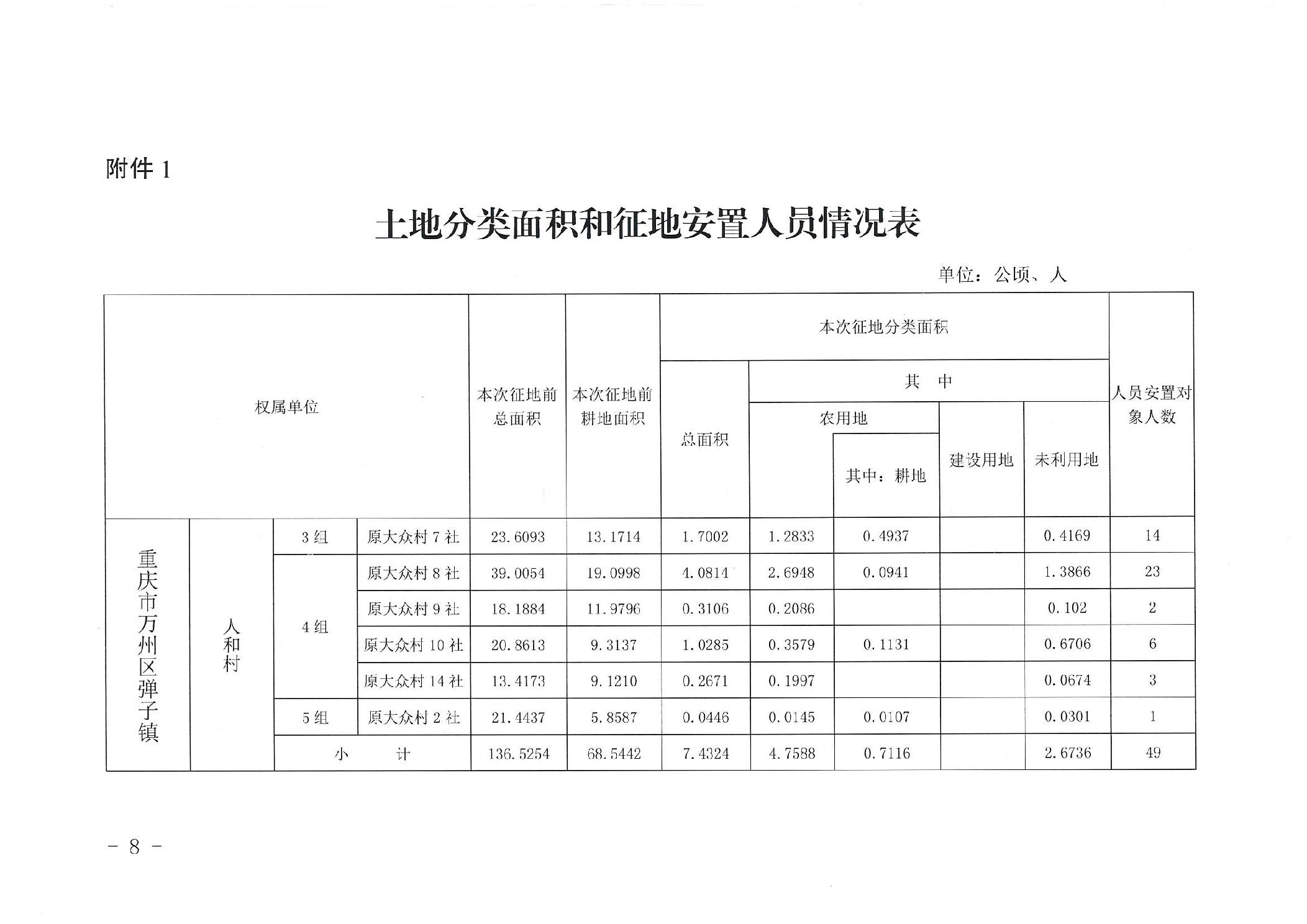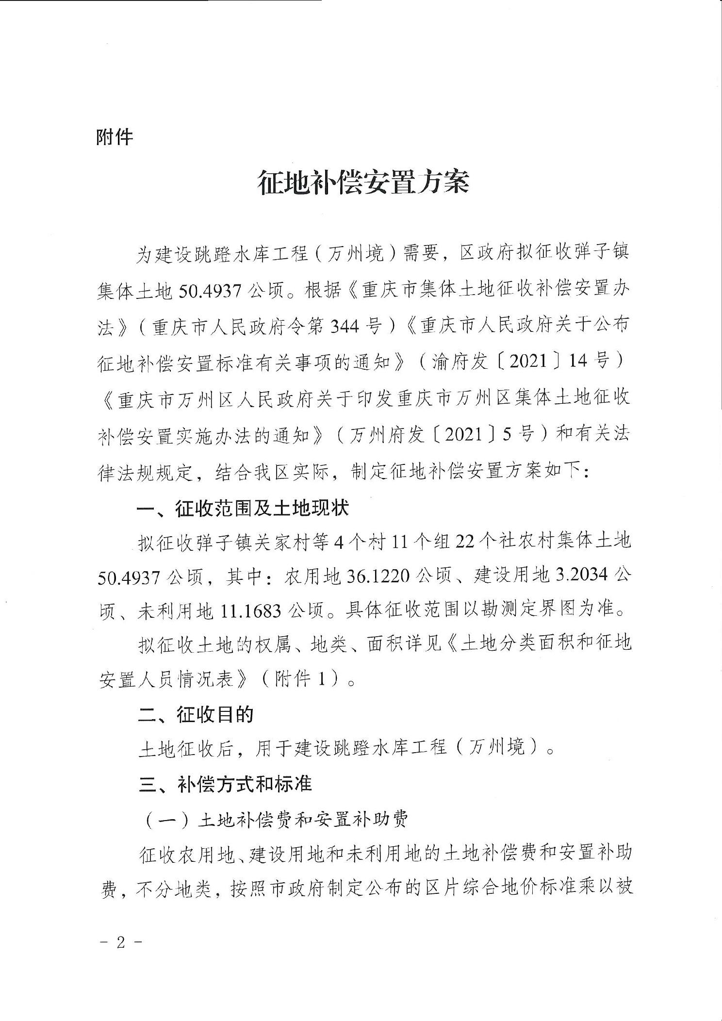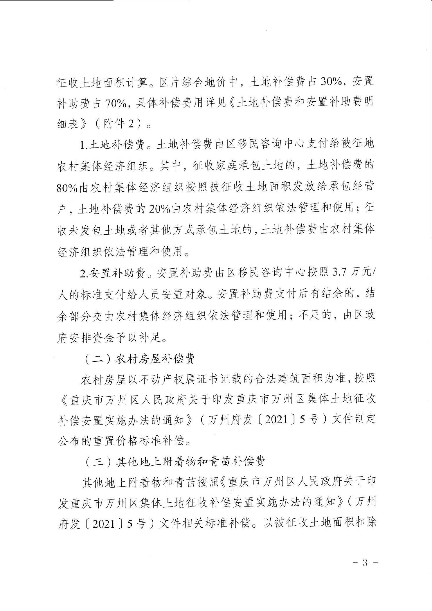 重庆市万州区人民政府关于确定征地补偿安置方案的公告(万州府征地安置确公〔2023〕1号)