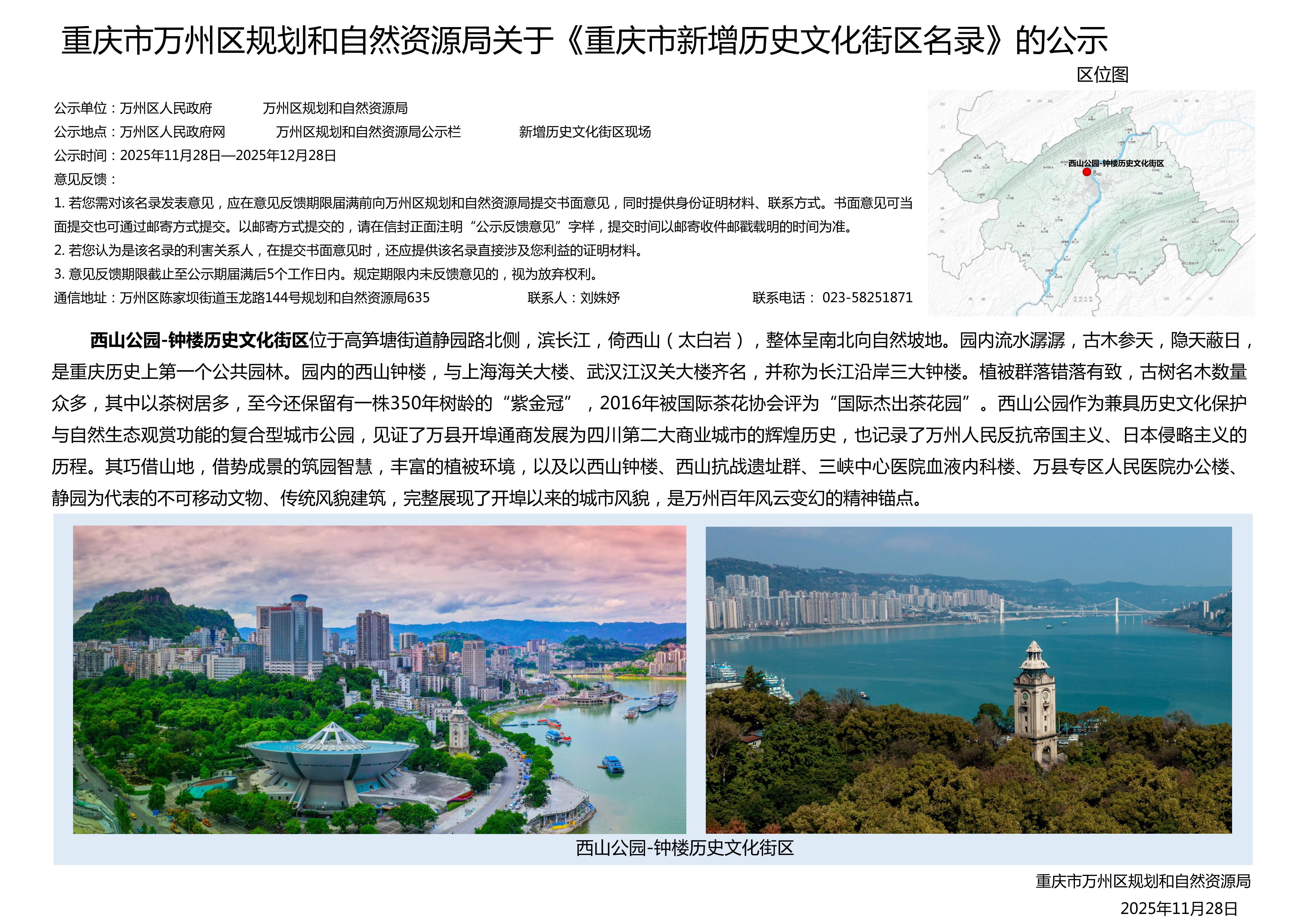 重庆市万州区规划和自然资源局关于《重庆市新增历史文化街区名录》的公示